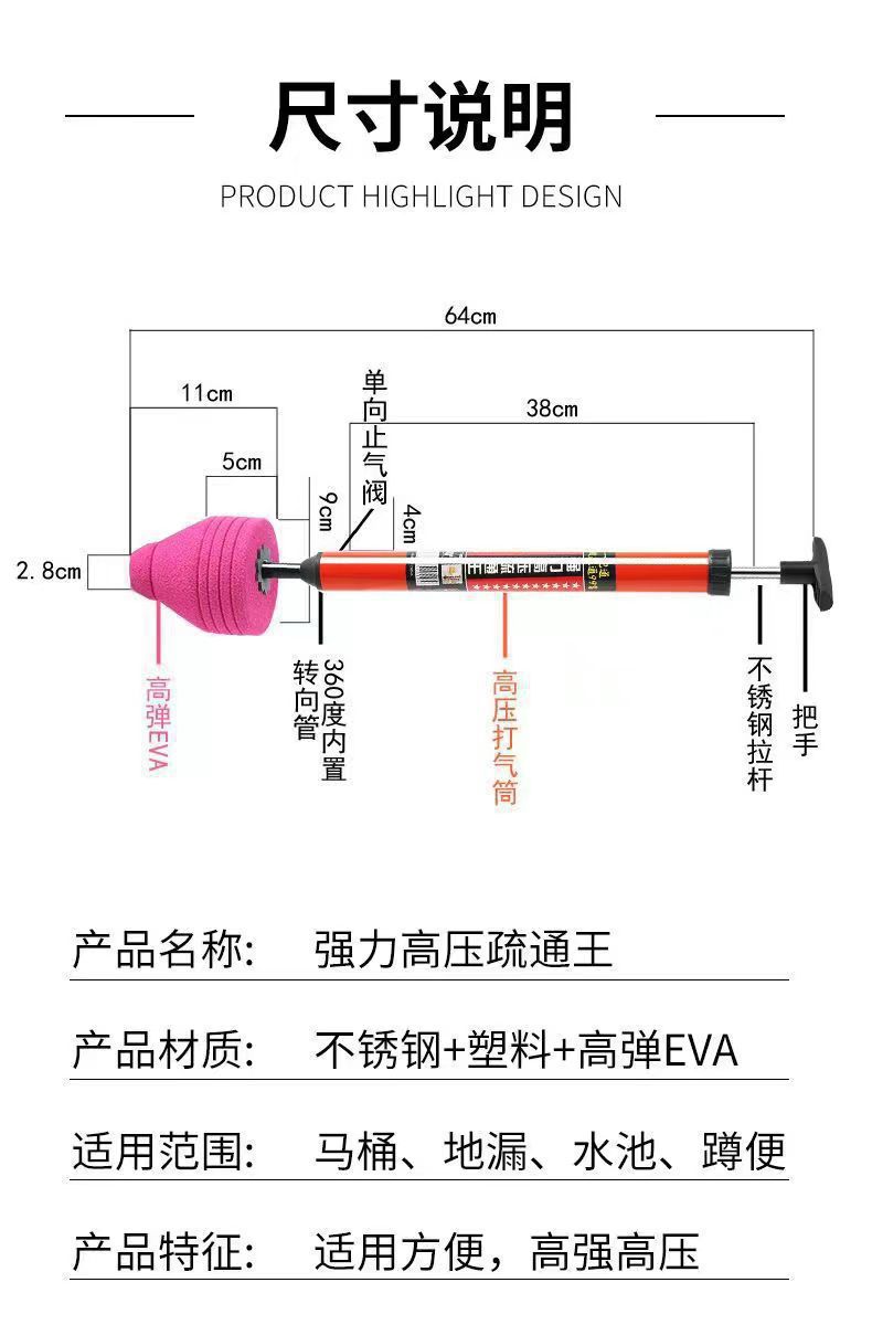 强力快速易用一炮通马桶神器通坐便厕所管道堵塞下水道马桶吸工具