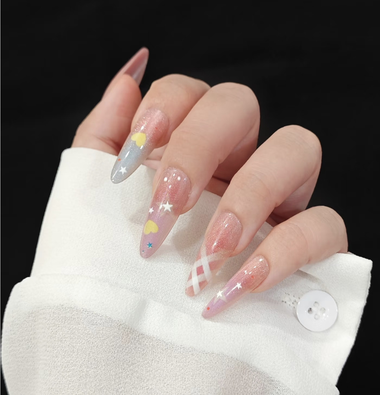 穿戴式十片分码成品批发气质简约星星猫眼可拆卸穿戴甲指甲贴片
