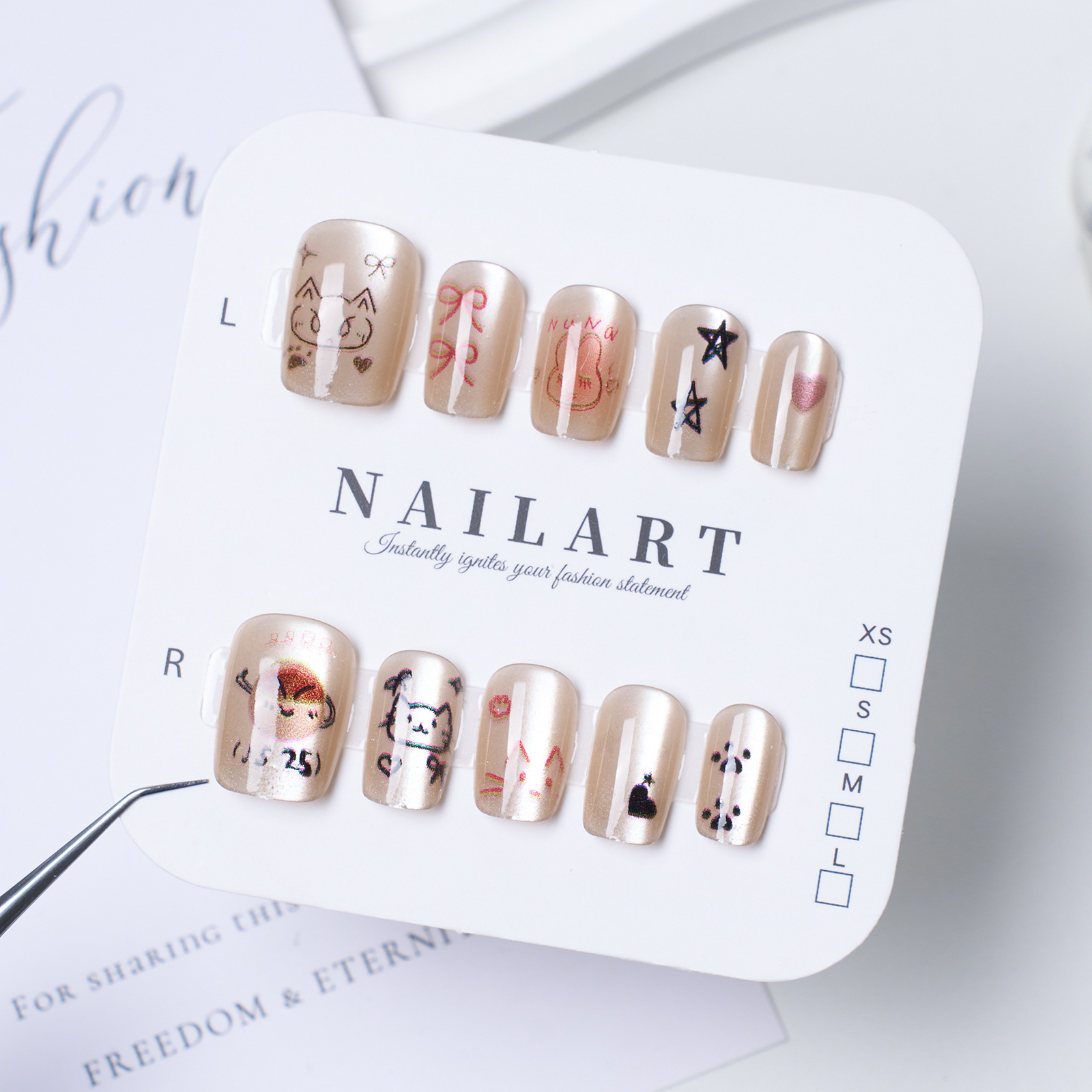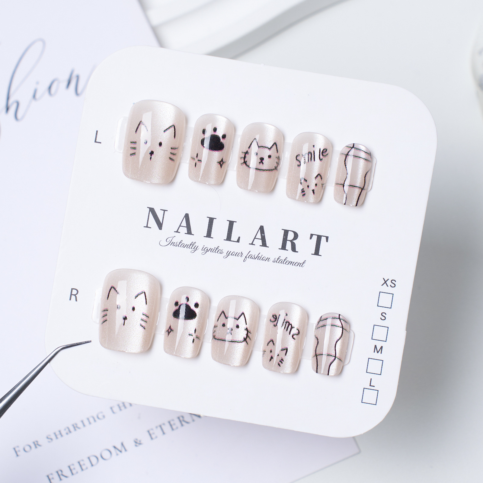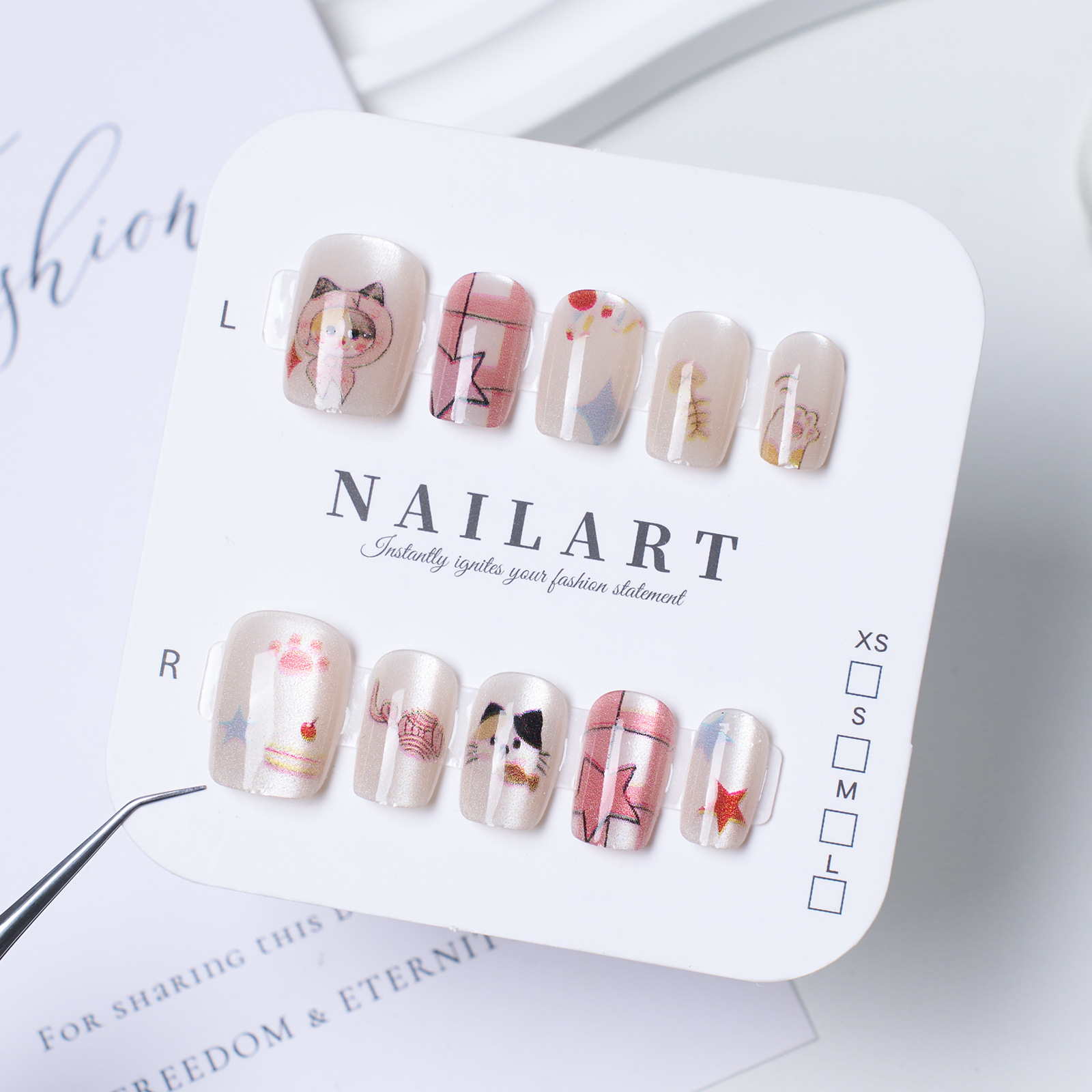 甜美可爱少女心ins手工卡通猫咪格纹星星鱼可拆卸穿戴甲工厂批发