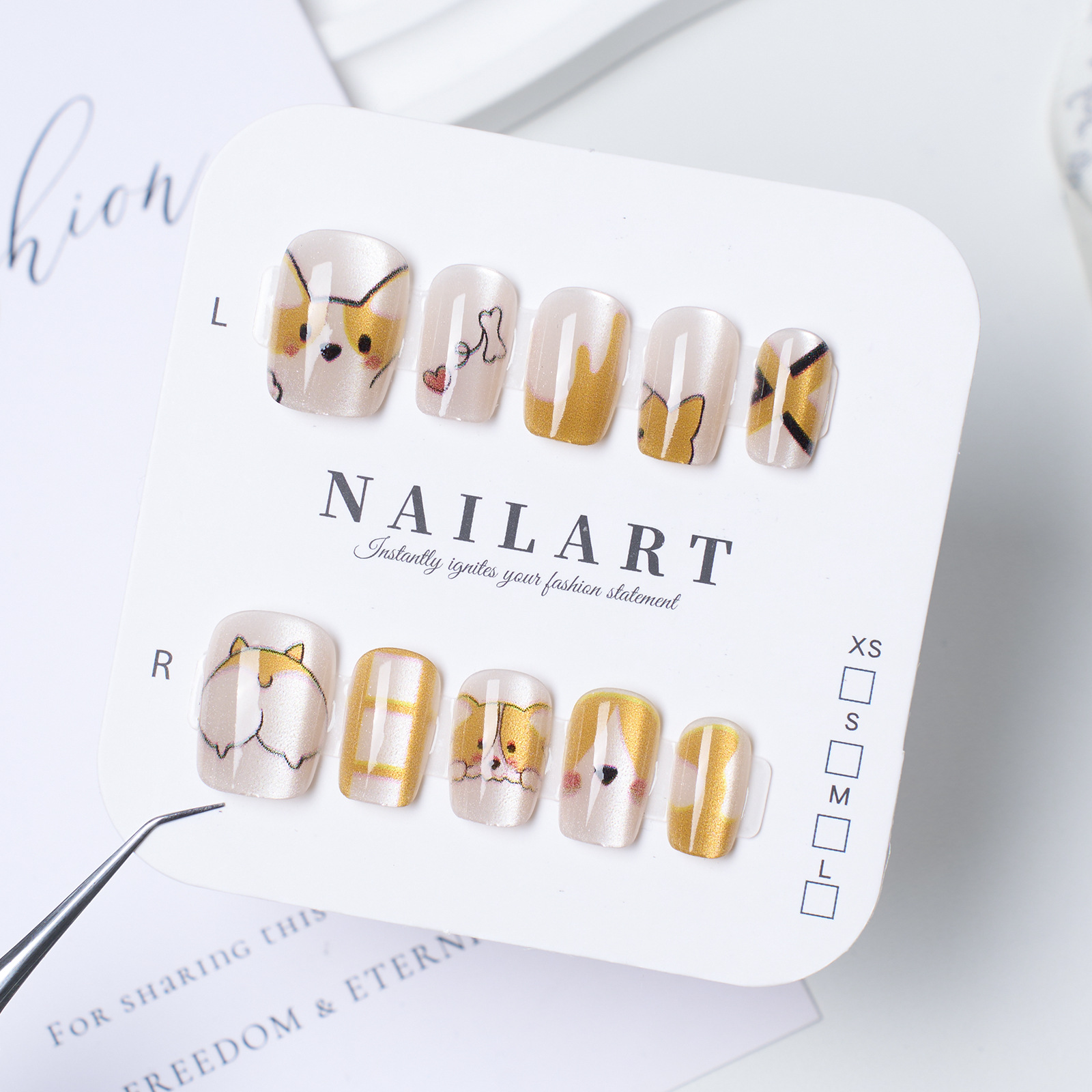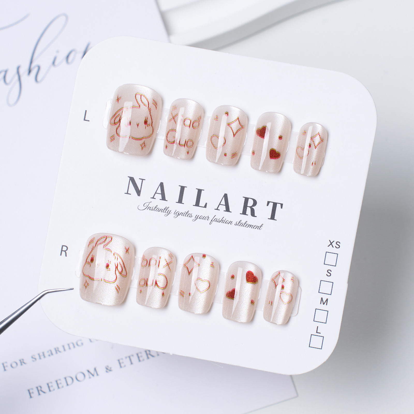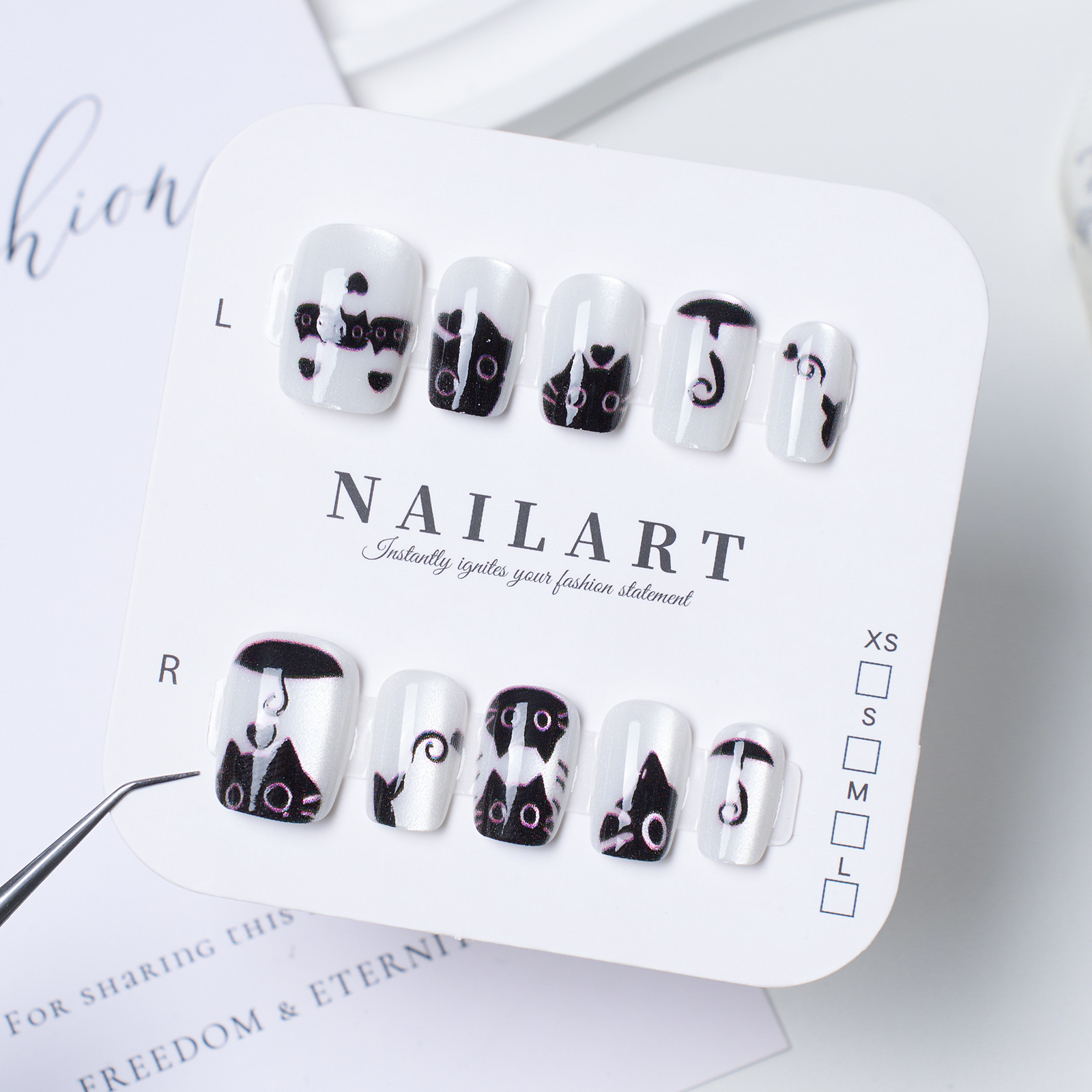 甜美可爱少女心ins手工卡通猫咪格纹星星鱼可拆卸穿戴甲工厂批发