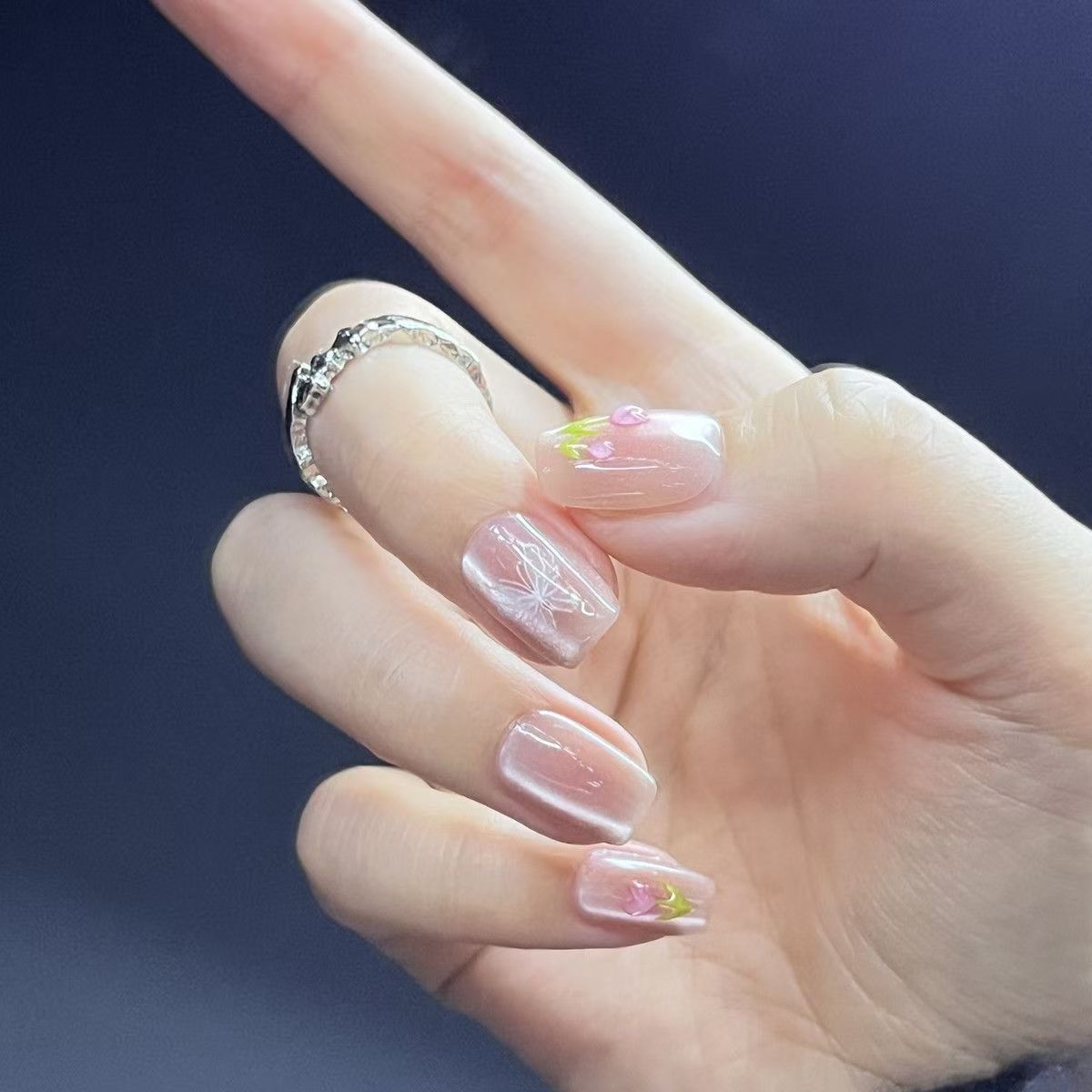 10片分码网红ins爆款高级渐变蝴蝶纯欲氛围感显白手工穿戴甲指甲