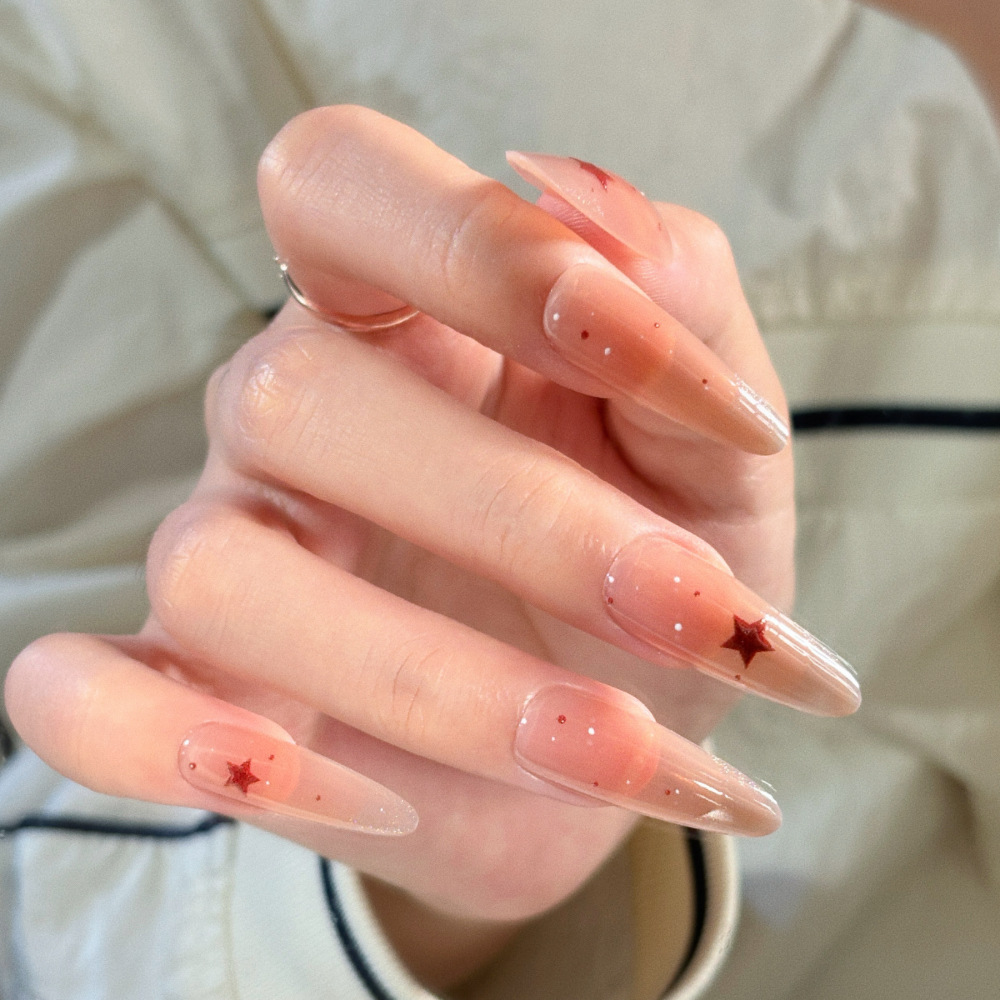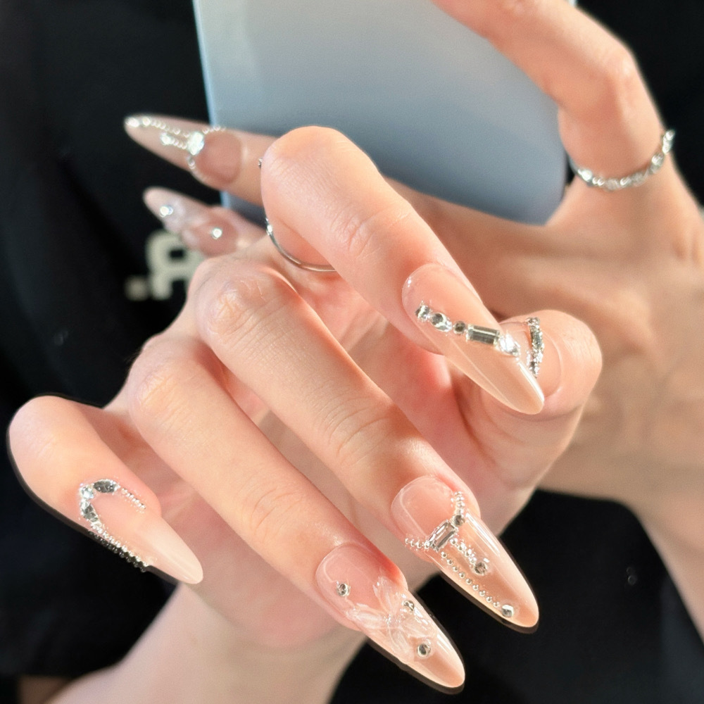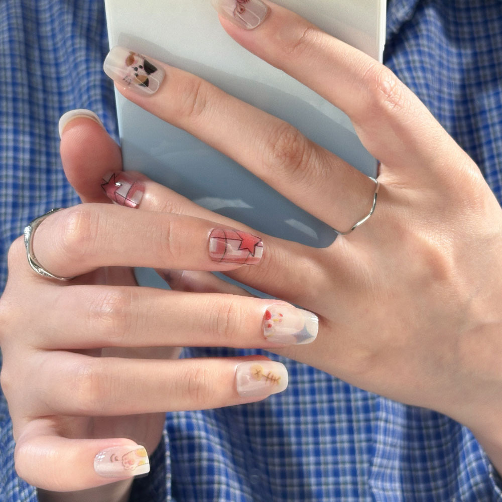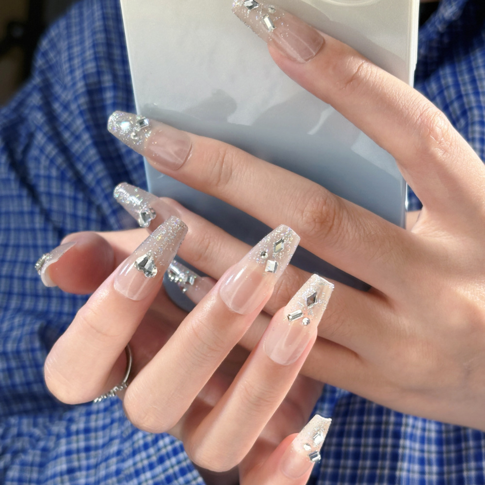 10片分码网红气质富家千金爆闪银河纯欲冰透穿戴甲指甲贴成品批发