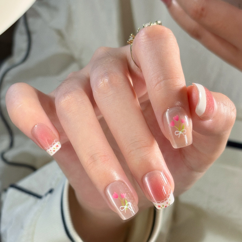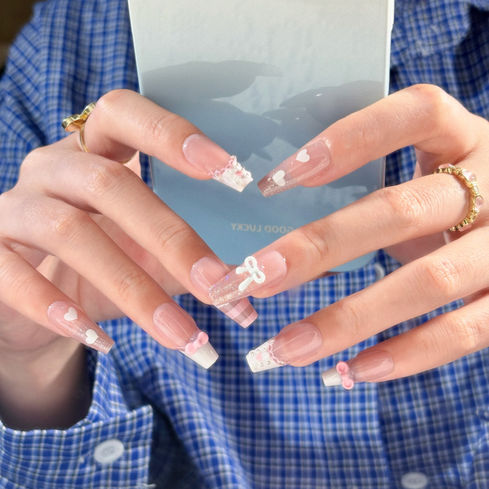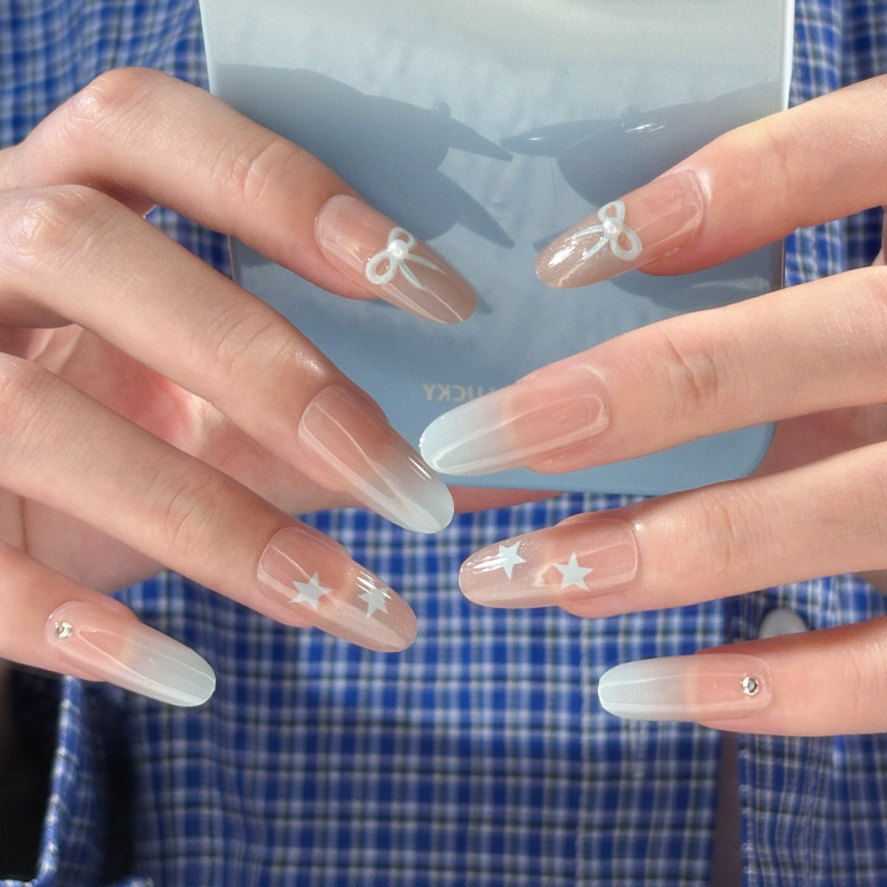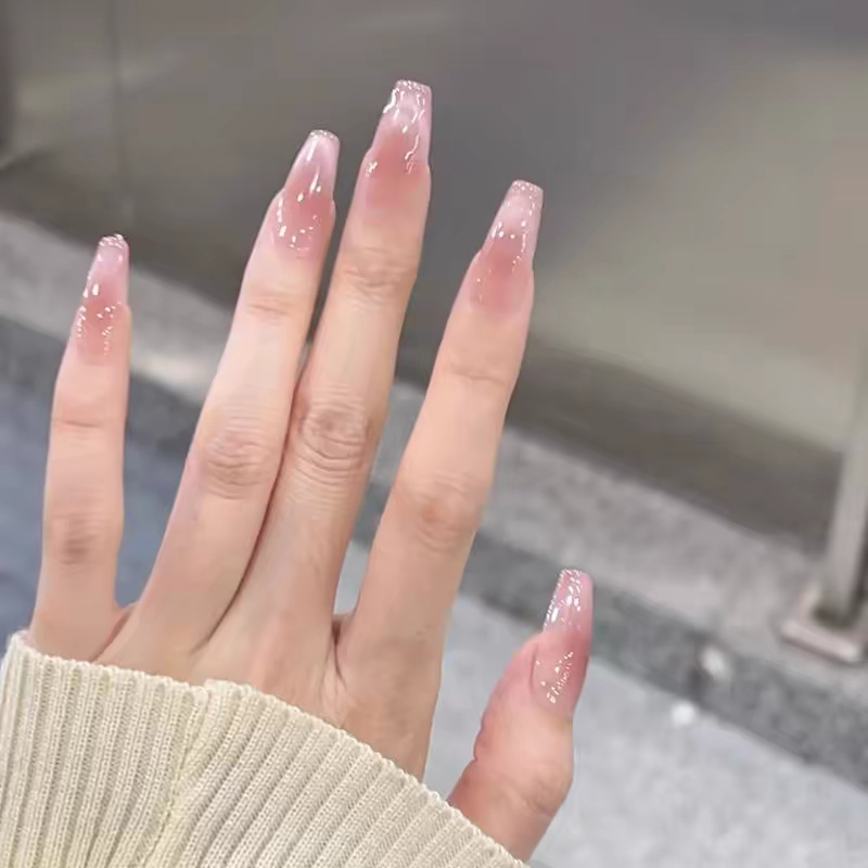 10片分码网红气质富家千金爆闪银河纯欲冰透穿戴甲指甲贴成品批发