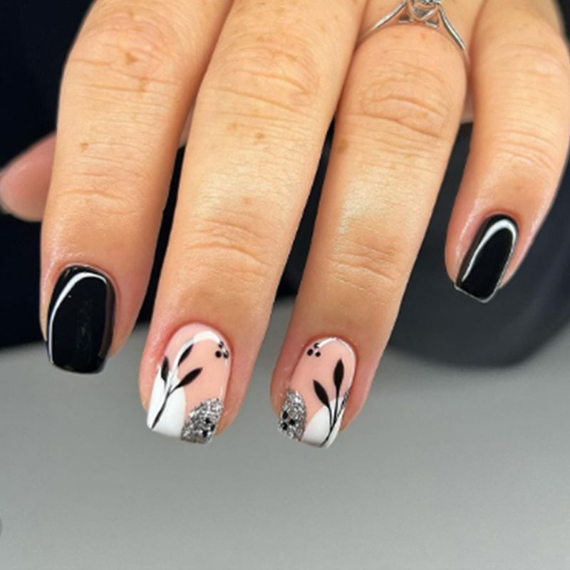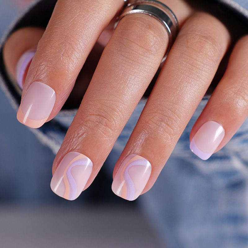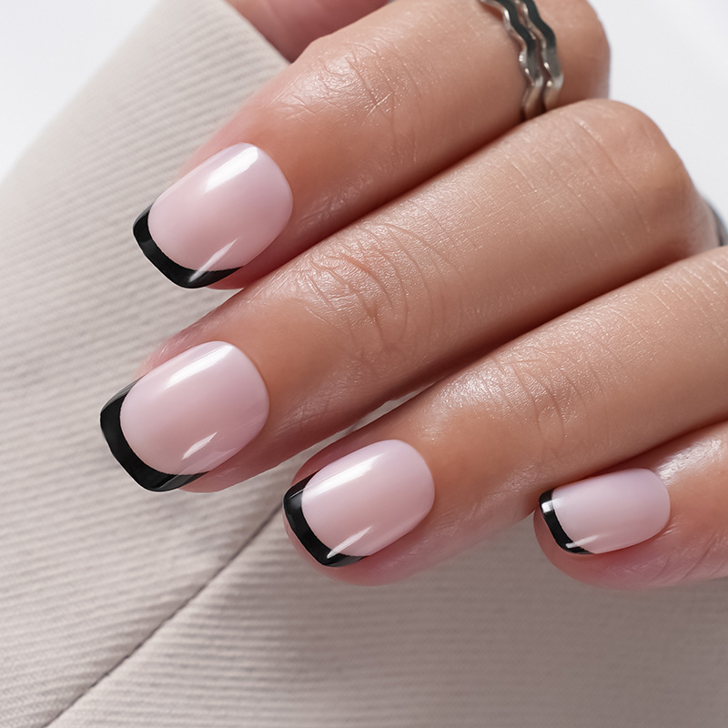 欧美热销款穿戴甲片高级感紫色法式蝴蝶黑边指甲贴美甲贴片