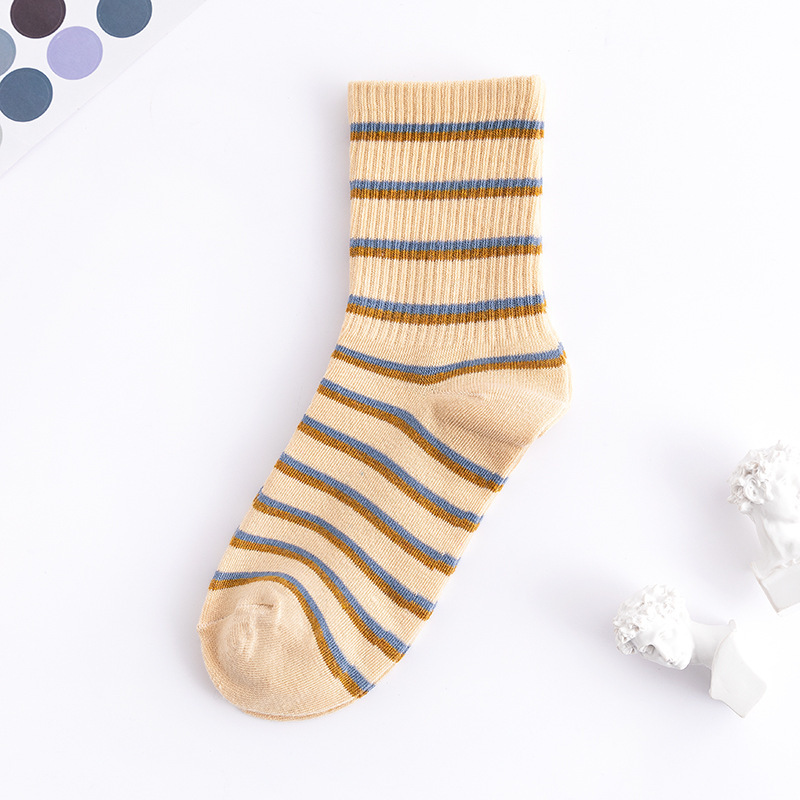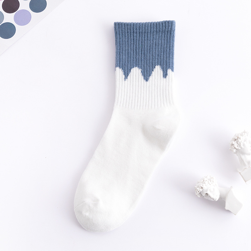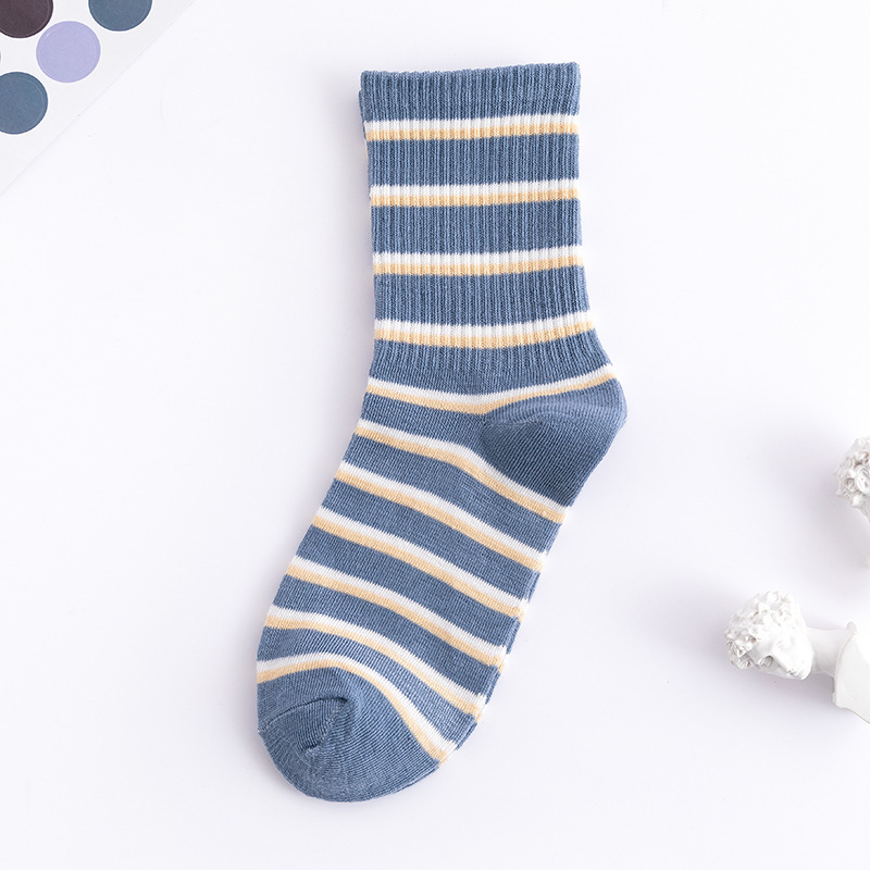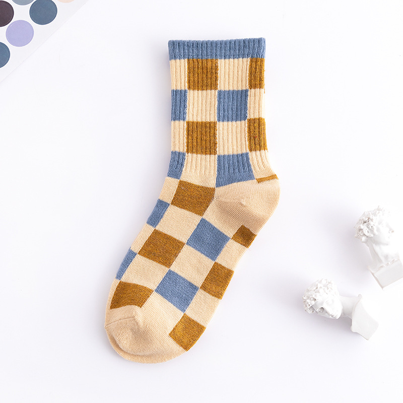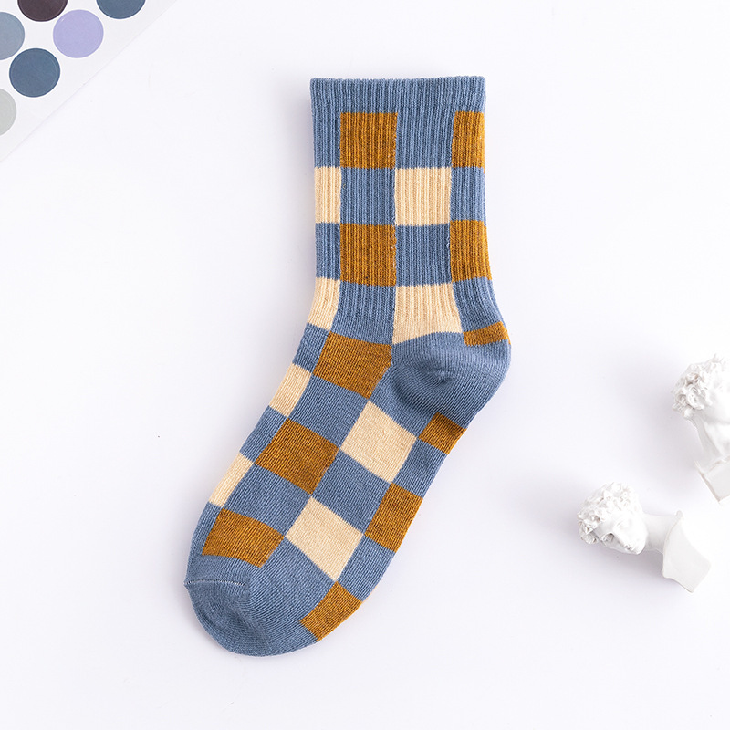 女中筒袜英伦格子风时尚潮袜ins风韩版清新高筒女袜蓝色系列款