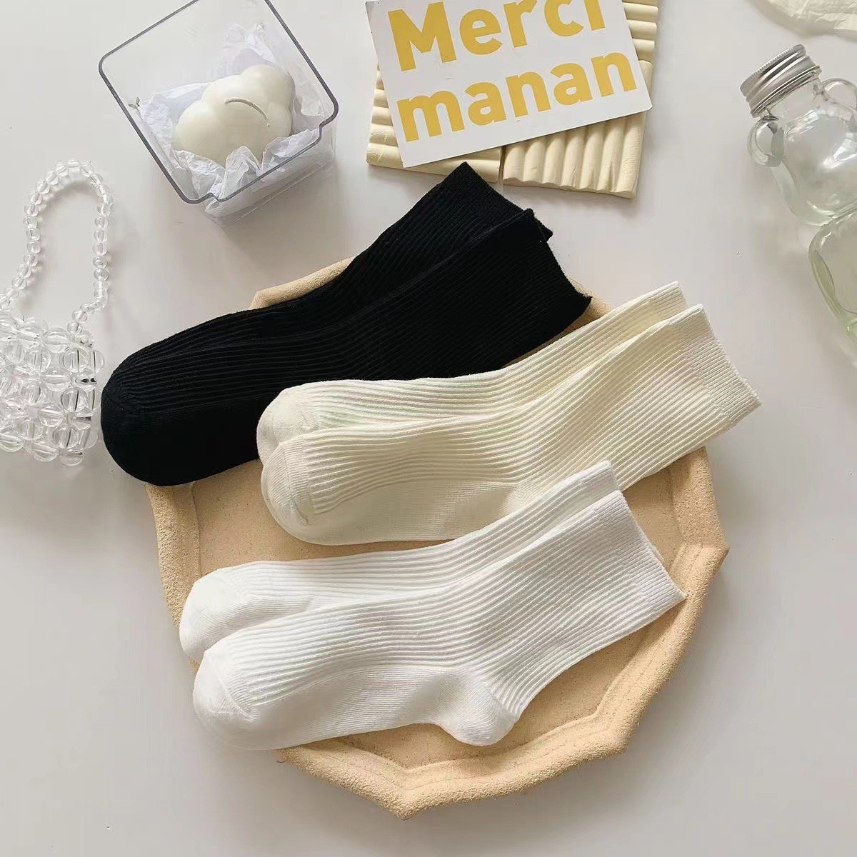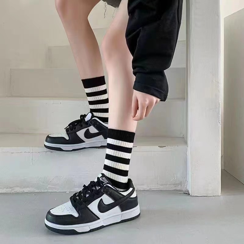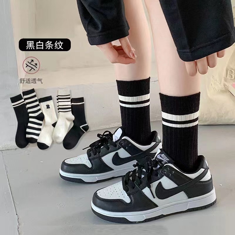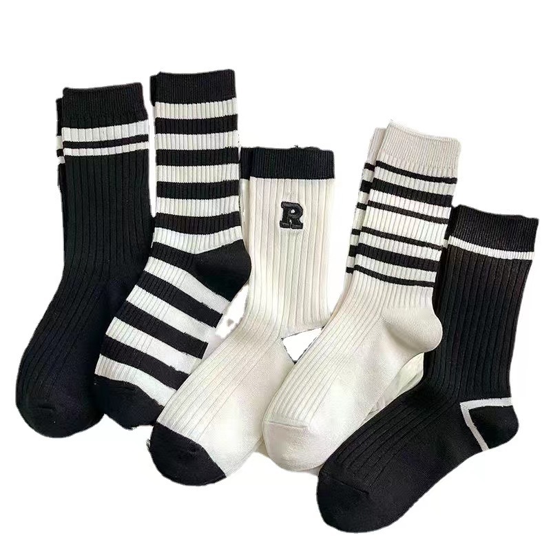 黑白袜子女韩版条纹中筒袜秋冬款网红ins潮字母百搭中筒潮袜女