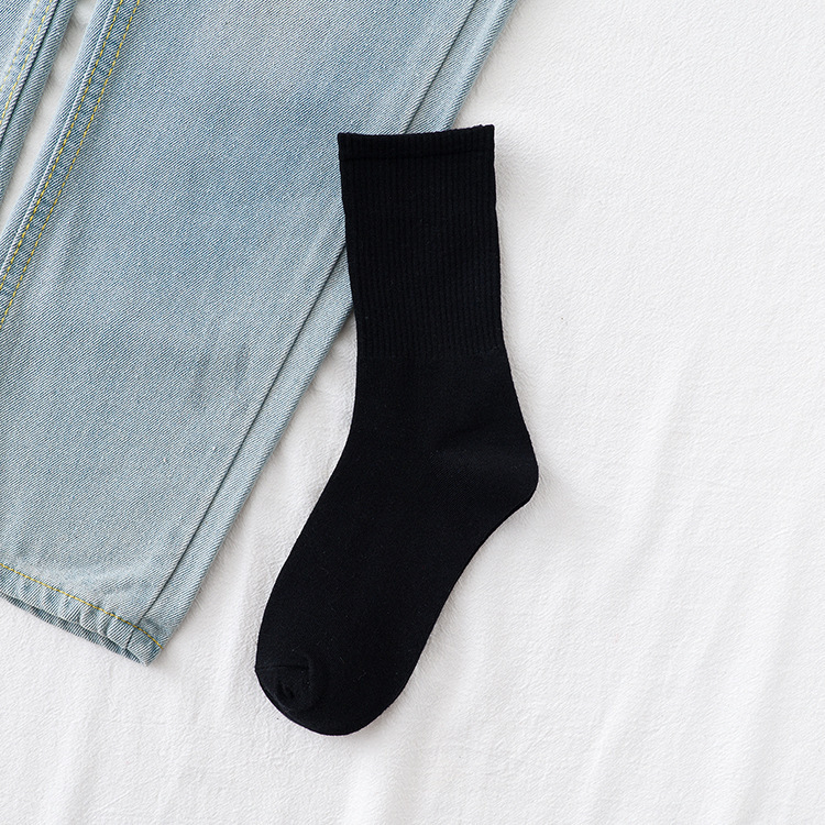 新黑白高邦女袜日系ins潮百搭运动情侣袜薄款高橡筋女袜 袜子