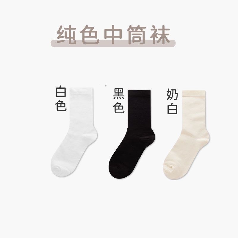 黑白色长袜堆堆袜女jk中筒袜棉制ins潮无骨袜春秋长筒秋冬月子袜