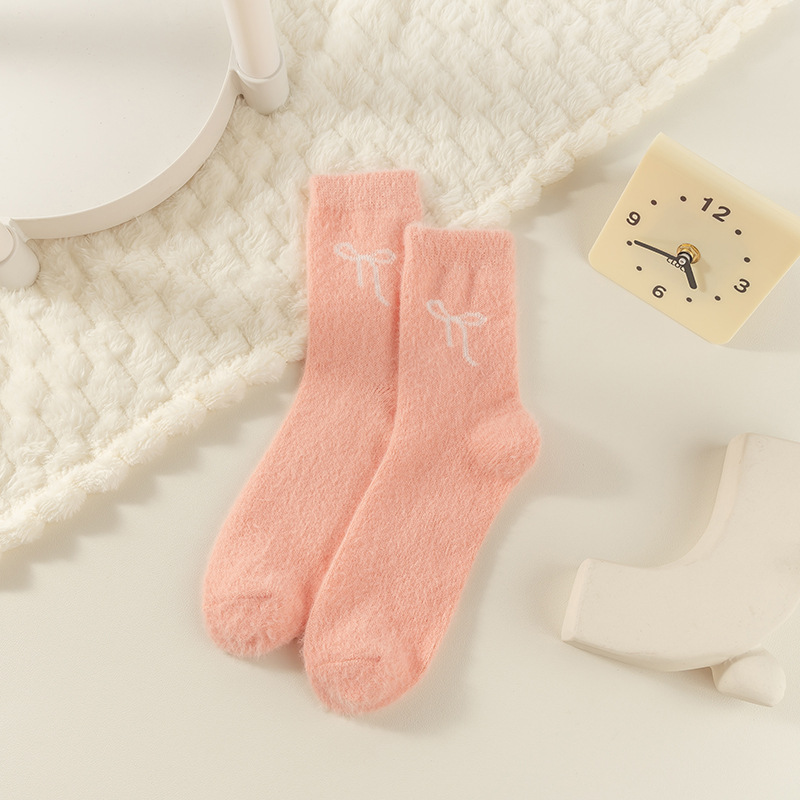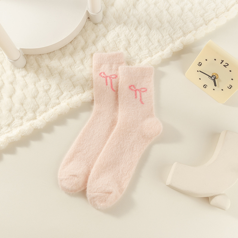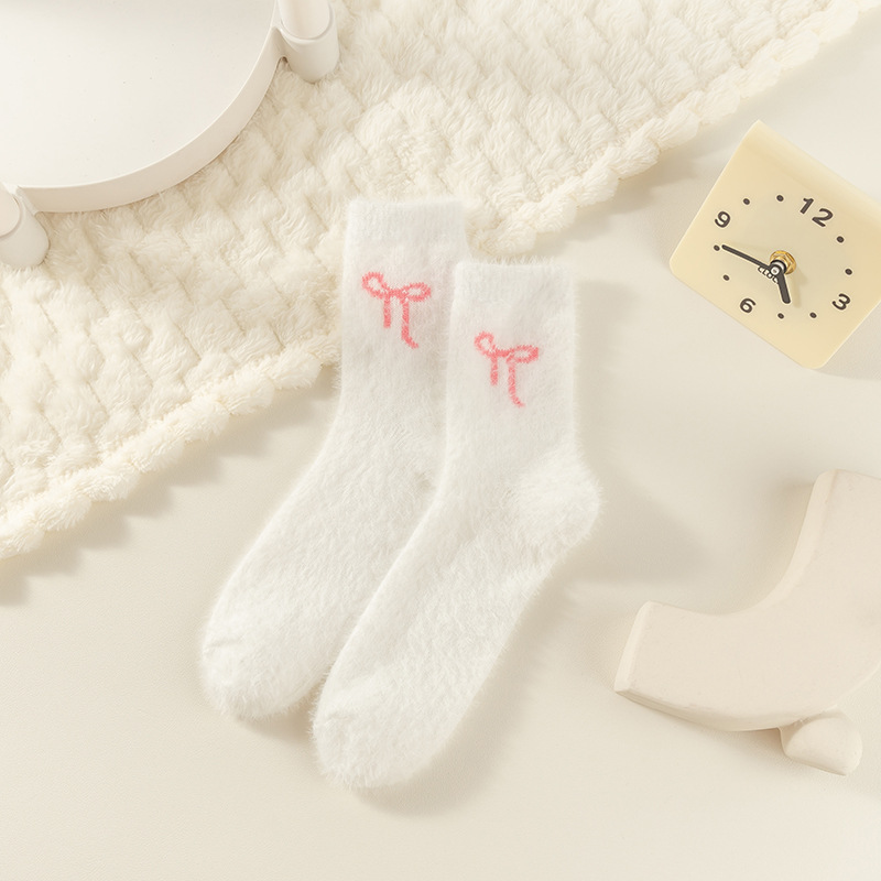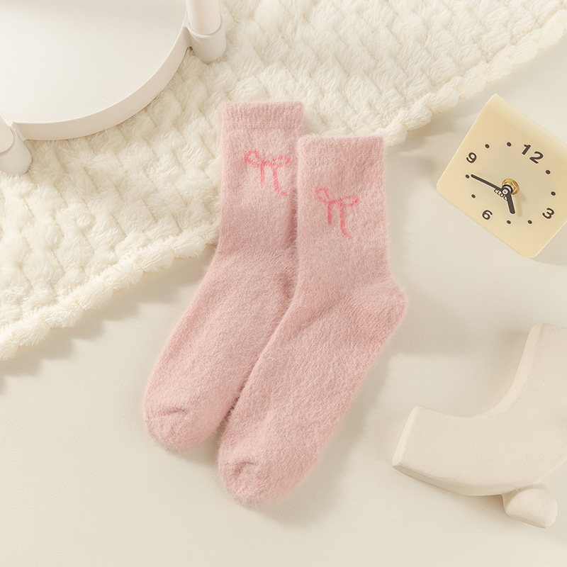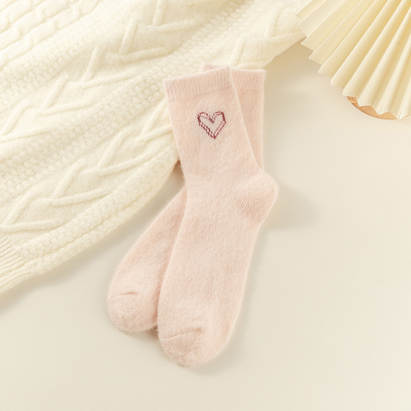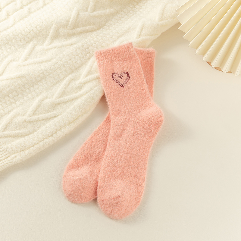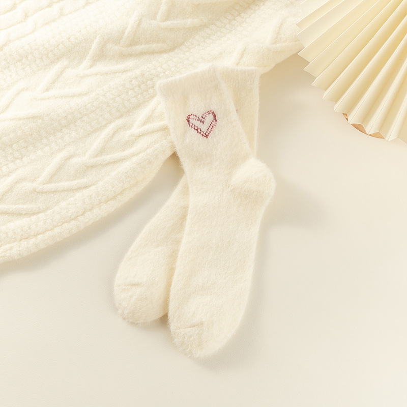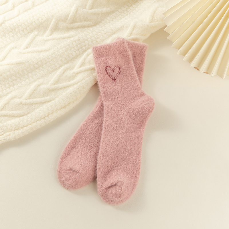 爱心刺绣水貂绒袜子女秋冬款中筒袜加厚毛绒甜美睡眠地板月子袜