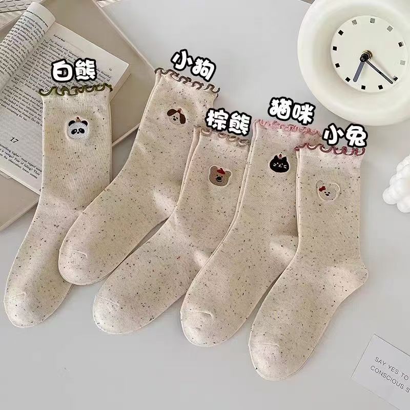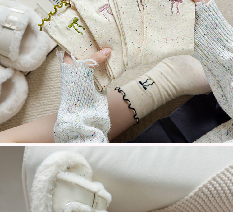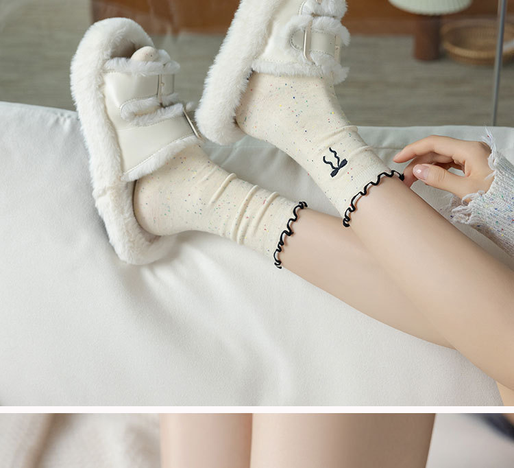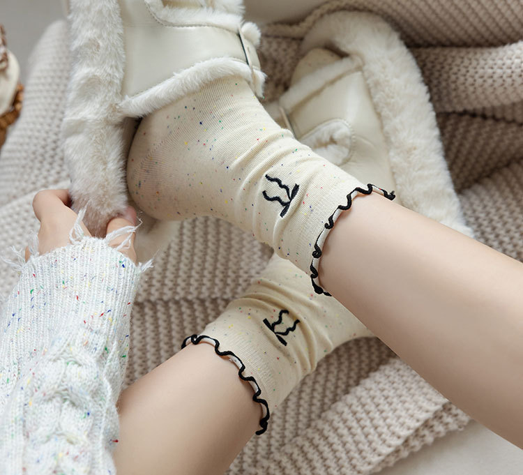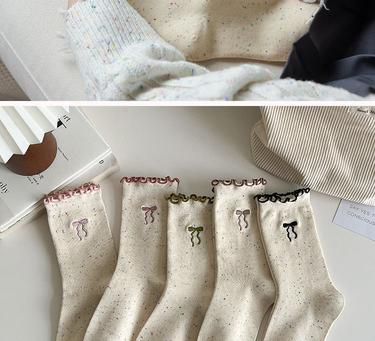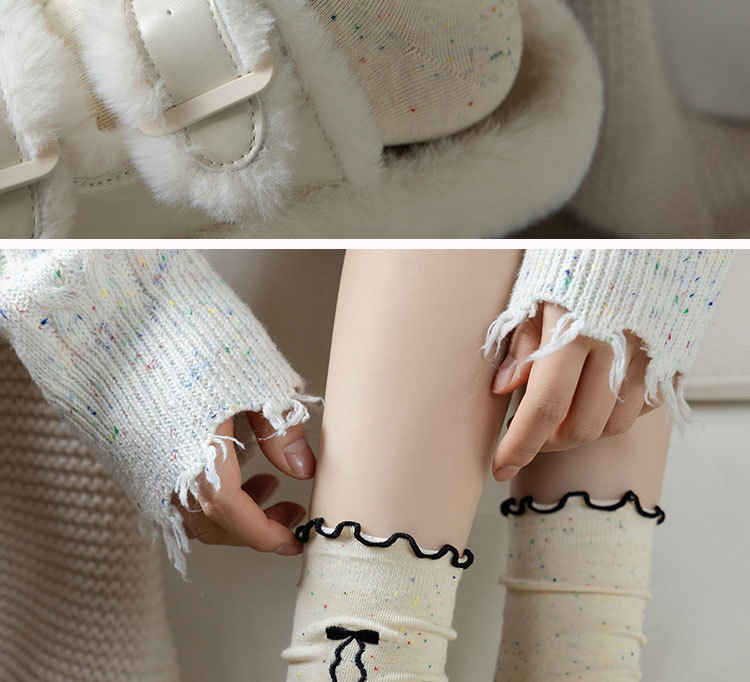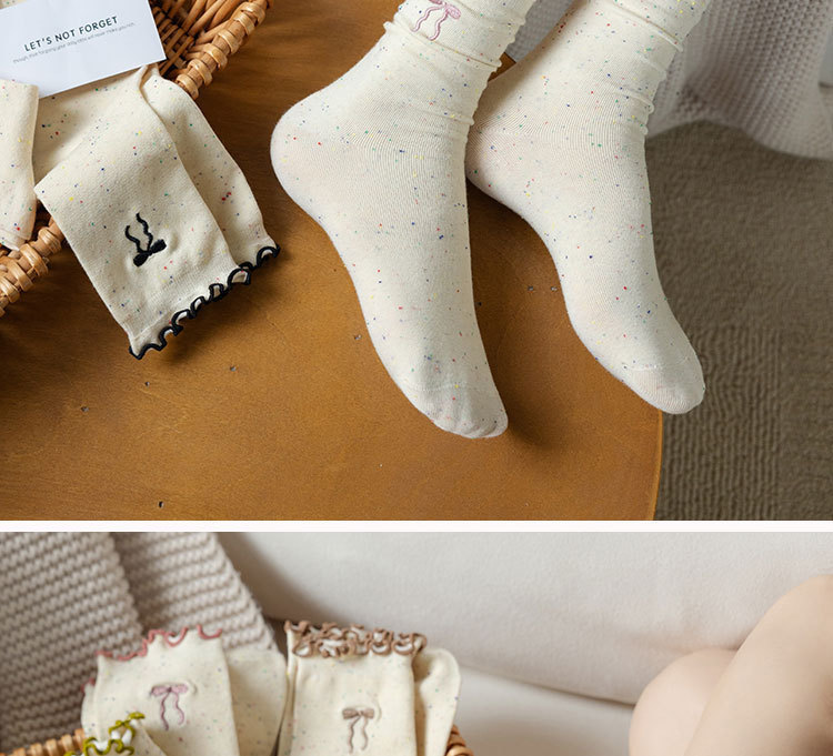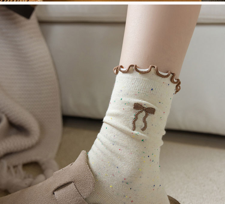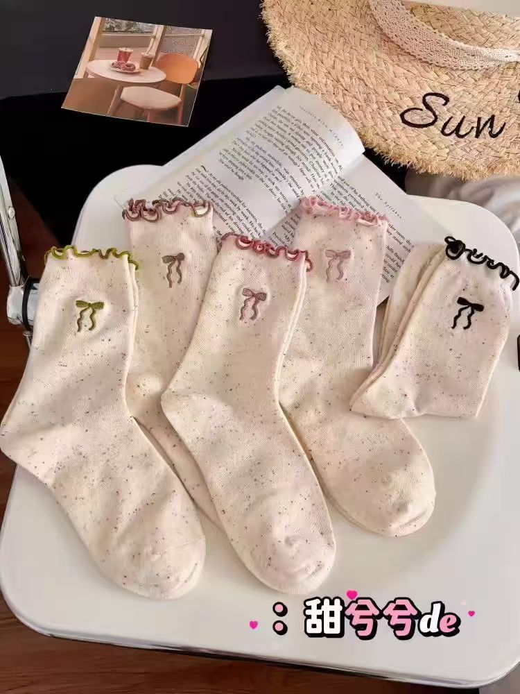 网红木耳花边蝴蝶结袜子点子纱女中筒袜 ins潮日系甜美中长堆堆袜