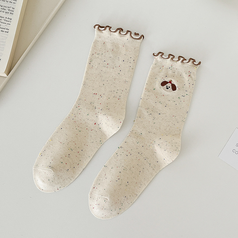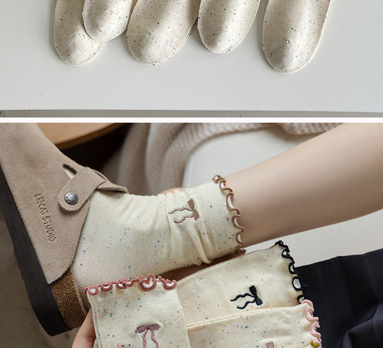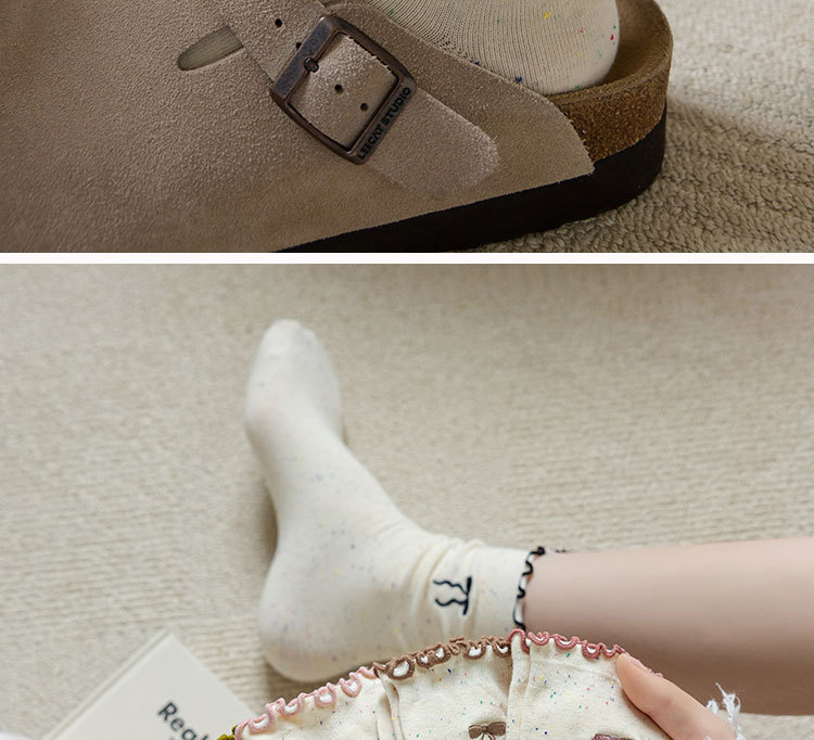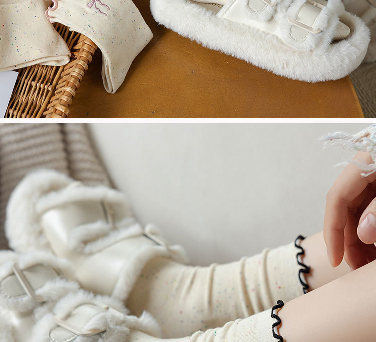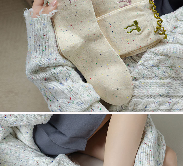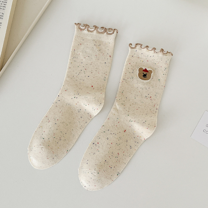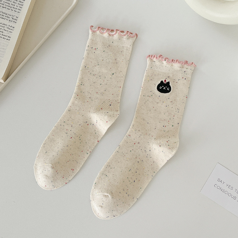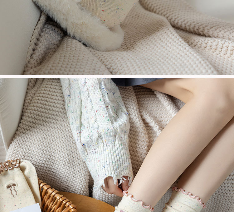 网红木耳花边蝴蝶结袜子点子纱女中筒袜 ins潮日系甜美中长堆堆袜