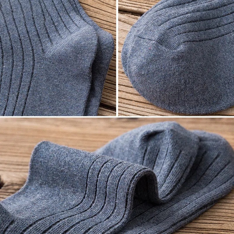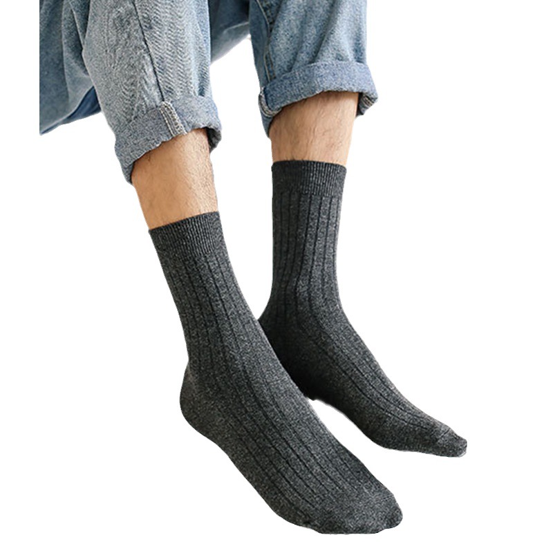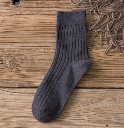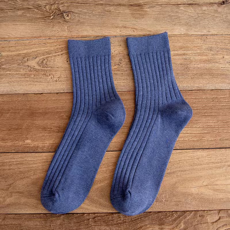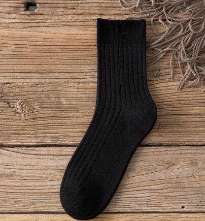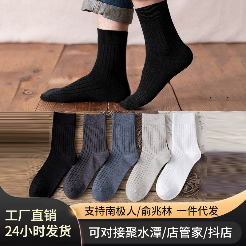 袜子男士中筒袜秋冬纯色竖条长筒袜休闲商务高筒袜透气吸汗运动袜