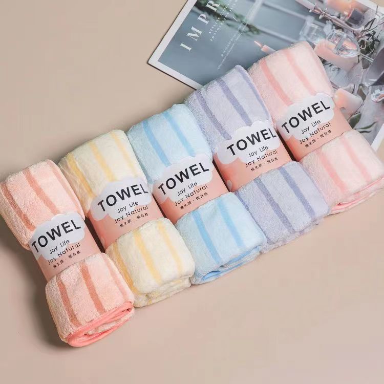 新款珊瑚绒毛巾3575吸水不掉毛条纹毛巾五条装礼品回礼毛巾带包装