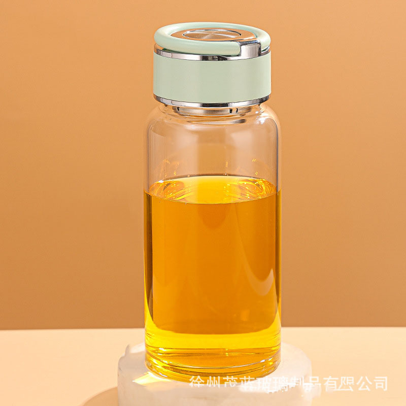 简约便携高硼硅玻璃水杯带提环玻璃胖胖杯耐高温女士户外水杯批发