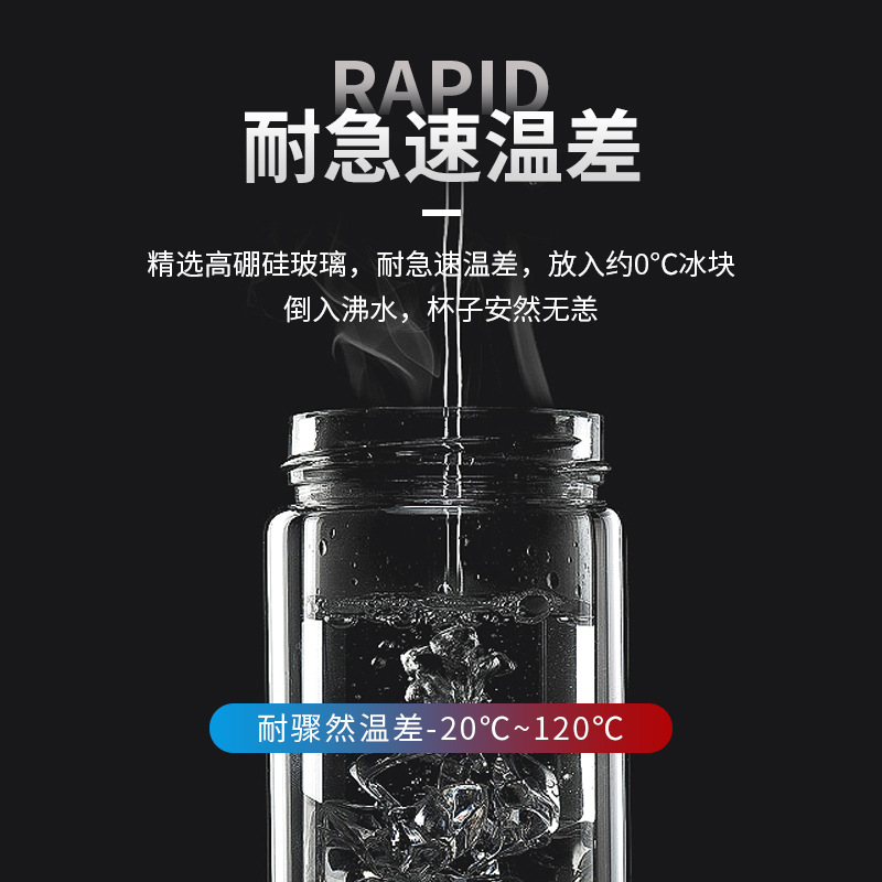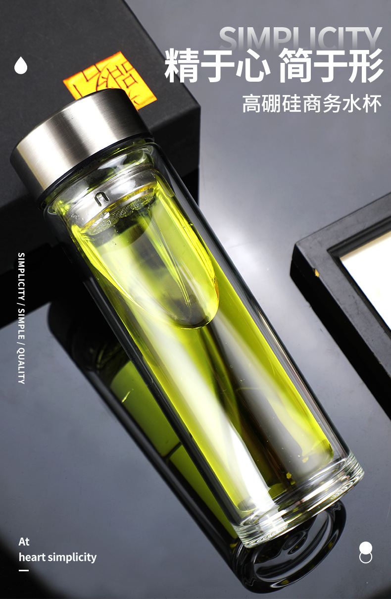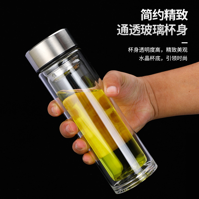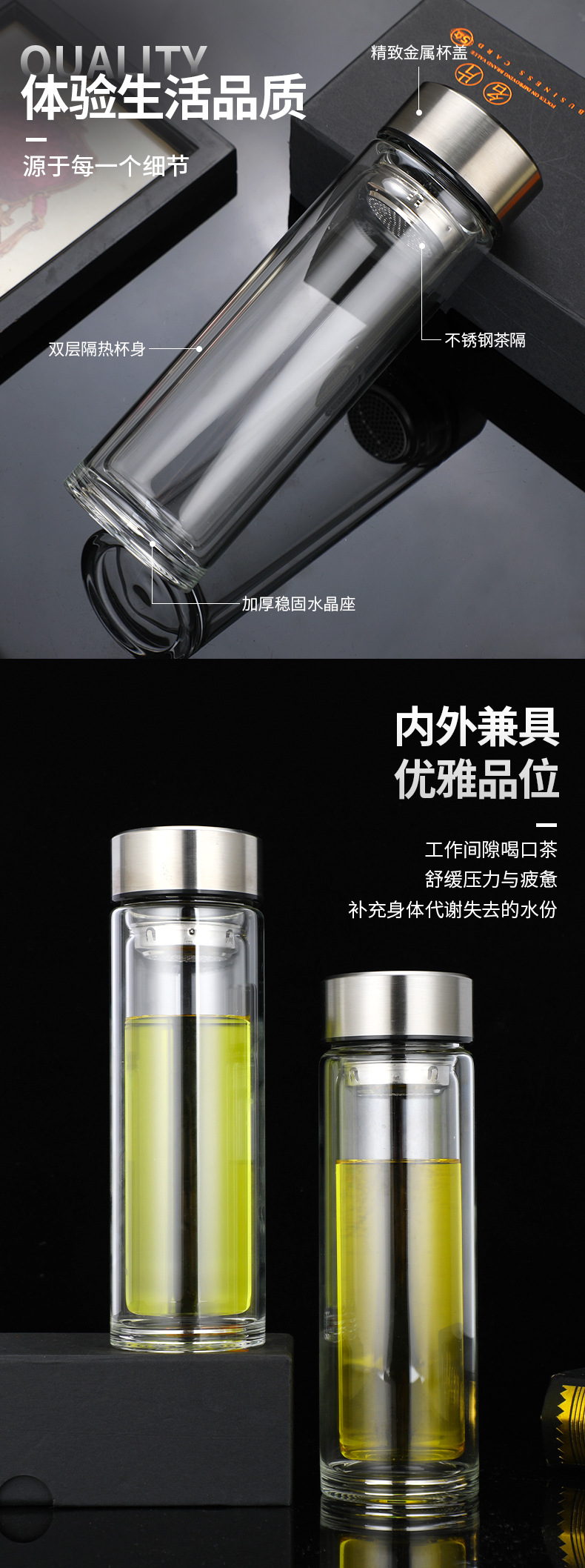 商务车载双层高硼硅耐高温隔热商务玻璃杯礼品水杯印LOGO