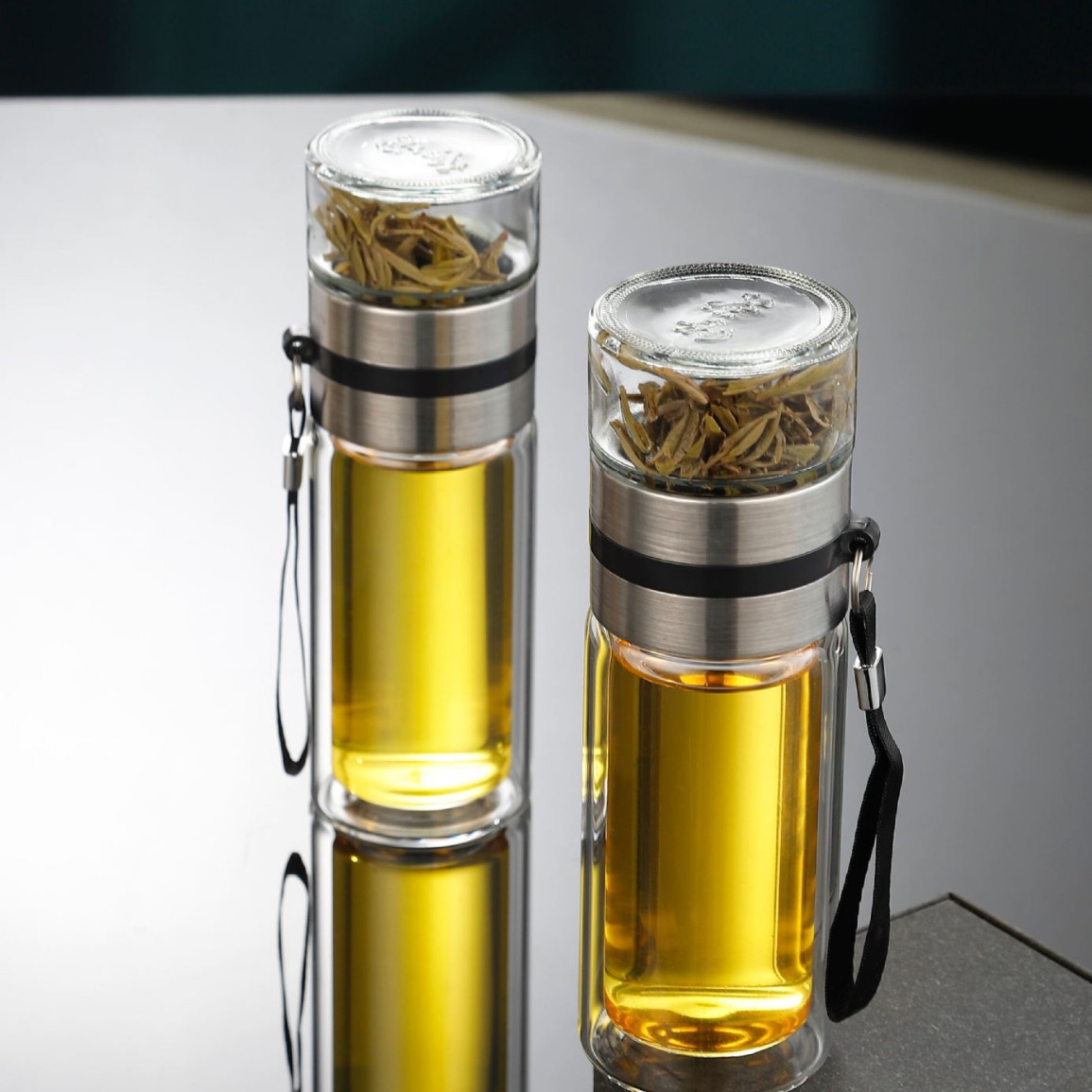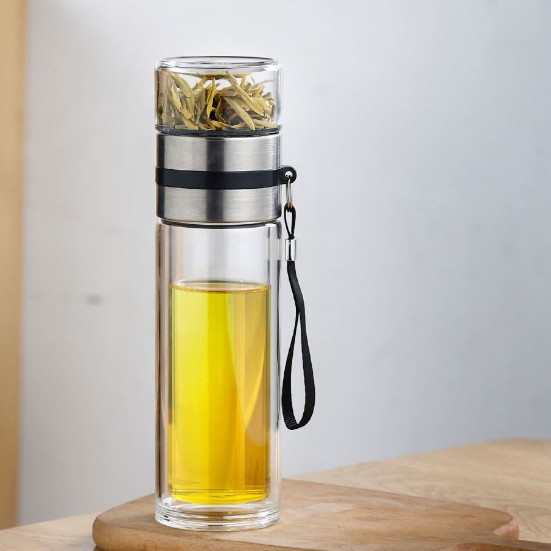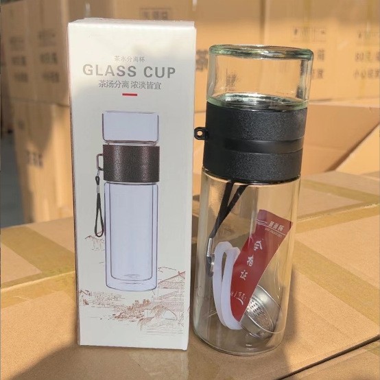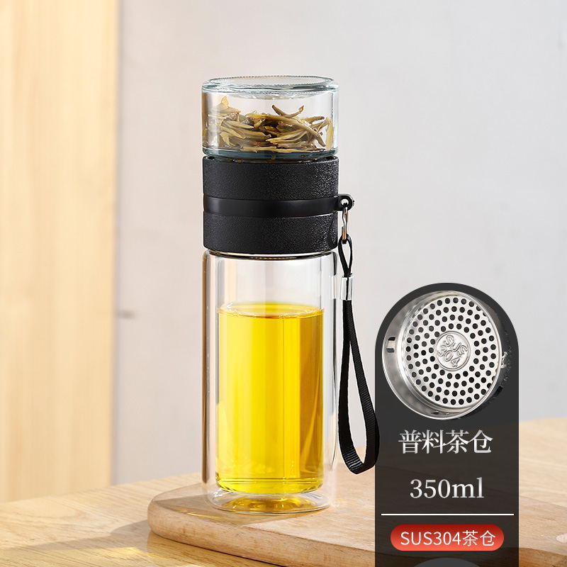 茶水分离杯耐高温泡茶杯批发茶杯双层玻璃杯便携可印字礼品杯水杯