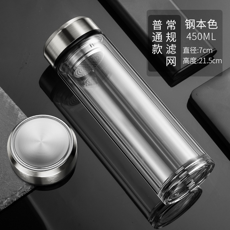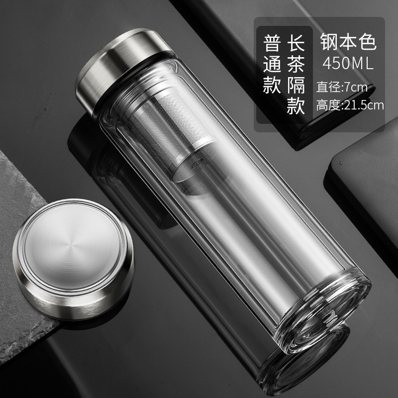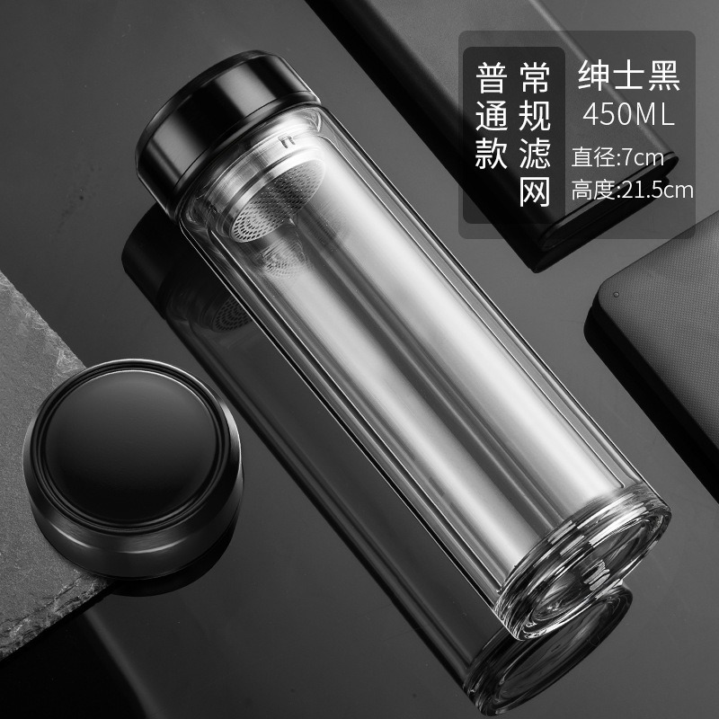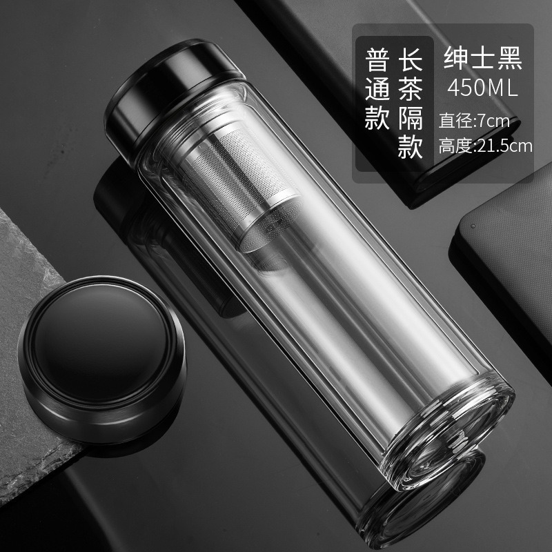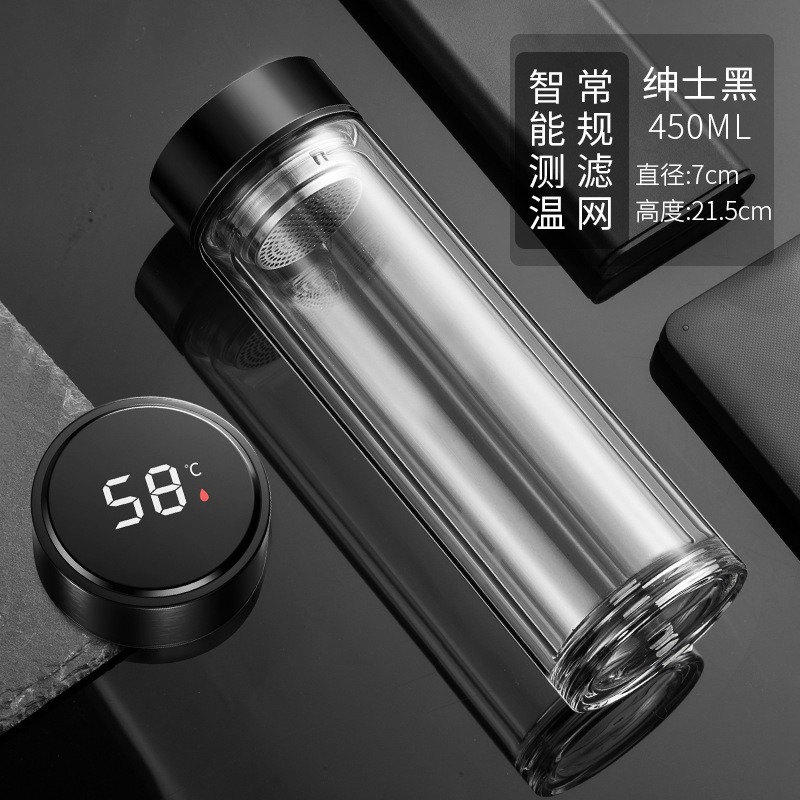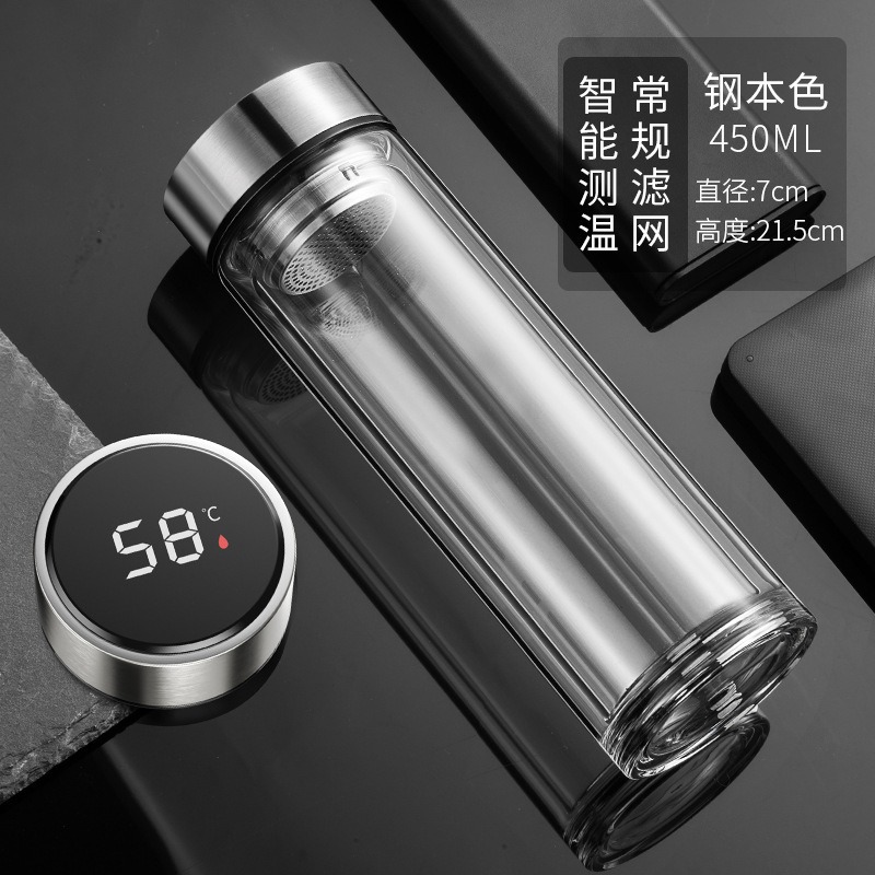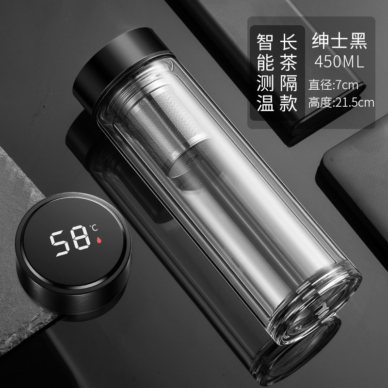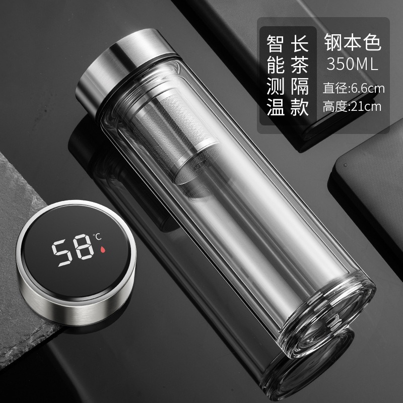 现货智能水杯双层玻璃杯泡茶杯男士透明带温显茶水分离隔热水杯子