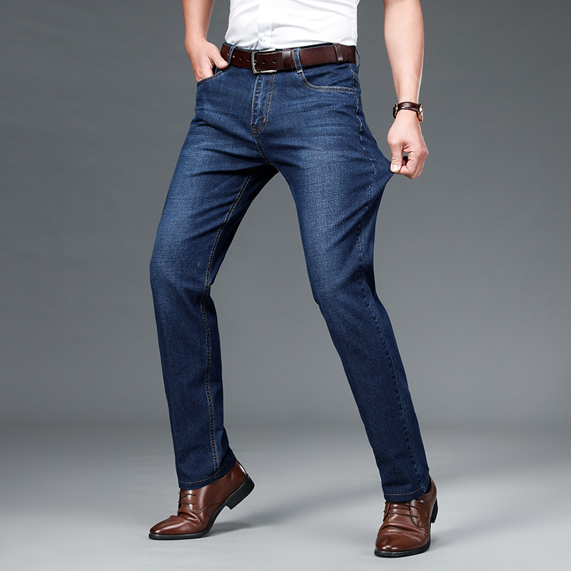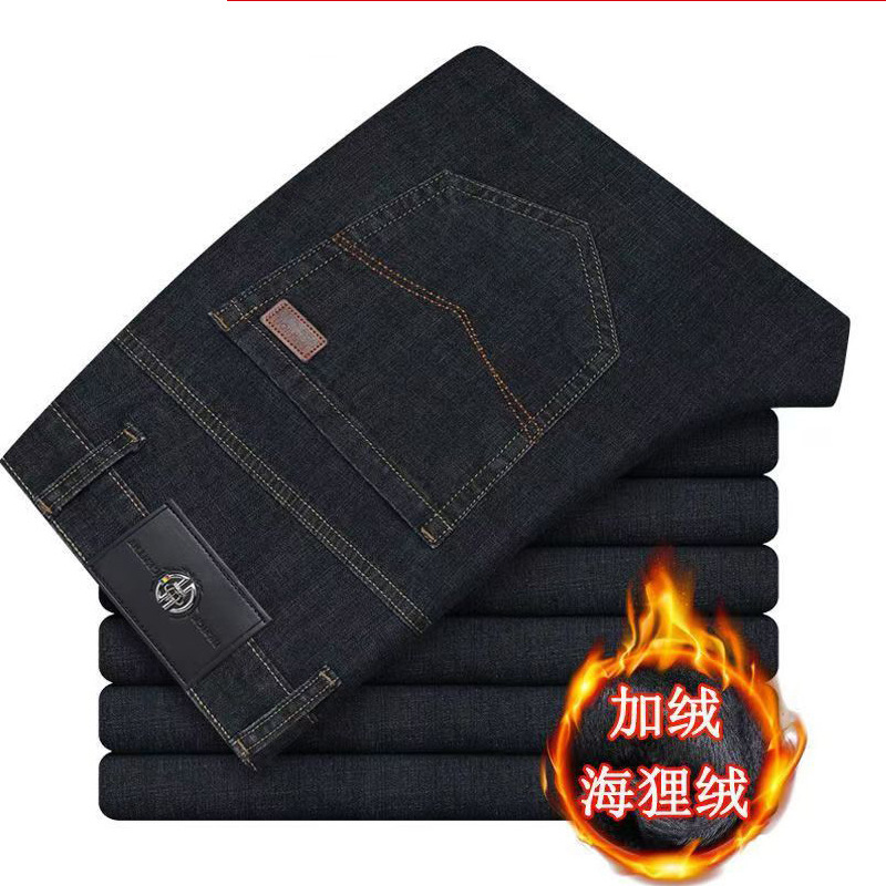 秋冬厚款棉质男牛仔裤宽松直筒修身休闲裤商务西裤中老年加绒长裤