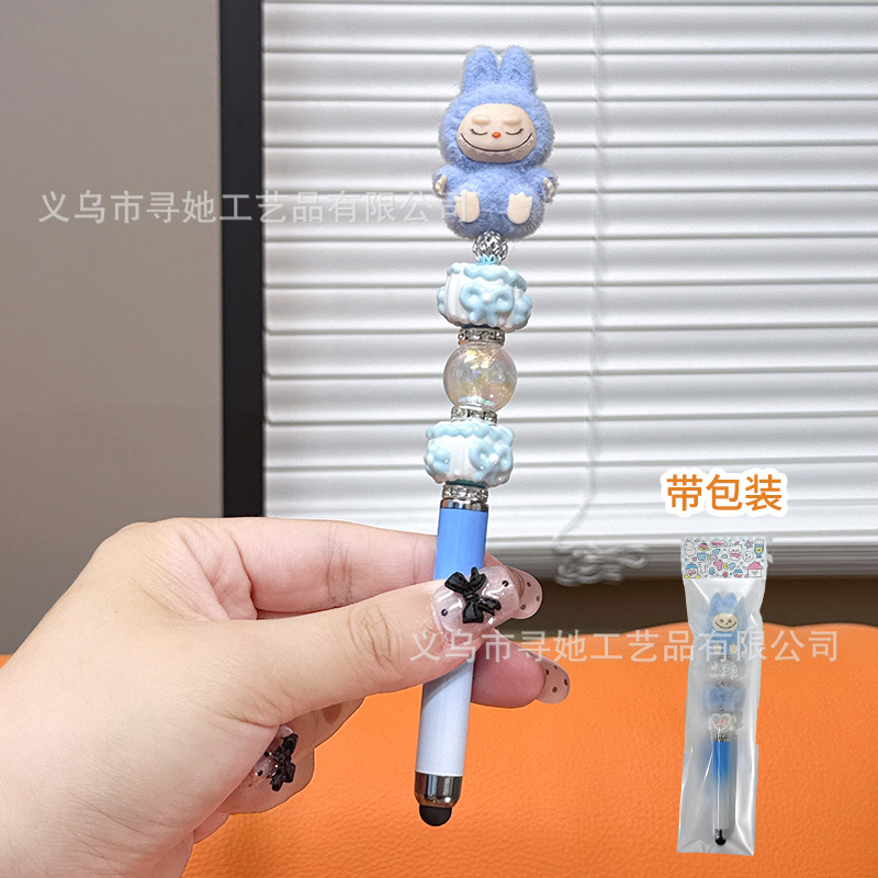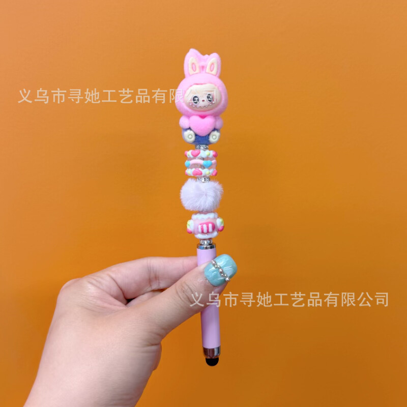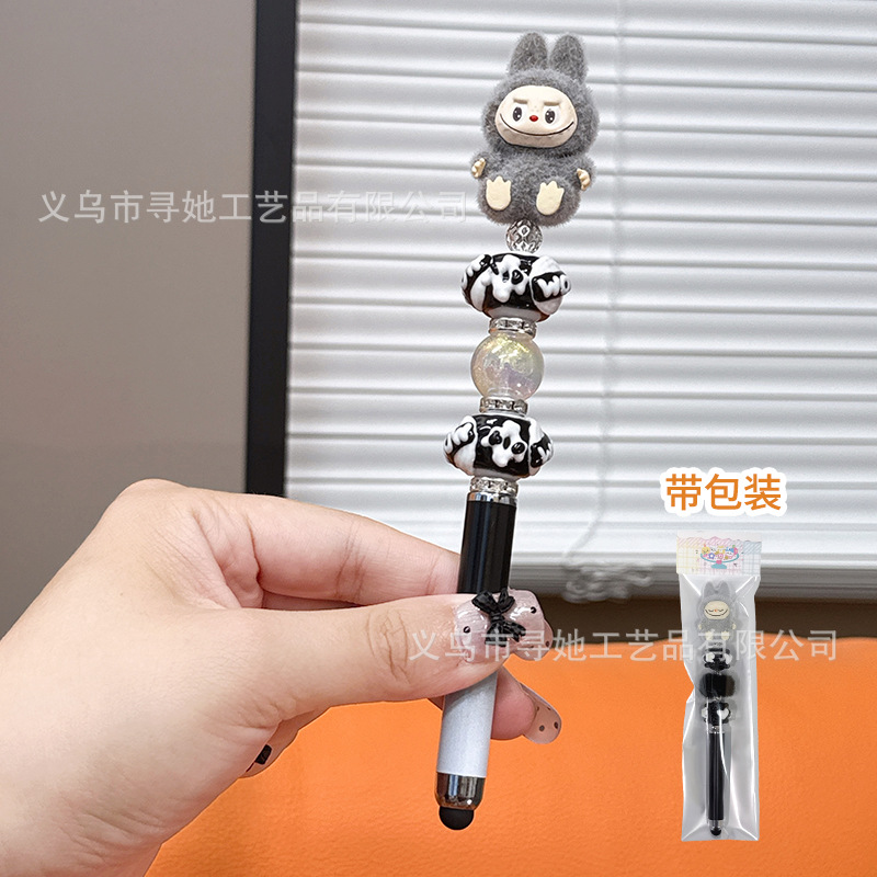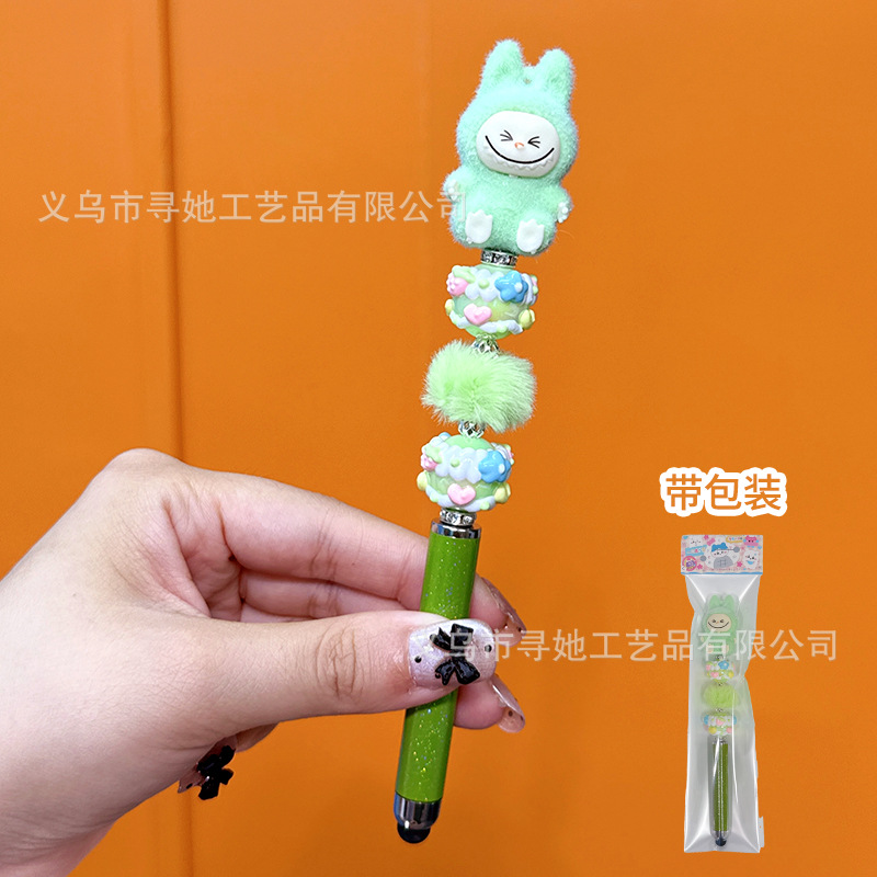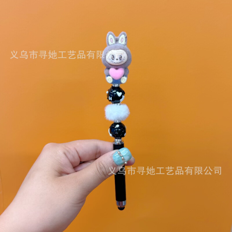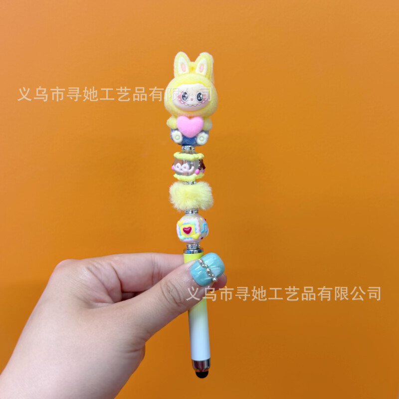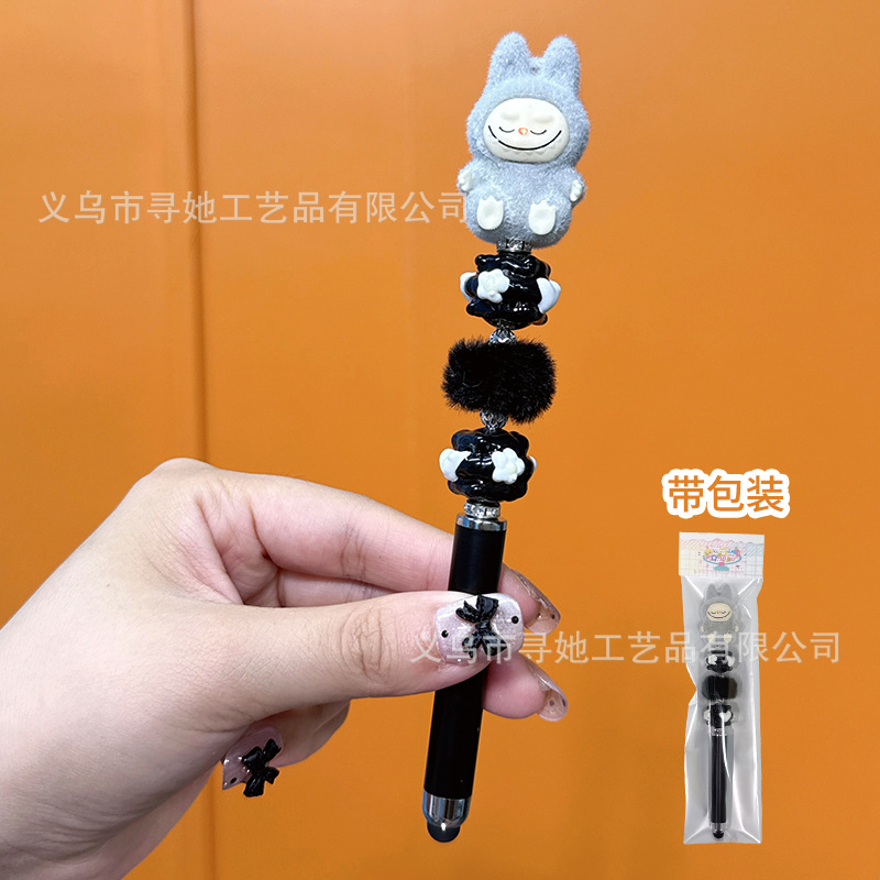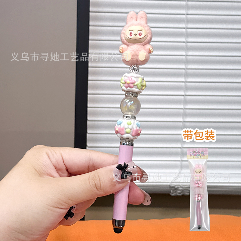 严选创意diy萌粒串珠笔手机平板触屏中性笔可爱玩偶手工学生礼品