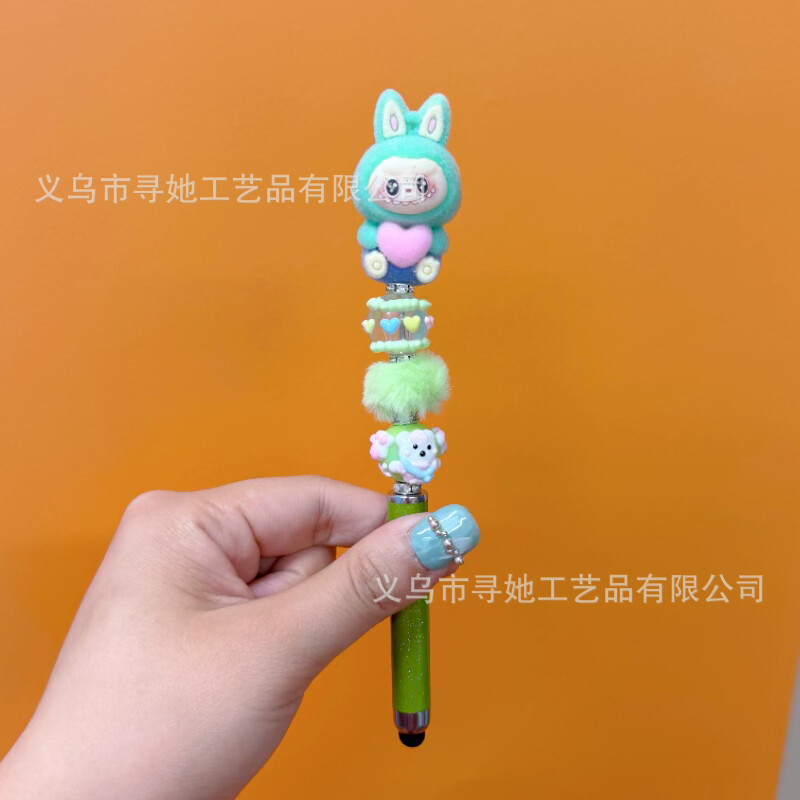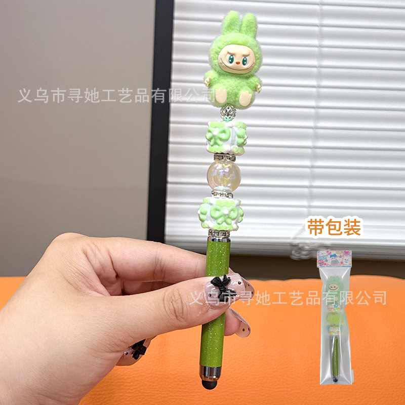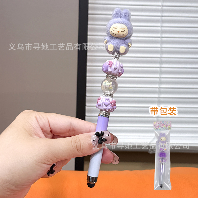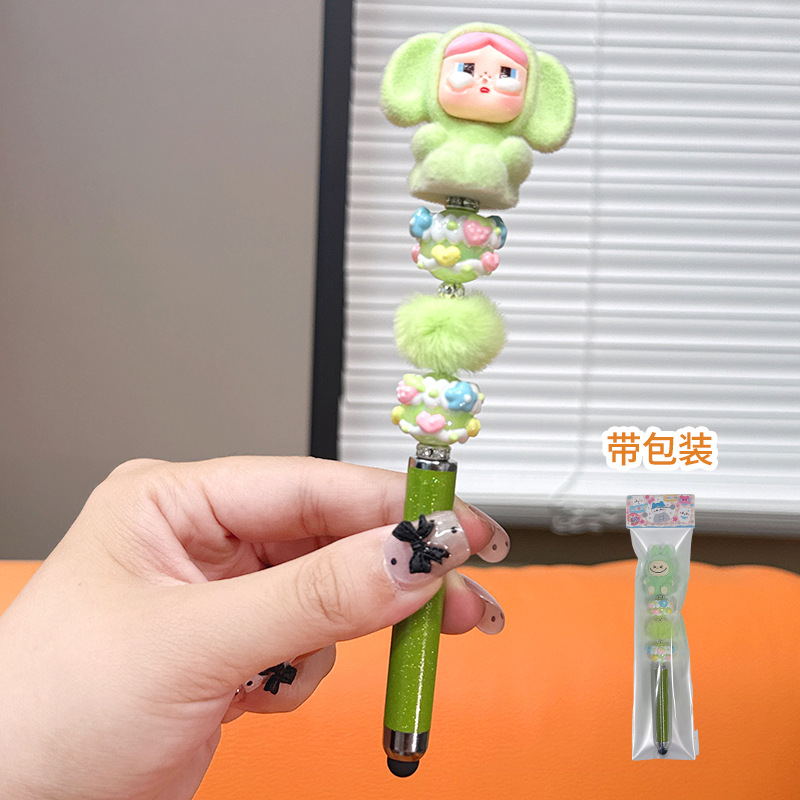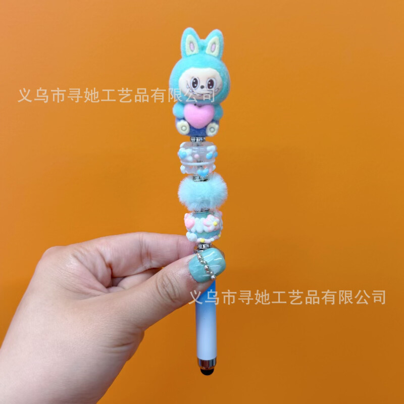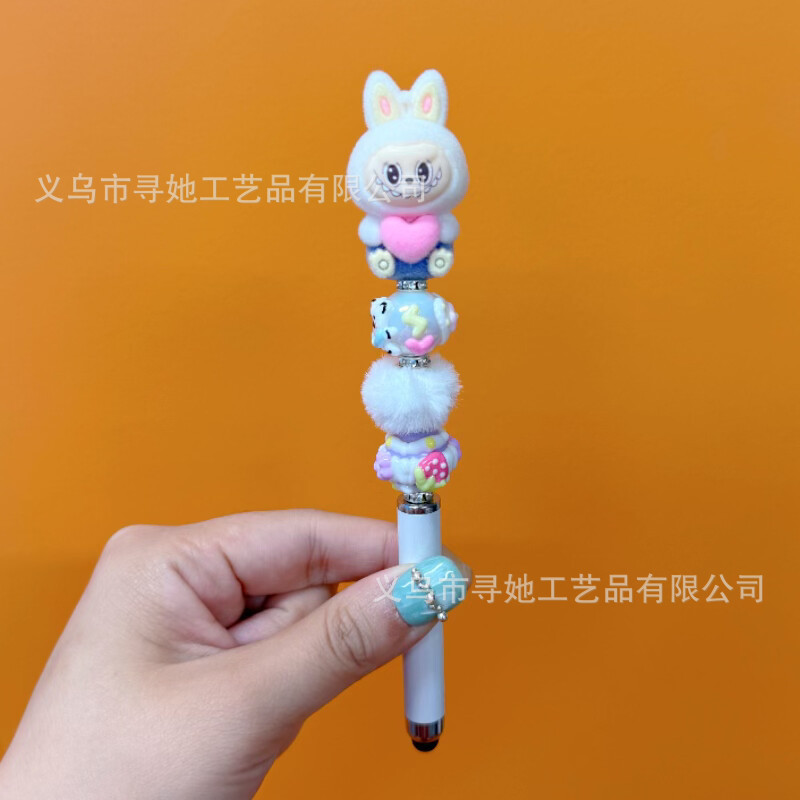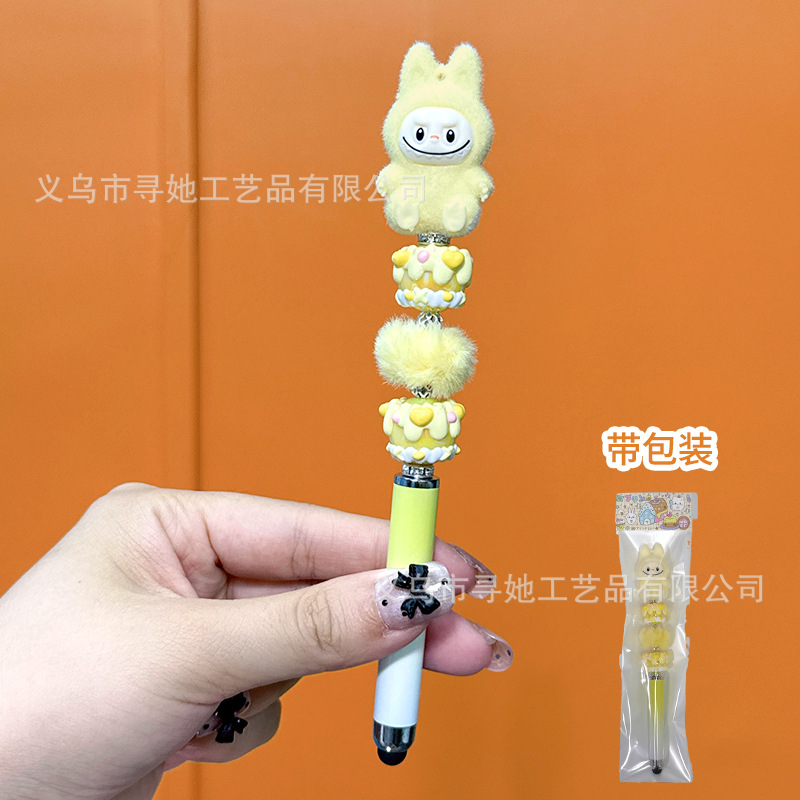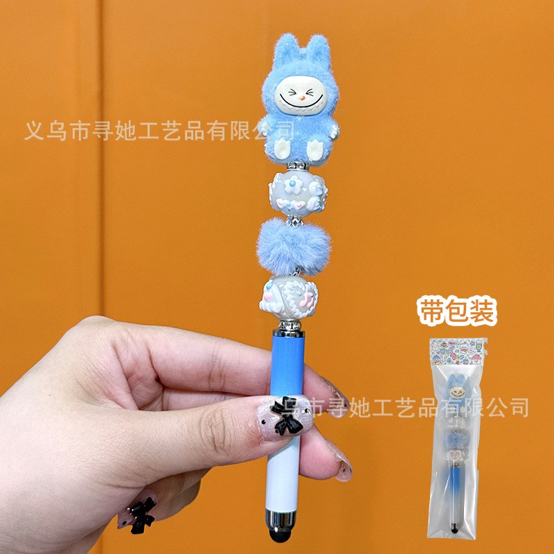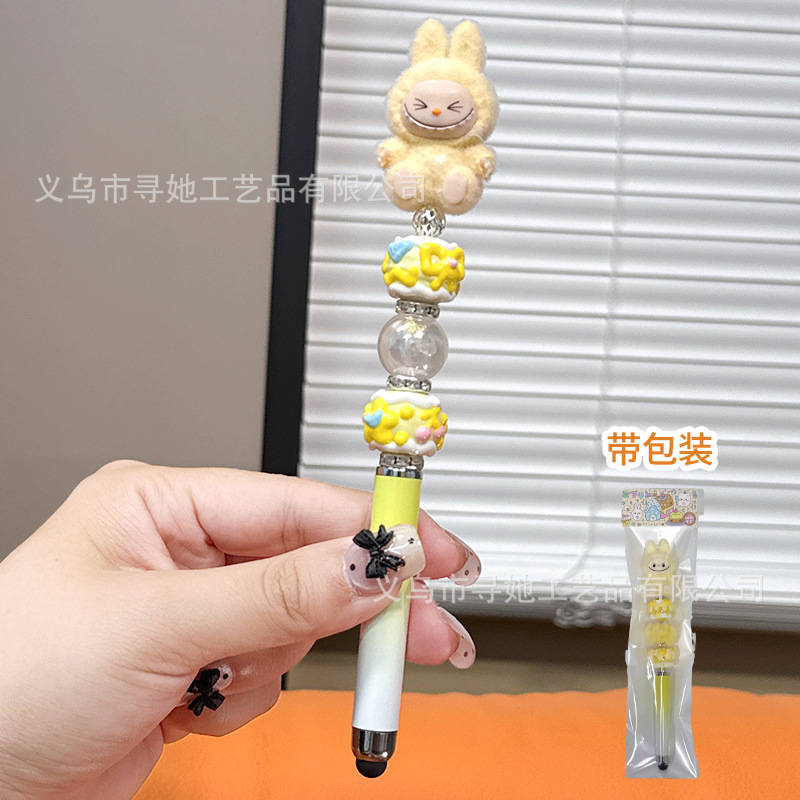 严选创意diy萌粒串珠笔手机平板触屏中性笔可爱玩偶手工学生礼品