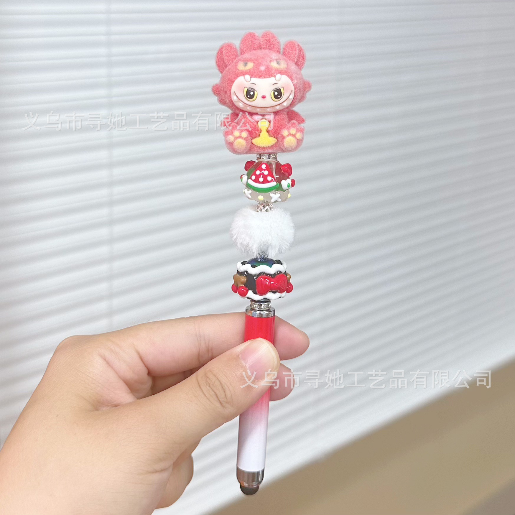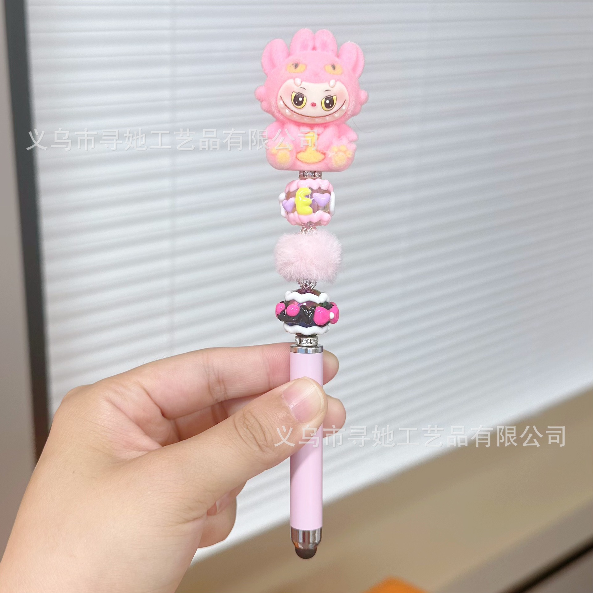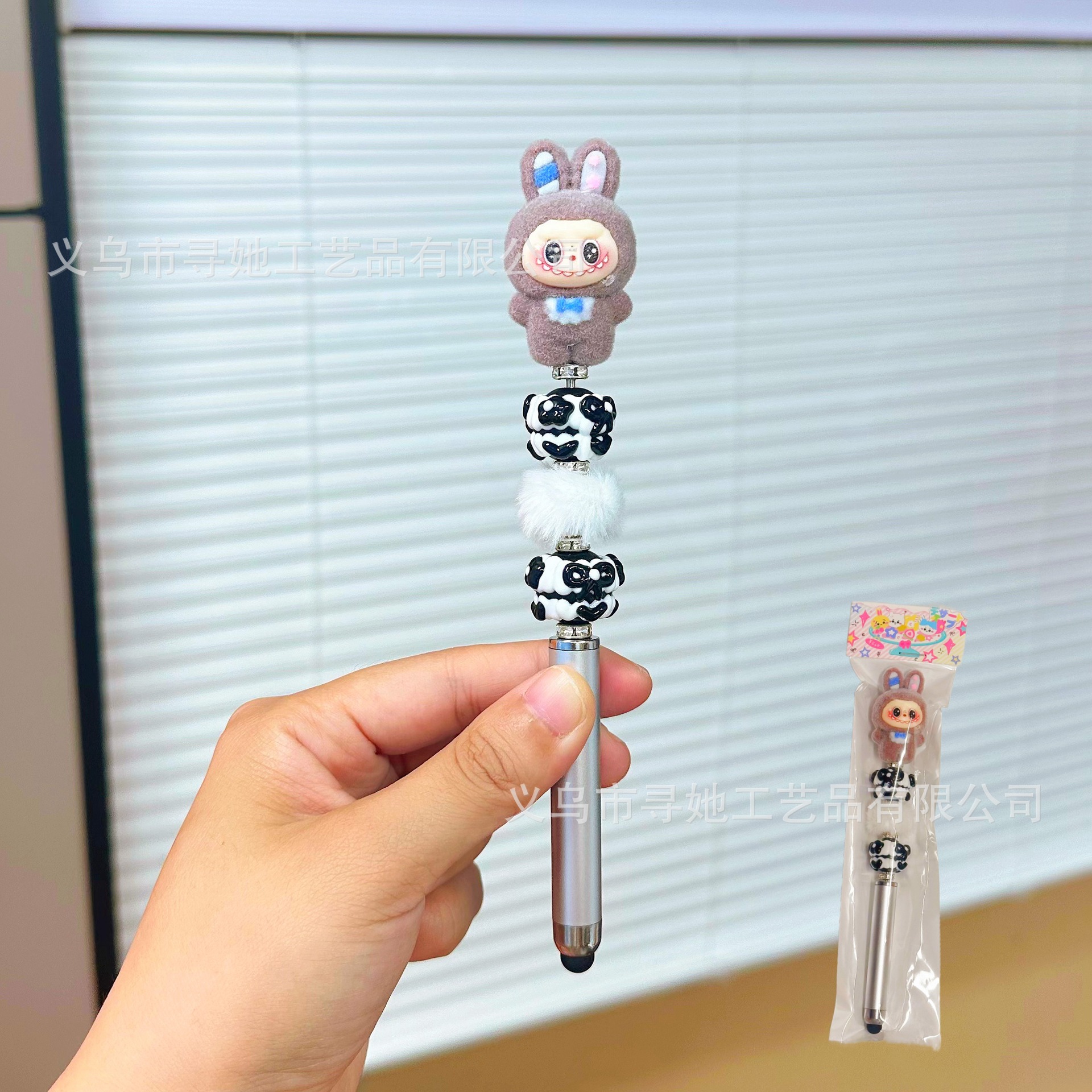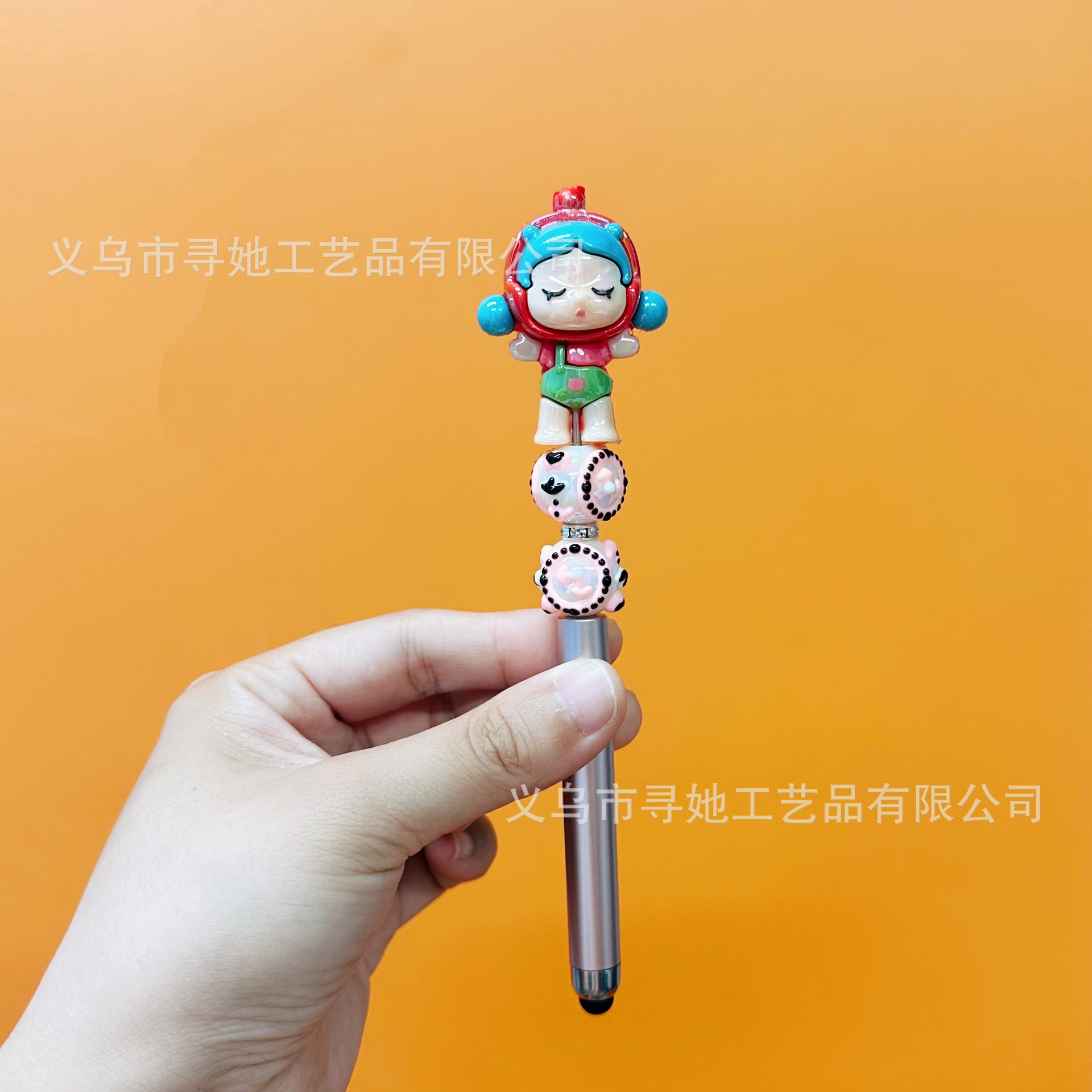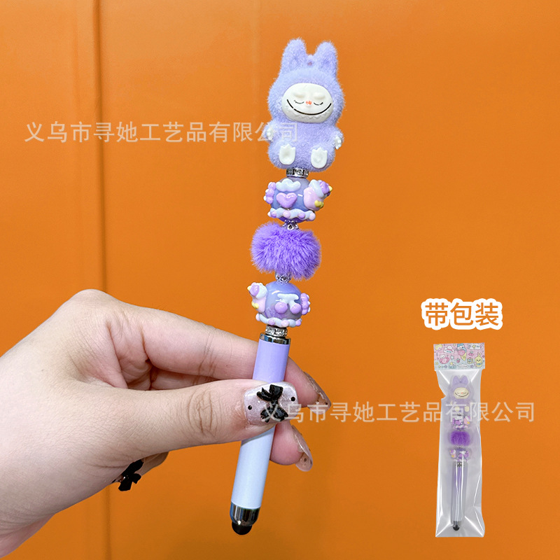 严选创意diy萌粒串珠笔手机平板触屏中性笔可爱玩偶手工学生礼品