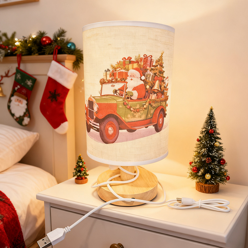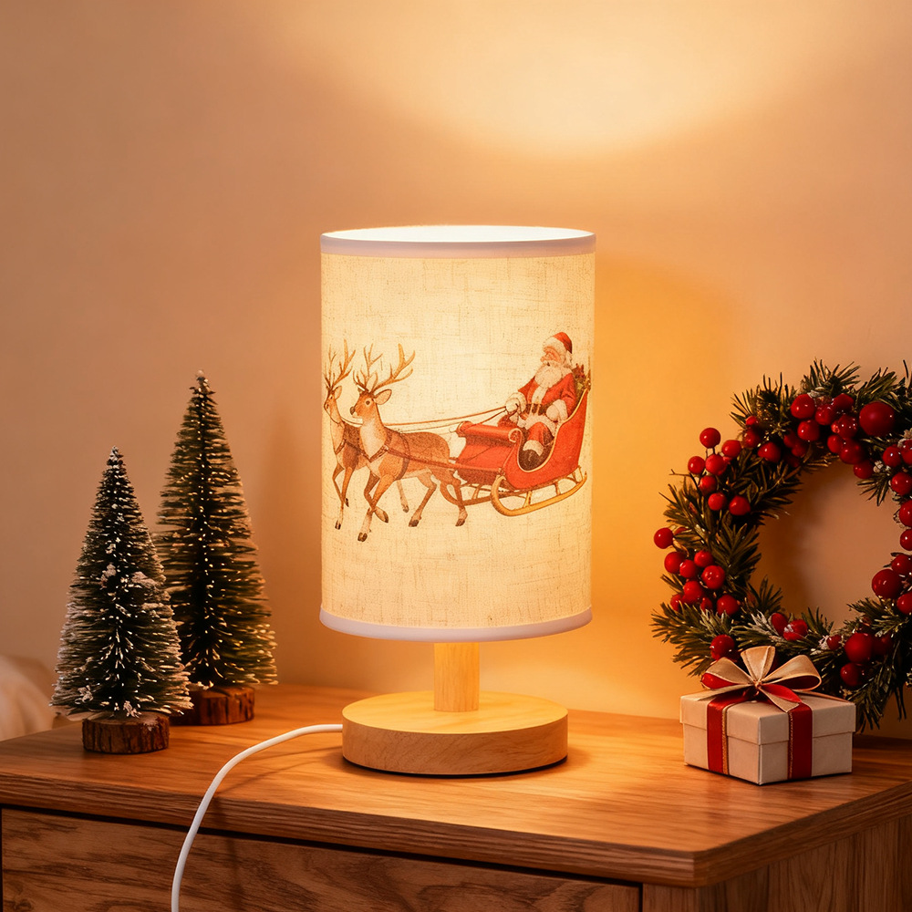 ins布艺木质底座台灯柔光护眼氛围感diy木质小夜灯木制摆台床头灯