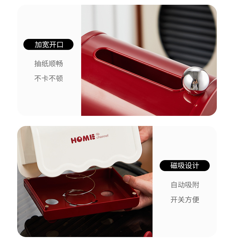 磁吸纸巾盒波浪形状抽纸盒轻奢复古卫生间纸抽盒带弹簧纸巾盒