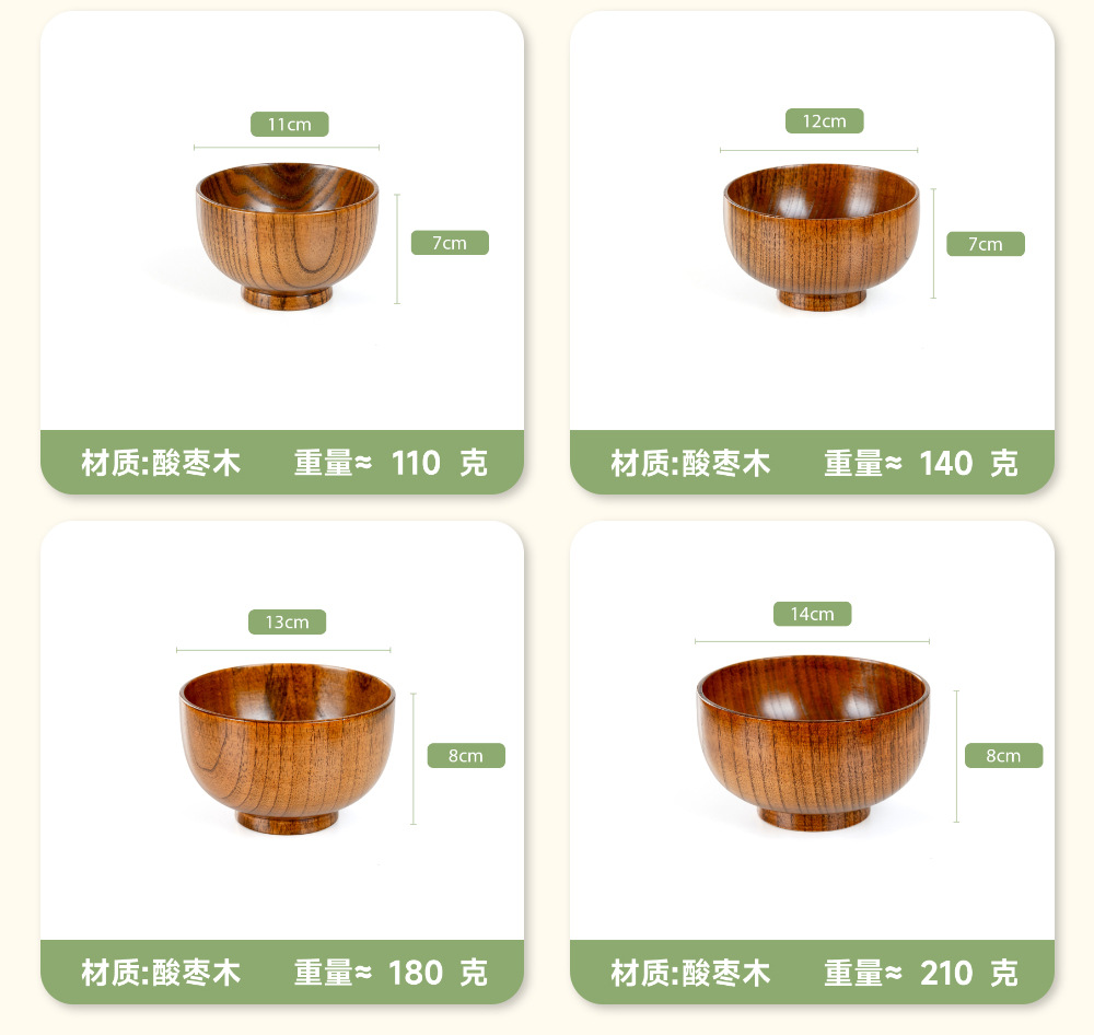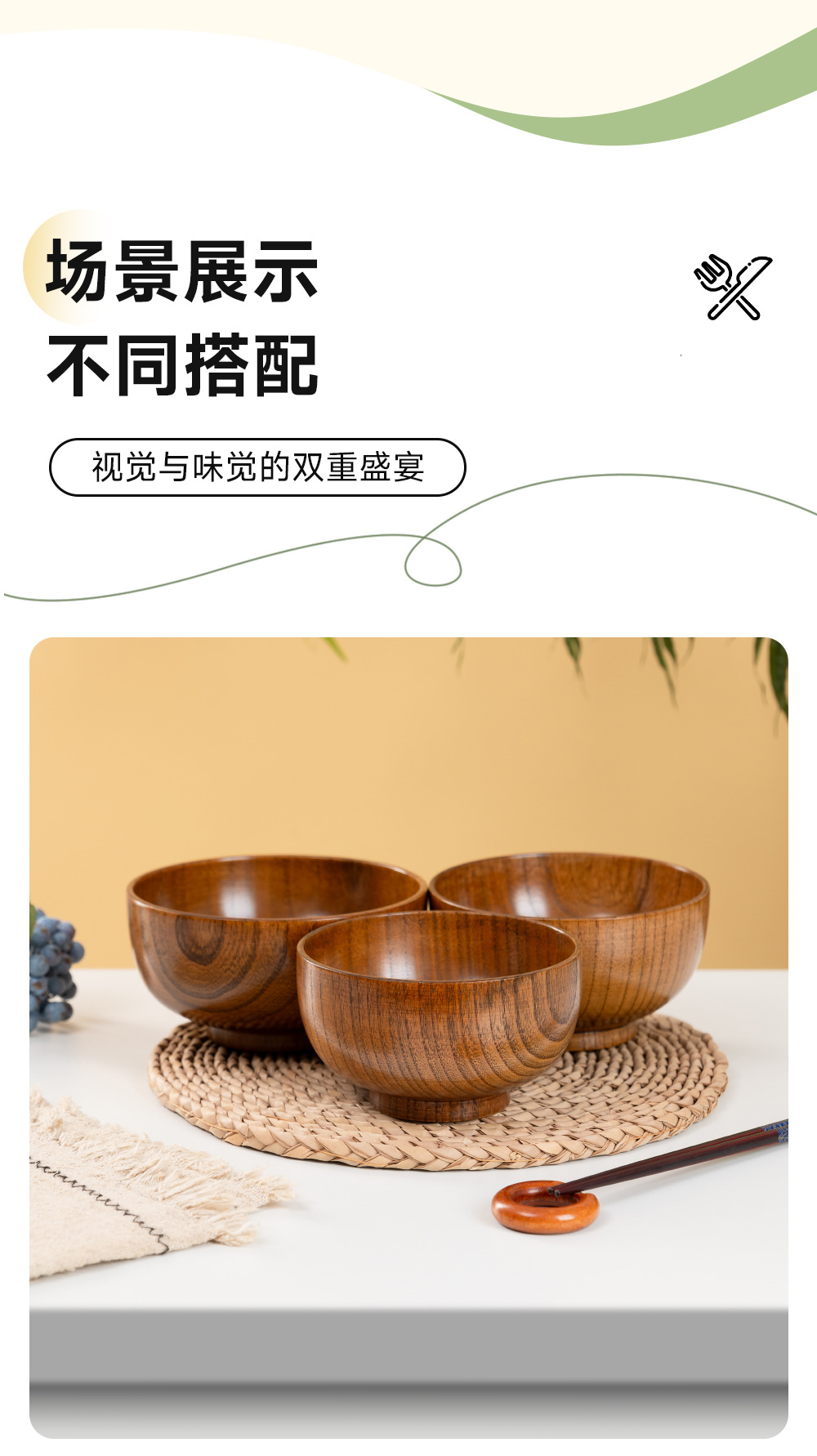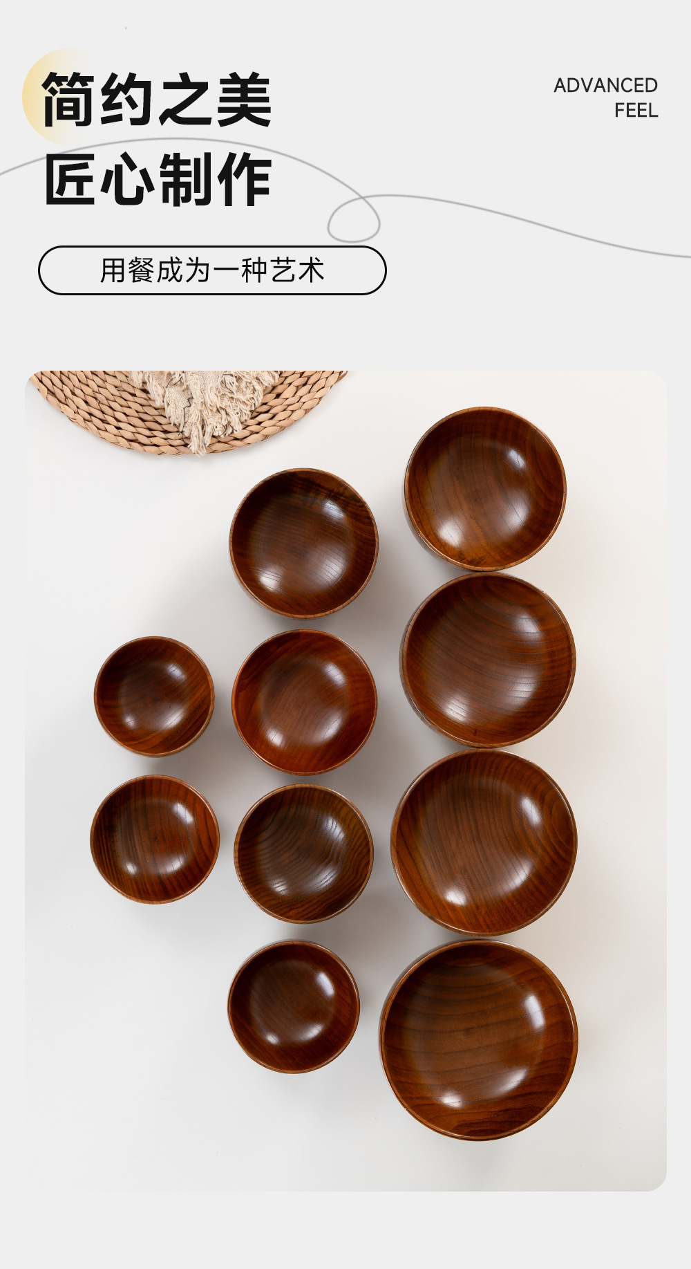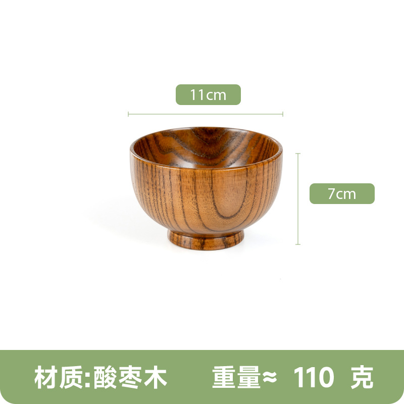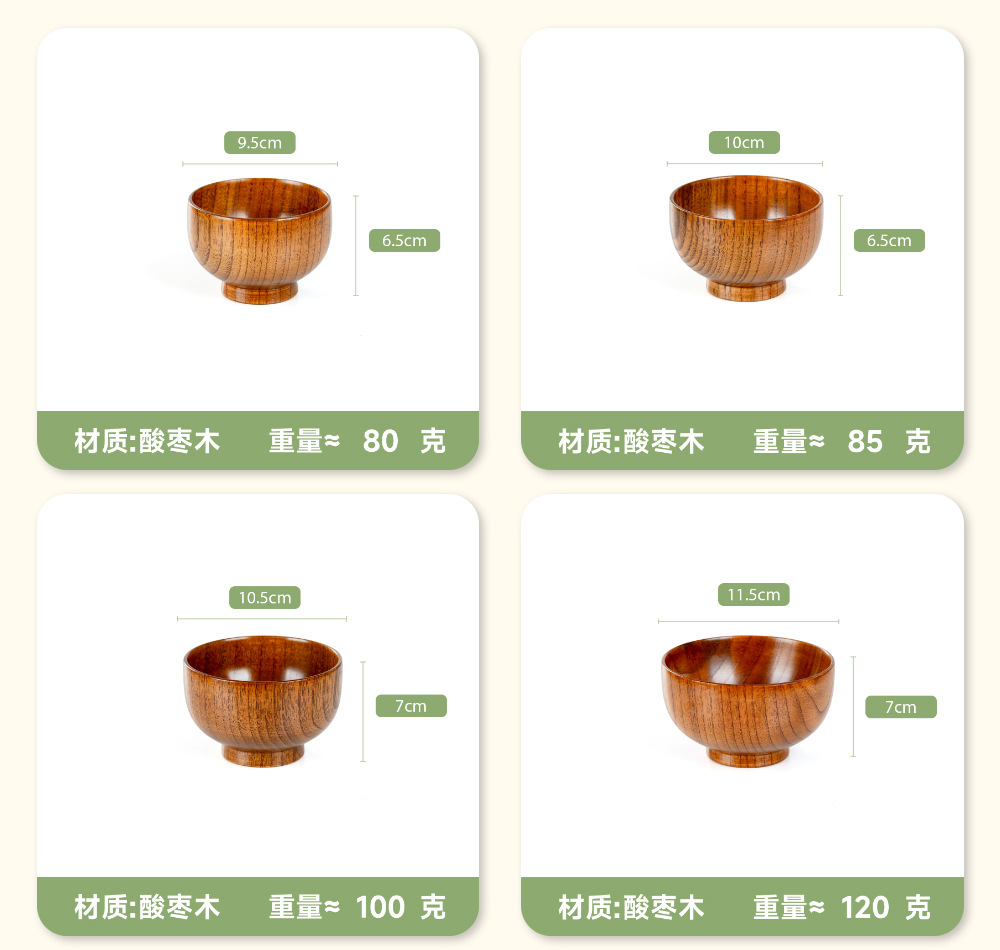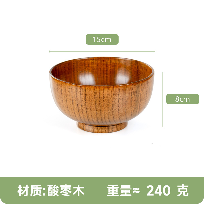 酸枣木木碗汤碗面碗饭碗家用防烫圆形碗木质沙拉碗大号木质碗