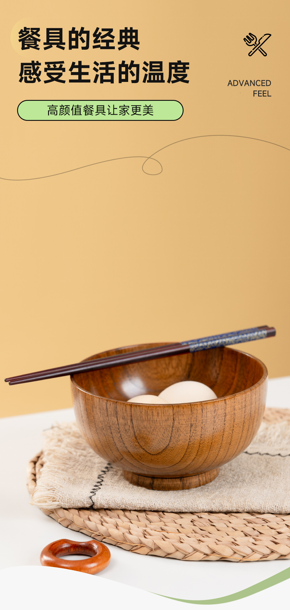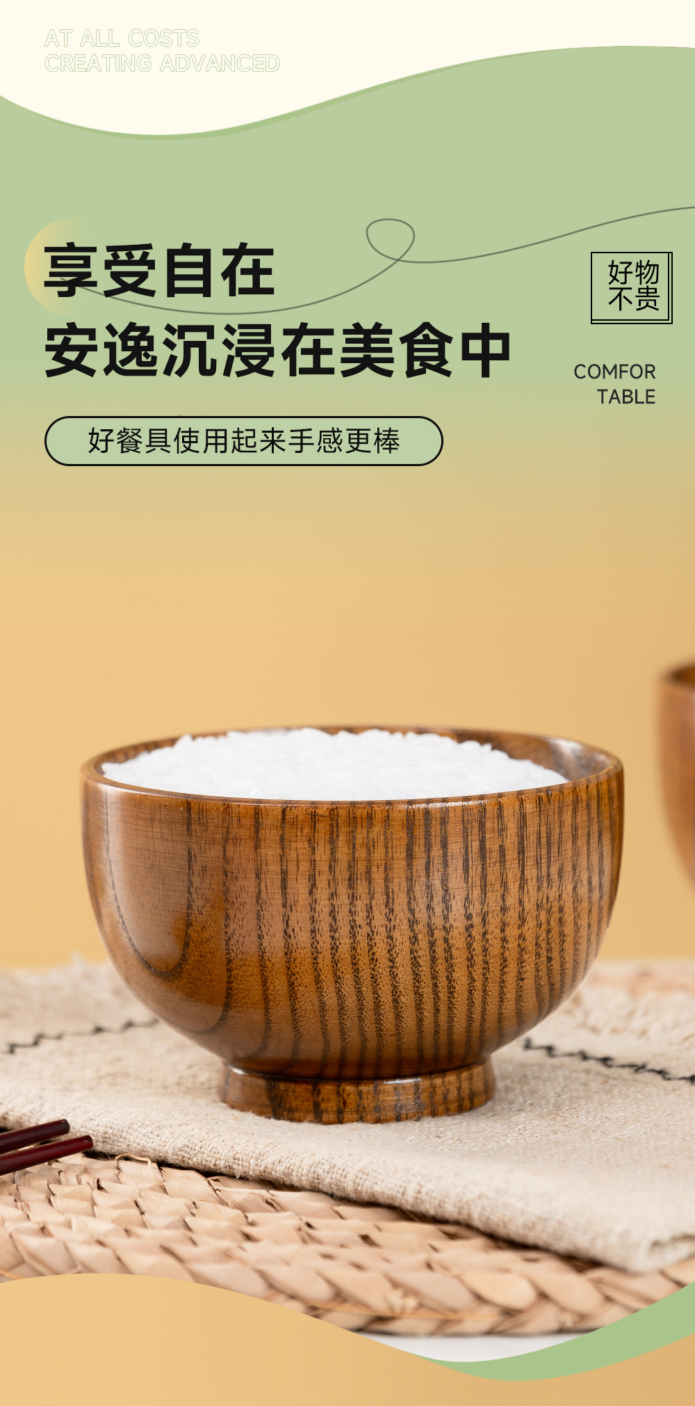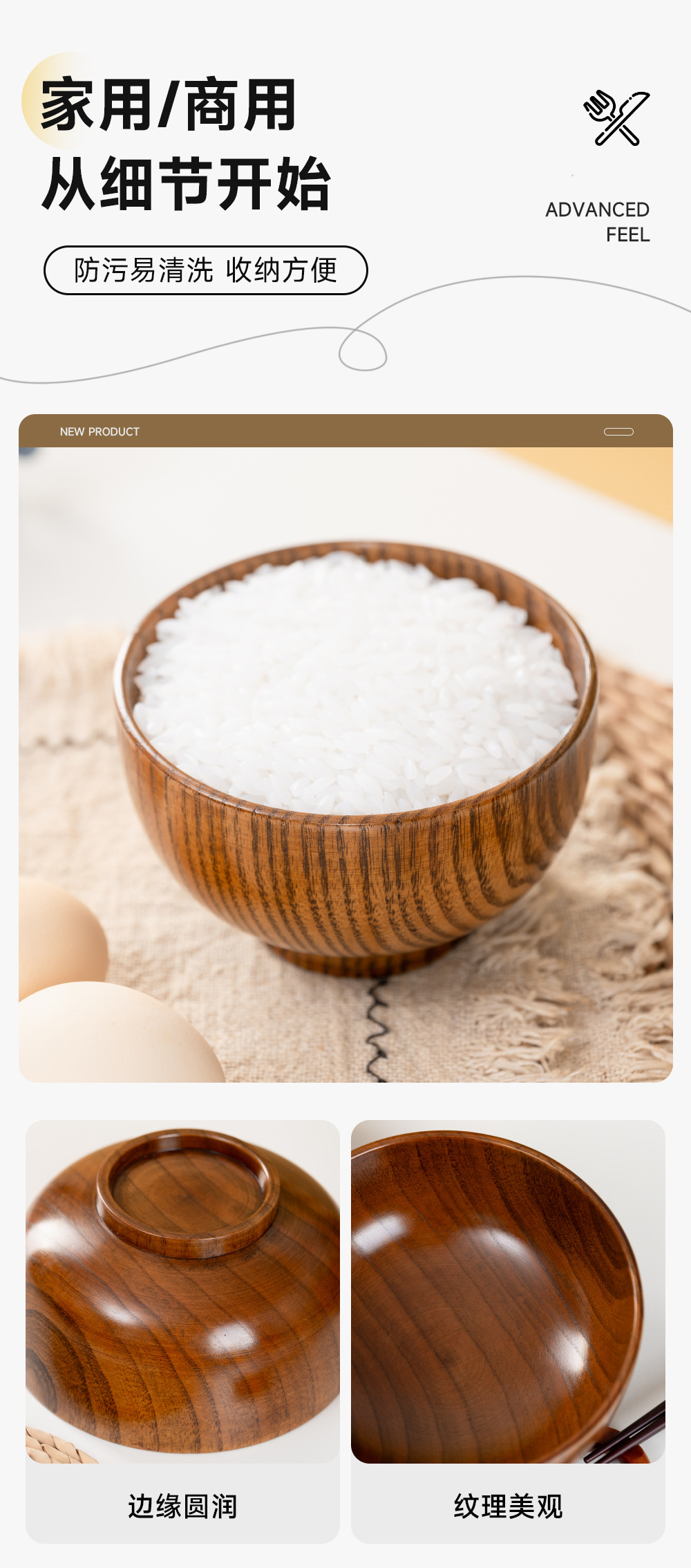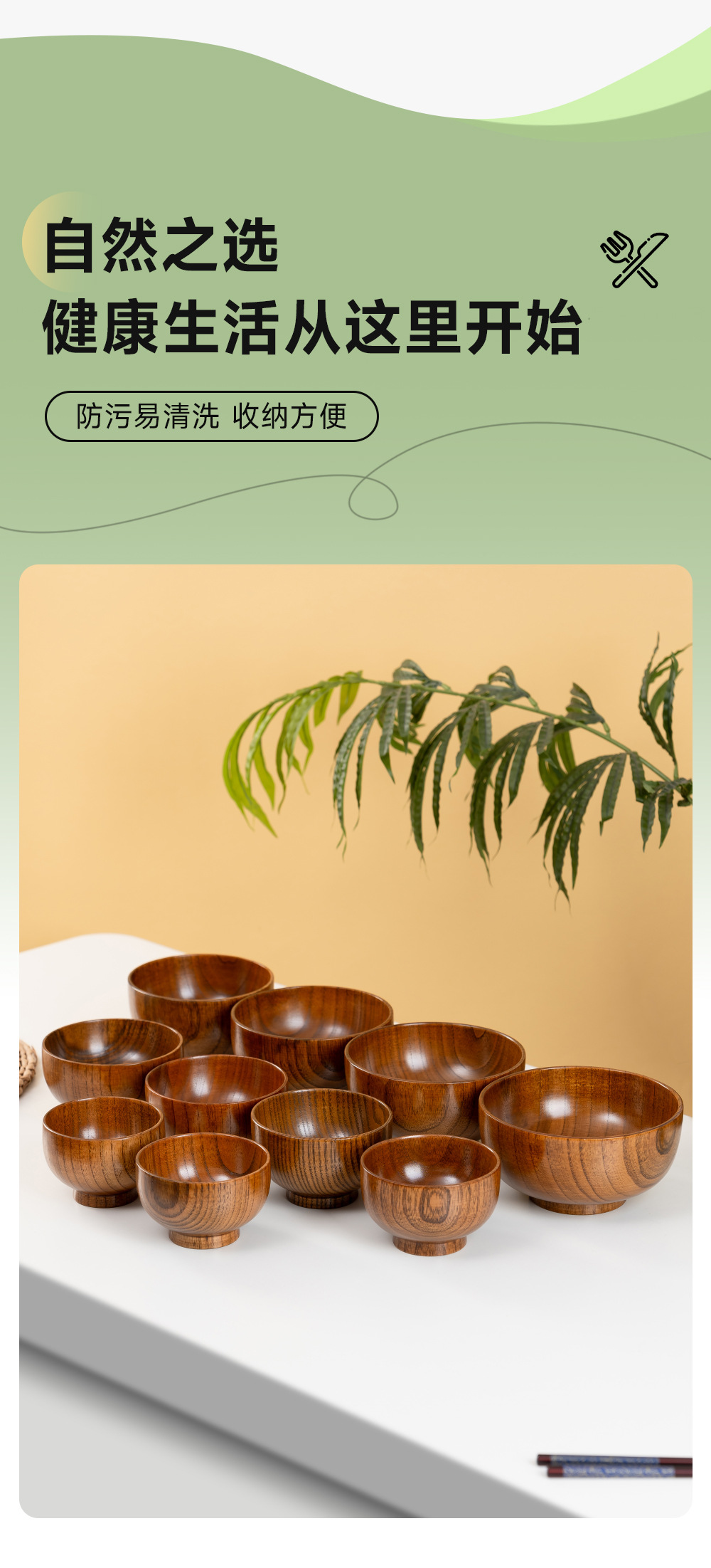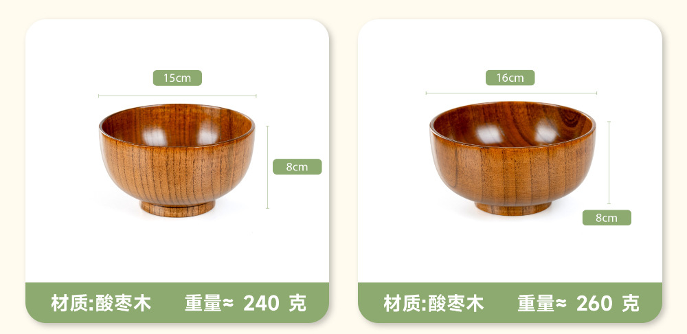 酸枣木木碗汤碗面碗饭碗家用防烫圆形碗木质沙拉碗大号木质碗