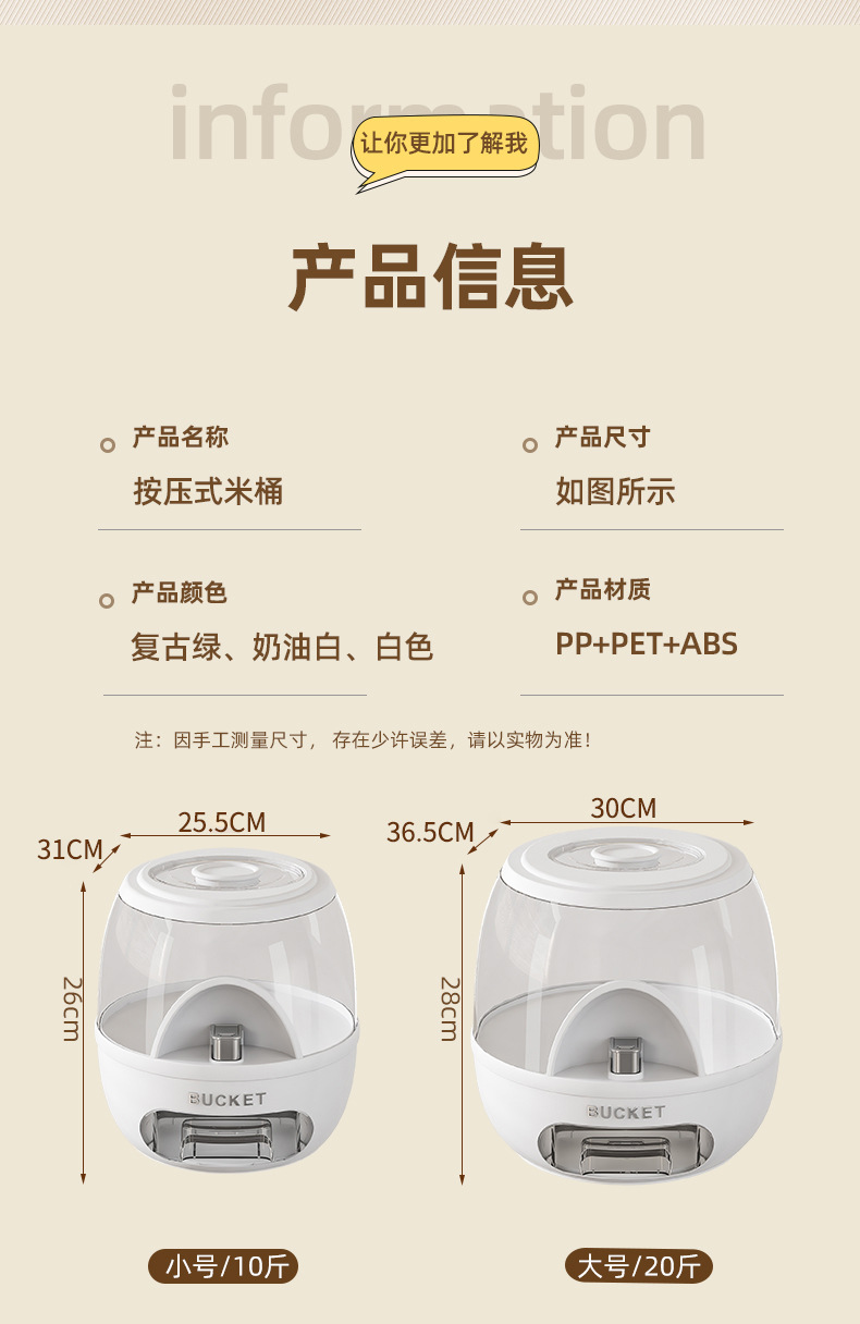 按压式家用米桶厨房防虫防潮密封储米箱米缸储存大米箱收纳盒