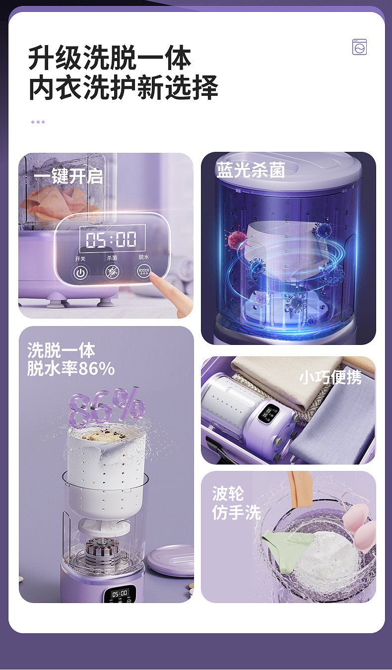 跨境新款全自动无线便携充电洗衣机内衣裤袜子网红专用迷你小洗衣