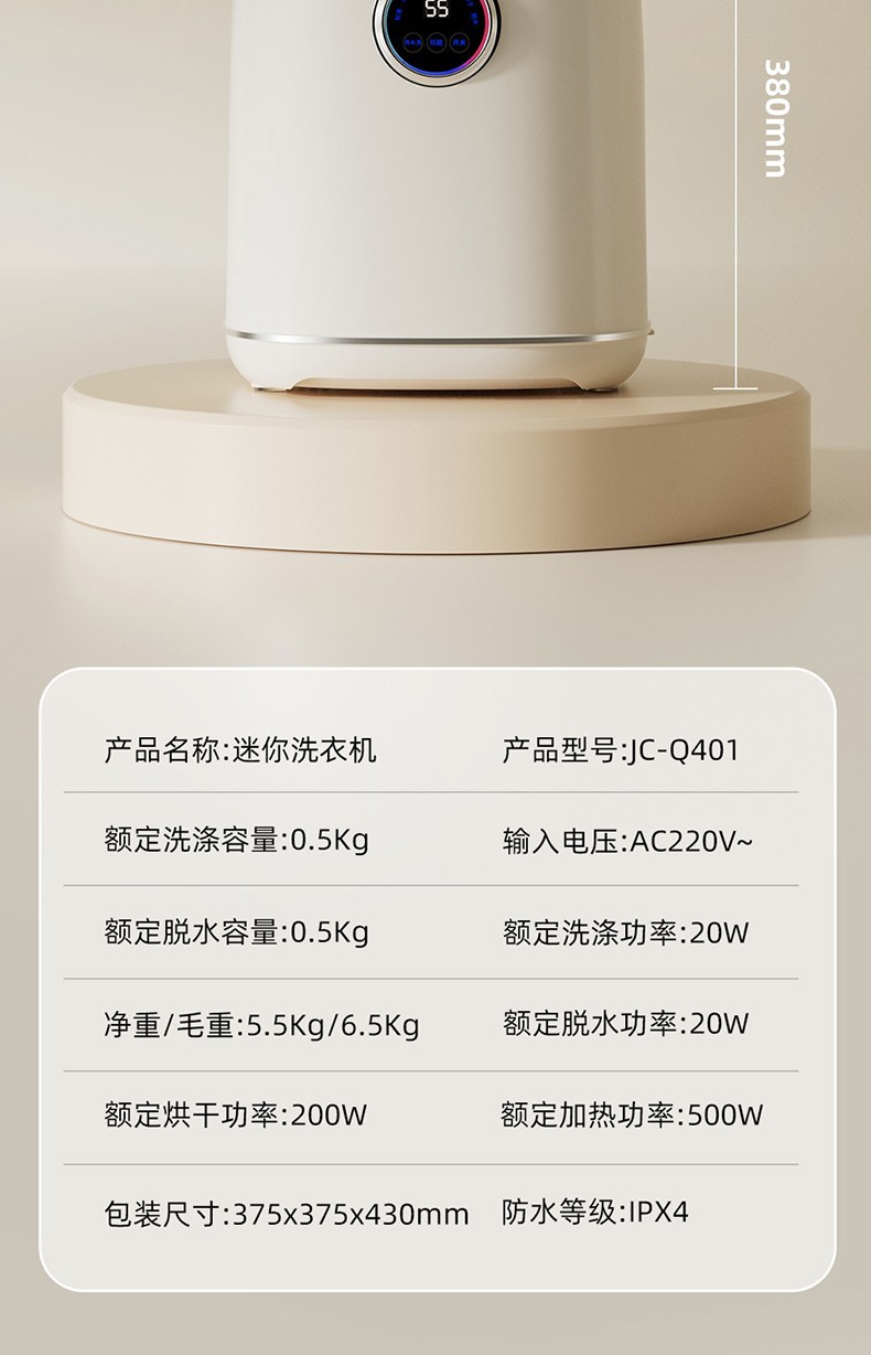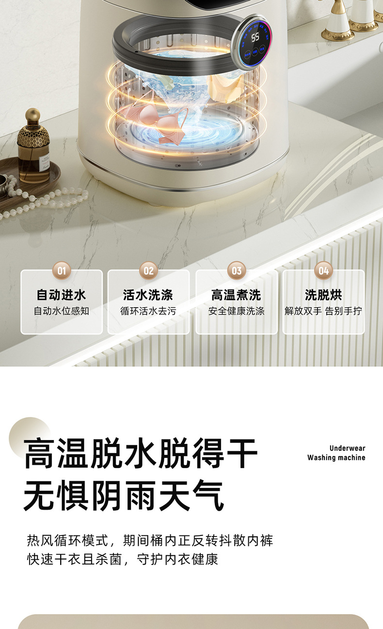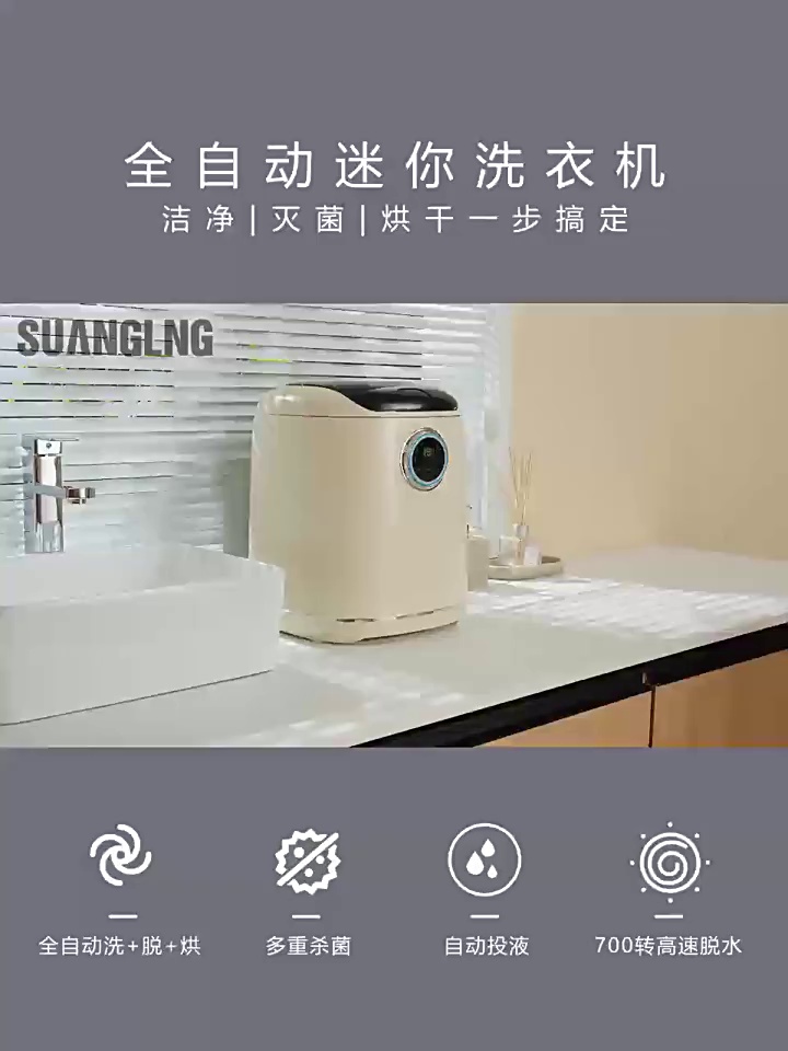 跨境小型洗衣机家用全自动内衣内裤高温煮洗洗脱烘一体袜子清洗机