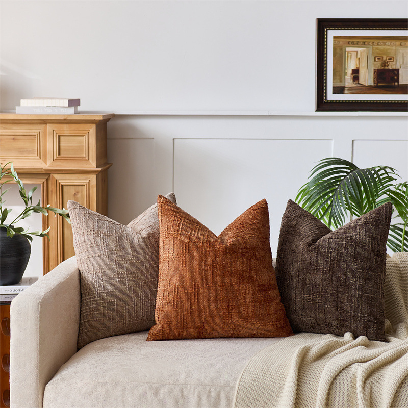 跨境北欧ins竹节雪尼尔家居抱枕 客厅沙发卧室抱枕靠垫靠背装饰