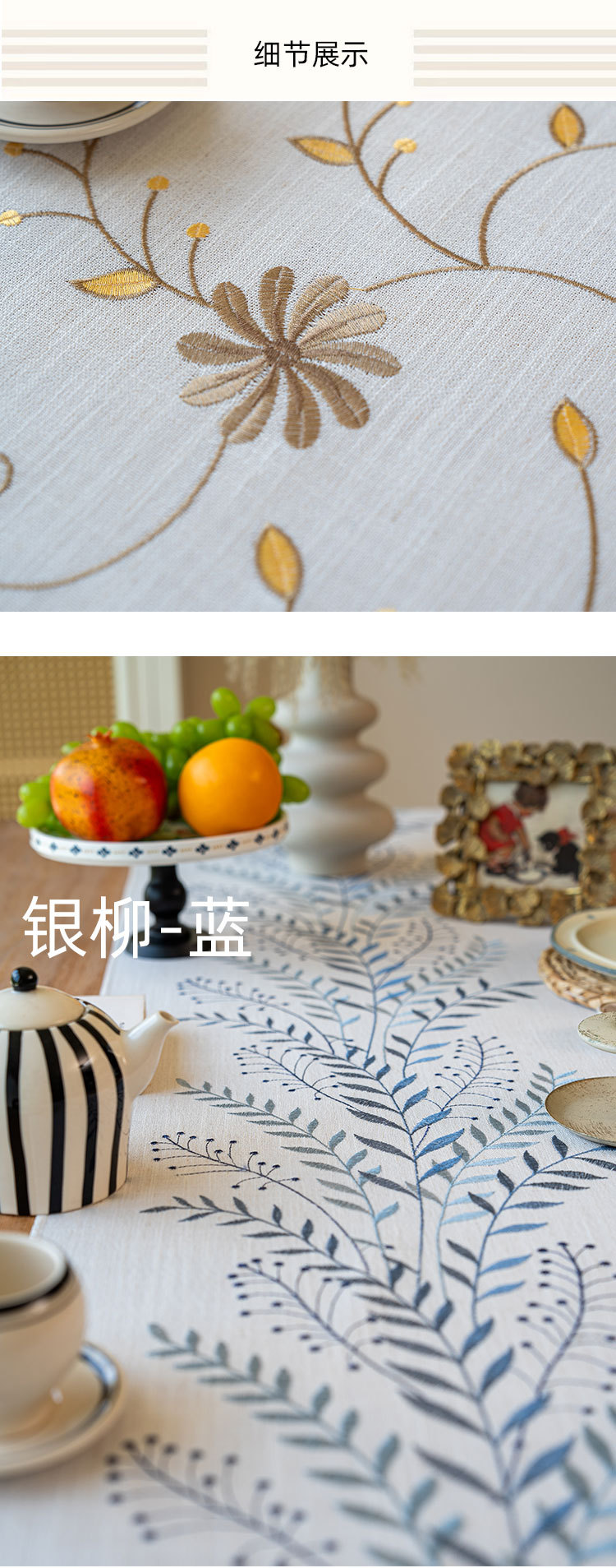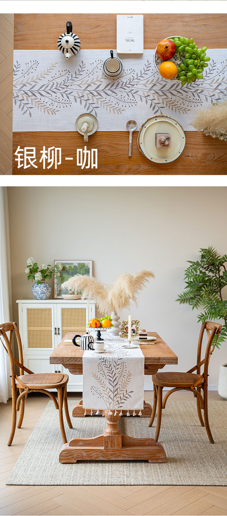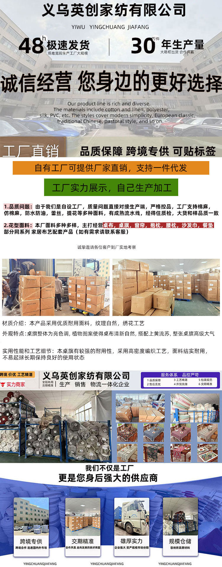 北欧新款桌旗跨境专供植物花卉绣花长条布艺流苏家用茶几桌垫批发