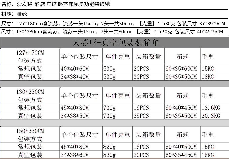 | 130x230CM (含流苏) | USD $6.67 | 3630 bed available |