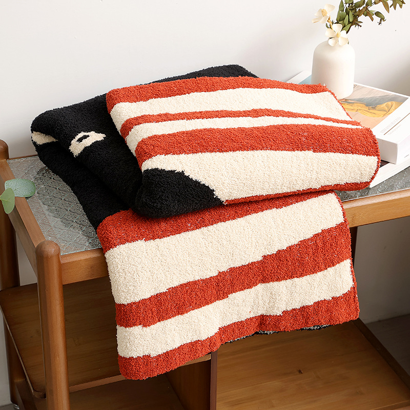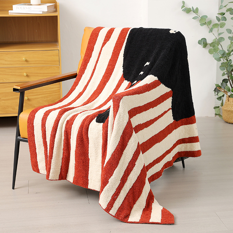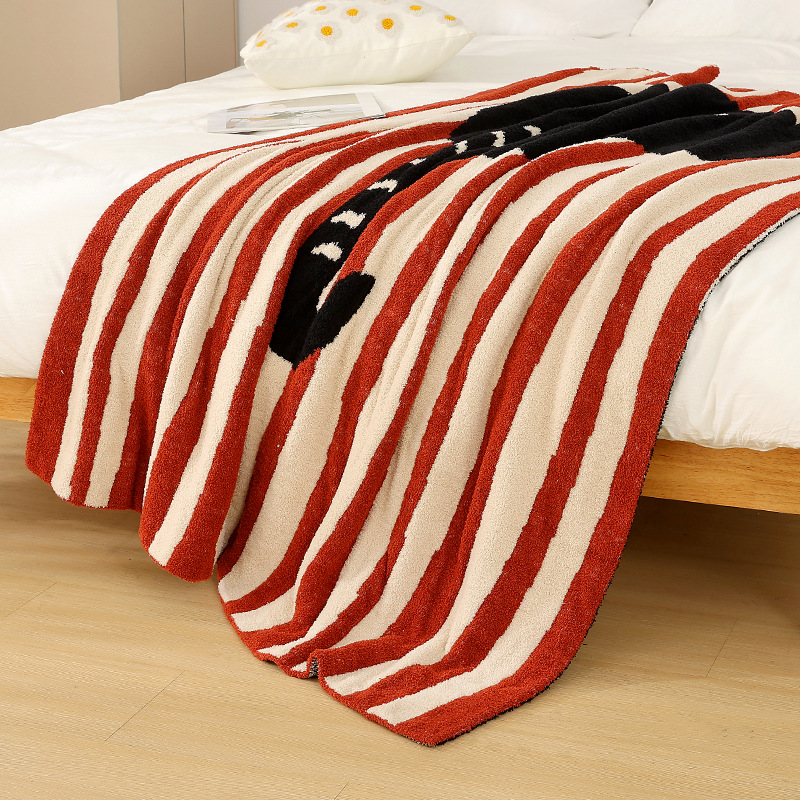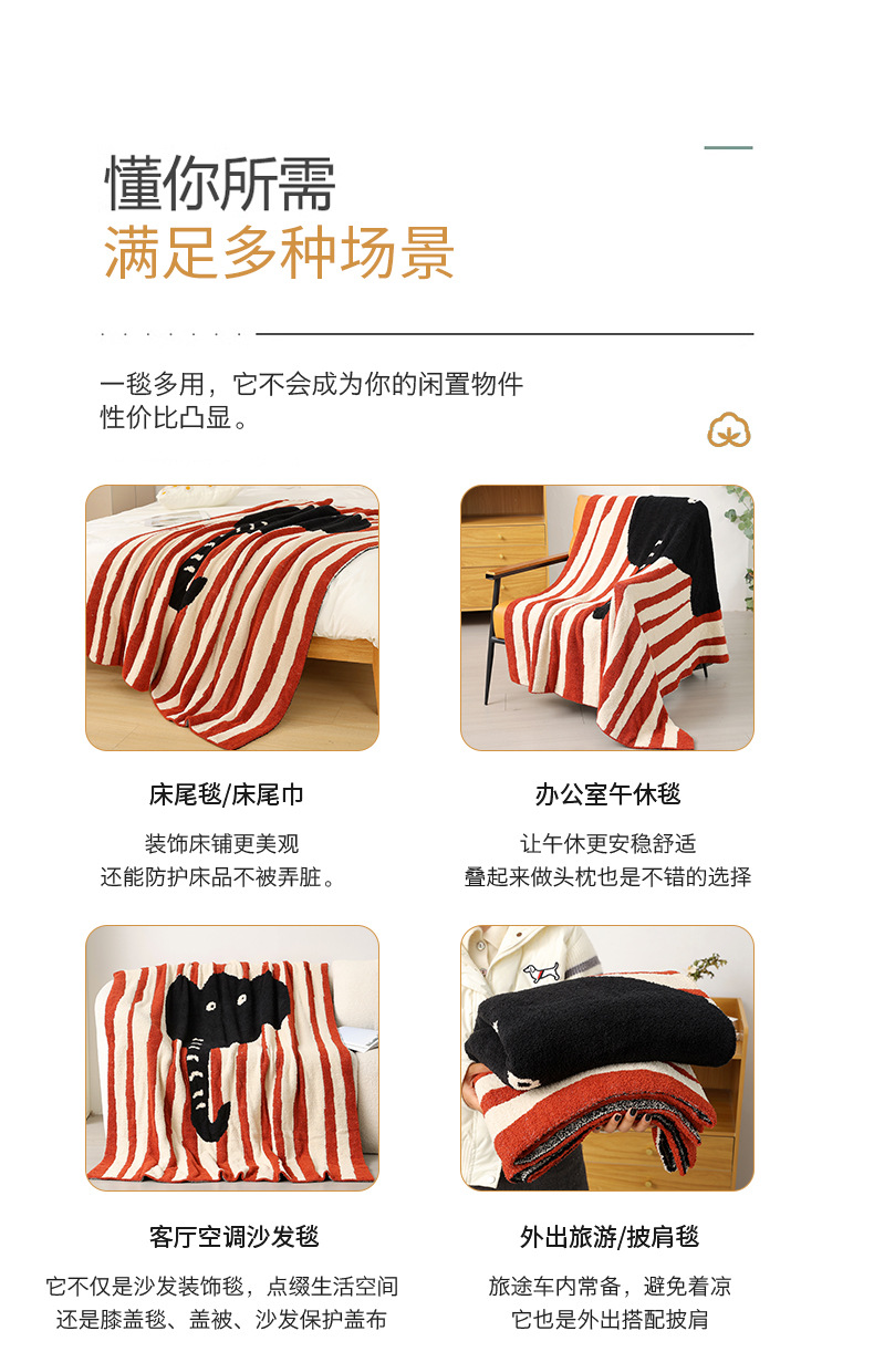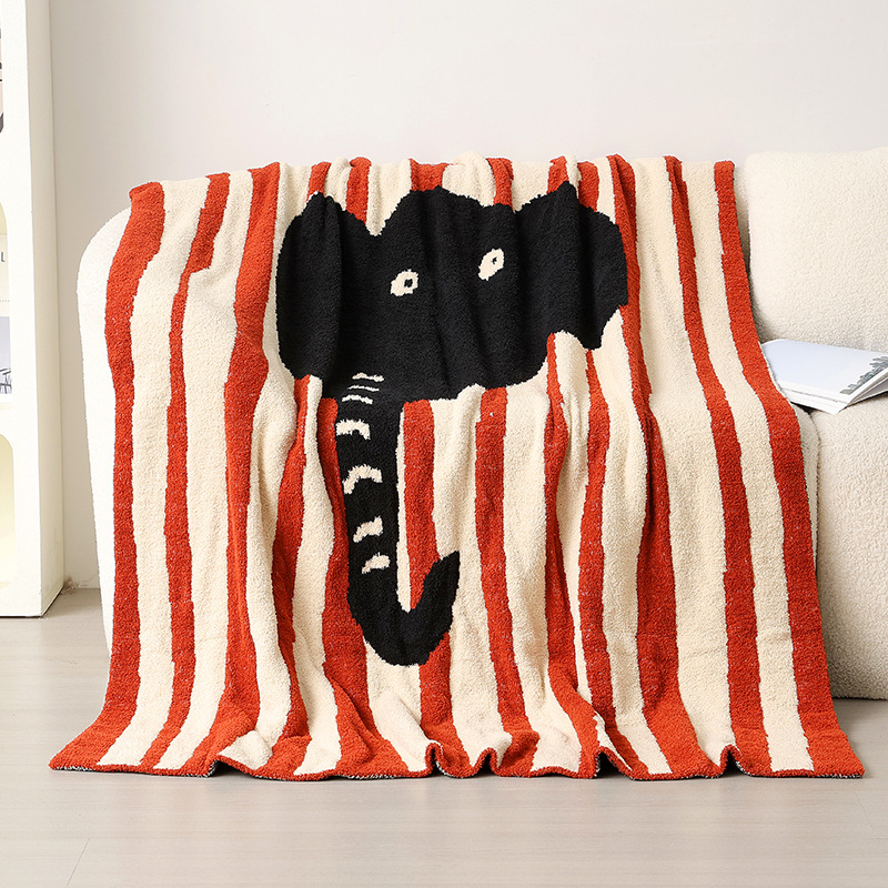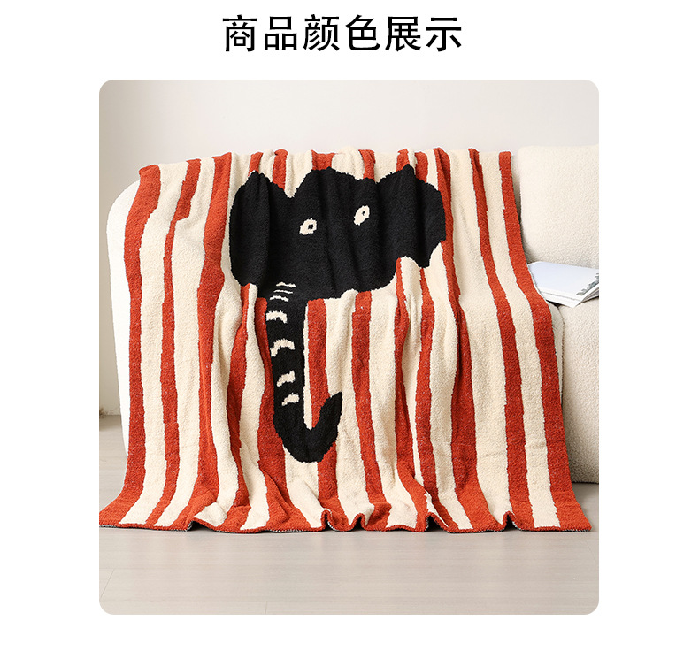 定制简约家用法斗大象卡通加厚半边绒针织毛毯沙发盖毯披肩毯野餐
