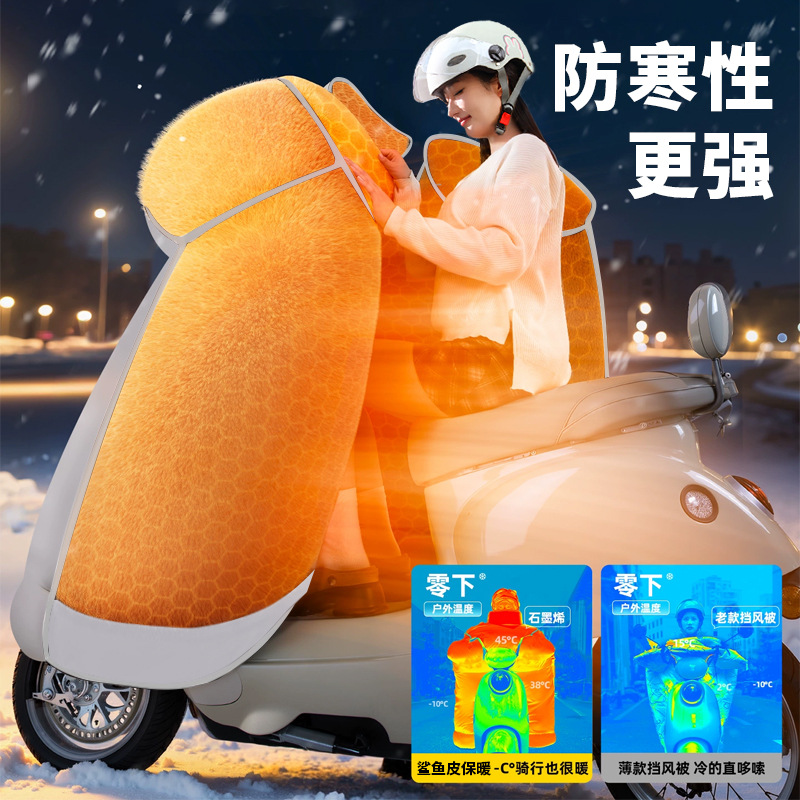 电动车挡风被冬季鲨鱼皮防风被加绒加厚电动车挡风罩电瓶车档风被