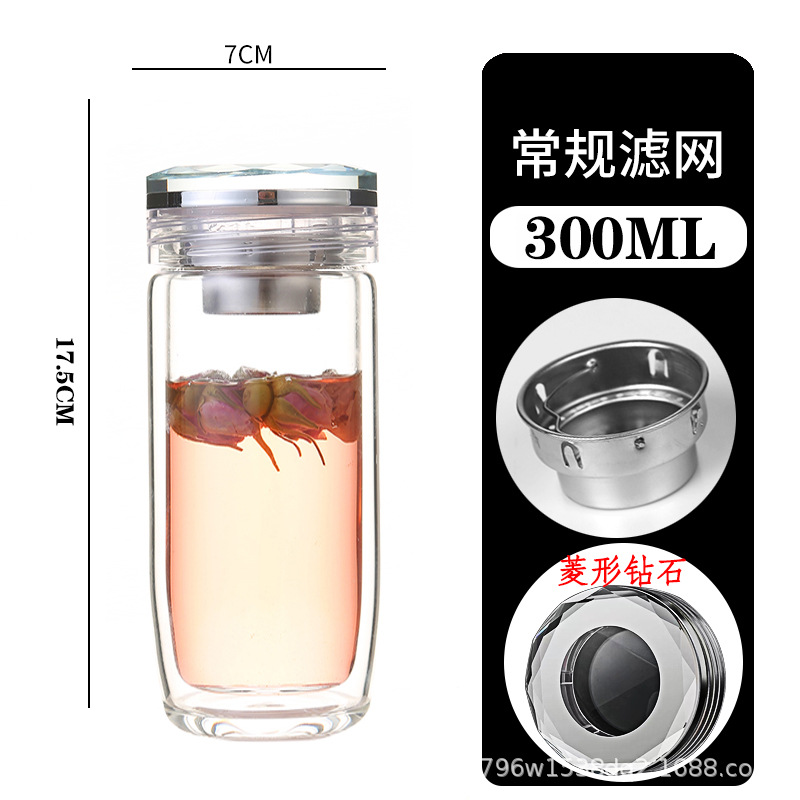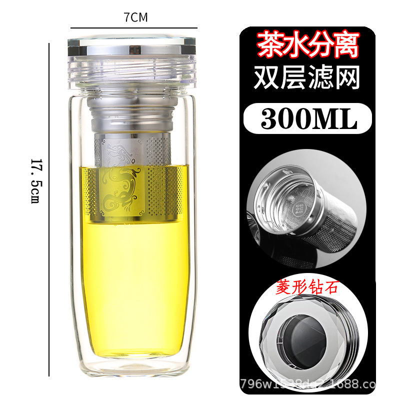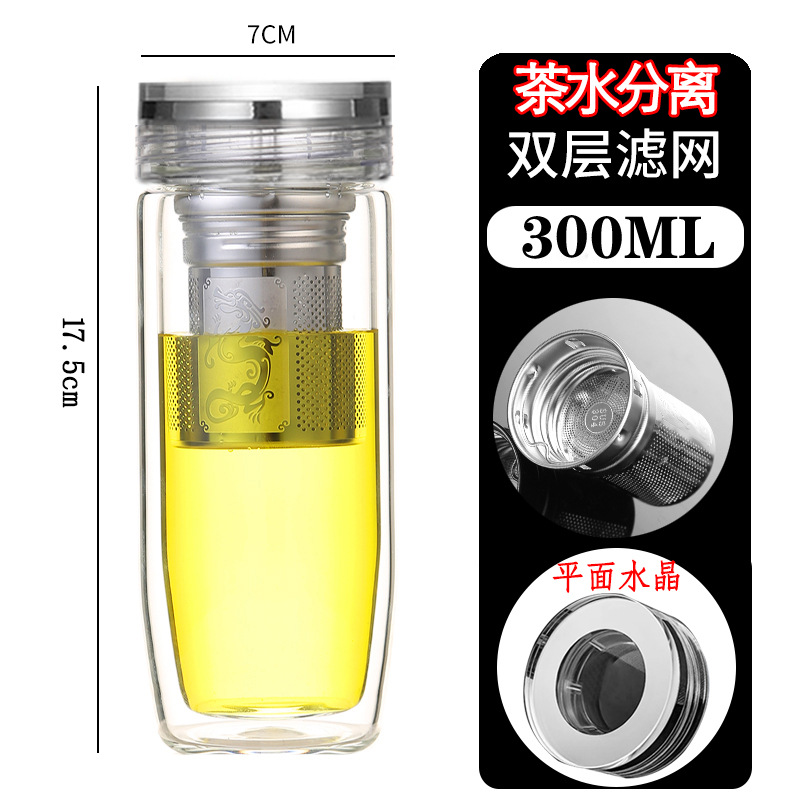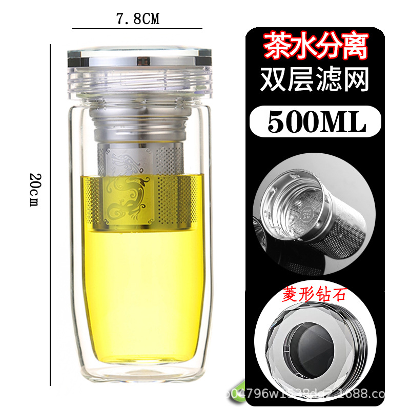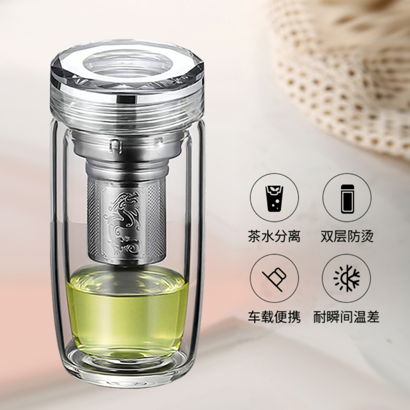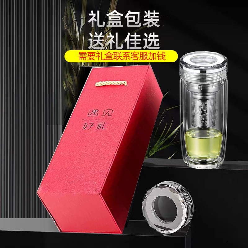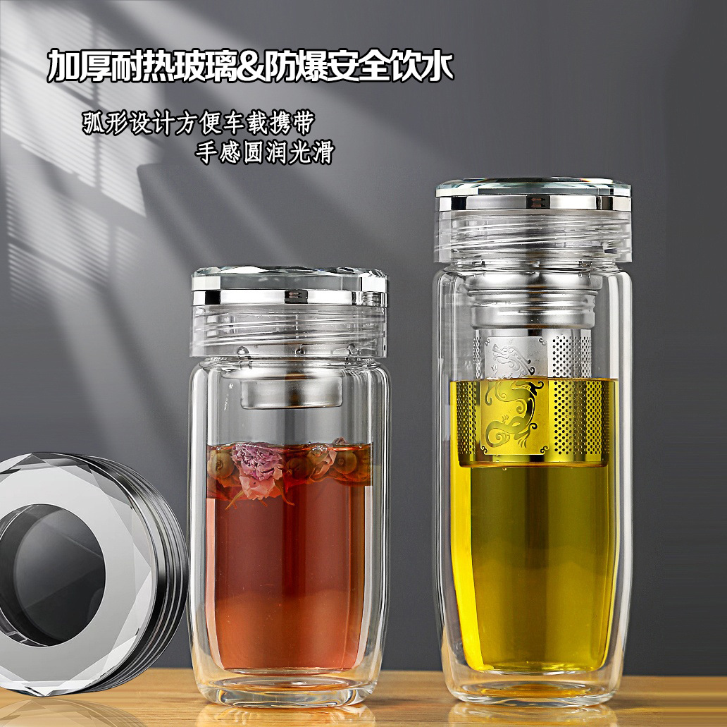 玻璃杯双层加厚隔热茶杯子男女士提绳便携口袋杯水杯水晶茶水分离