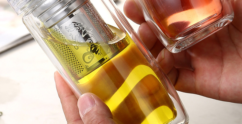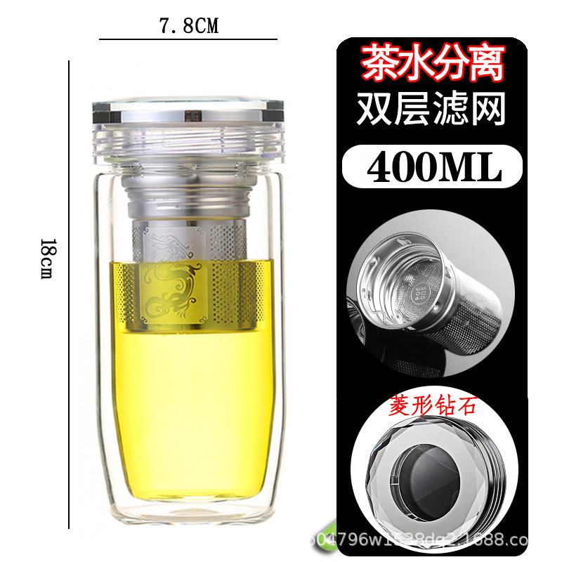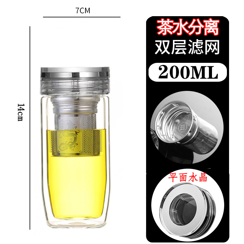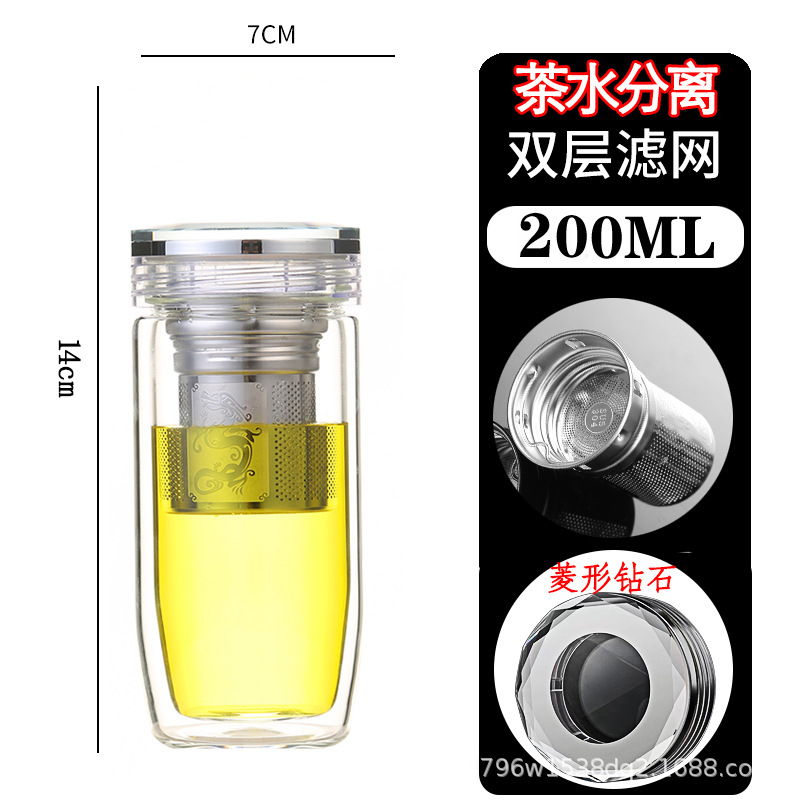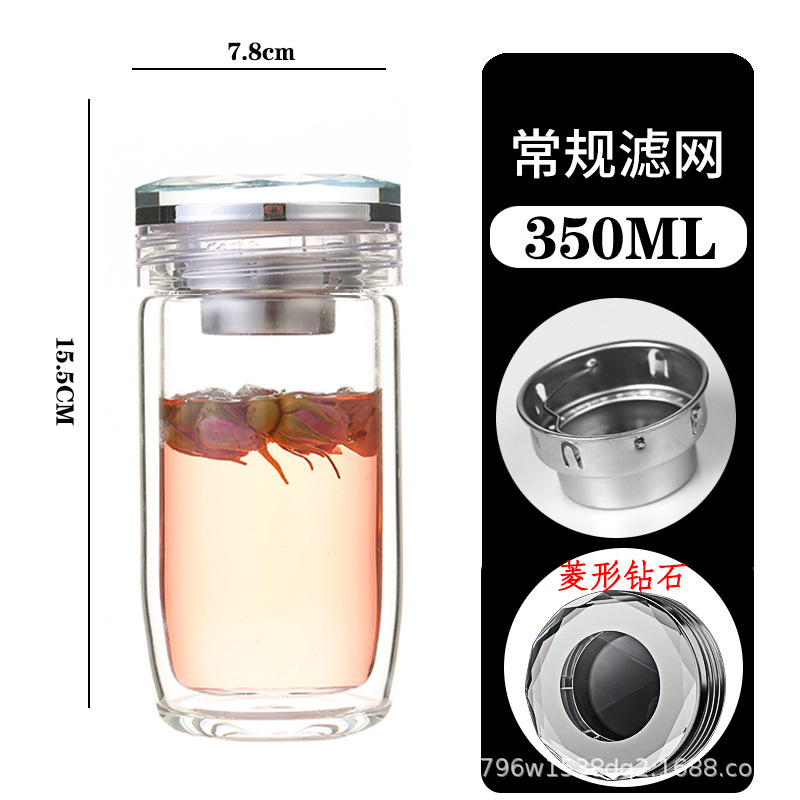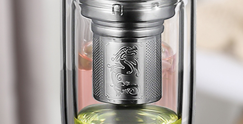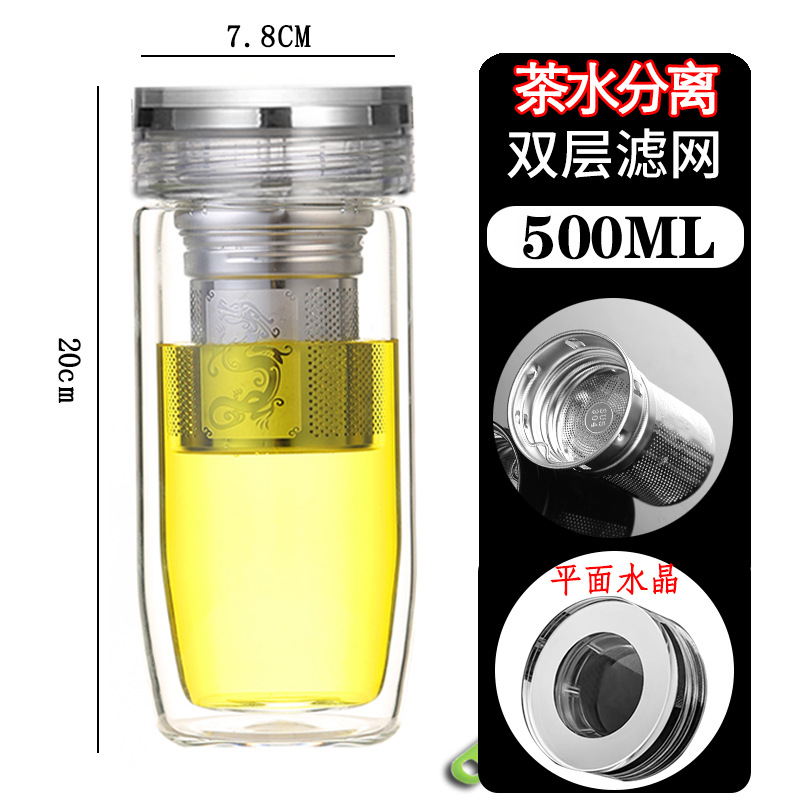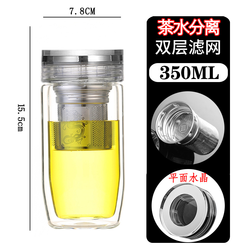 玻璃杯双层加厚隔热茶杯子男女士提绳便携口袋杯水杯水晶茶水分离