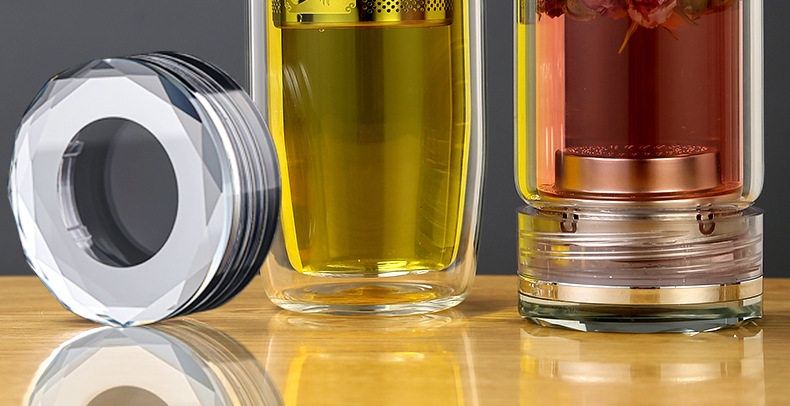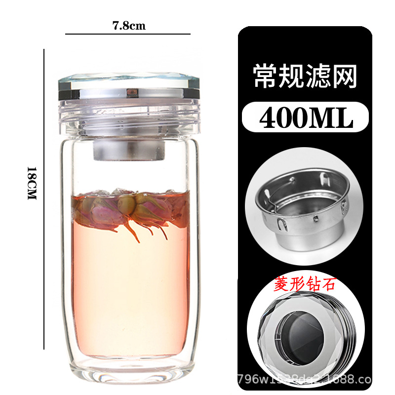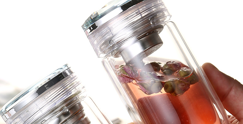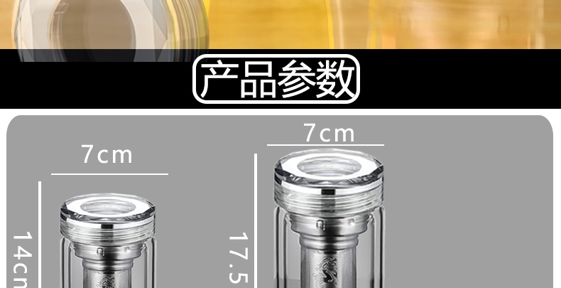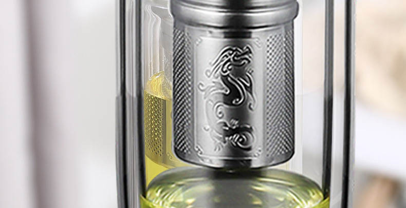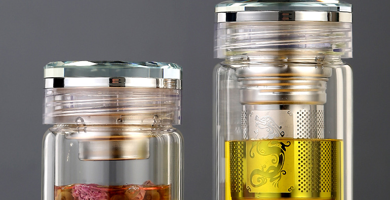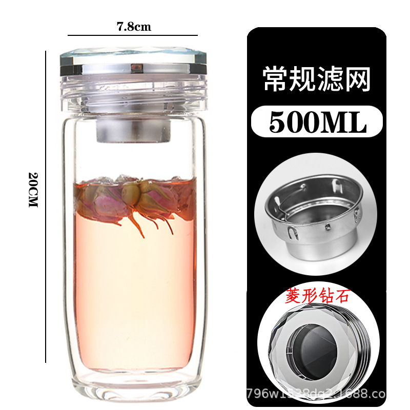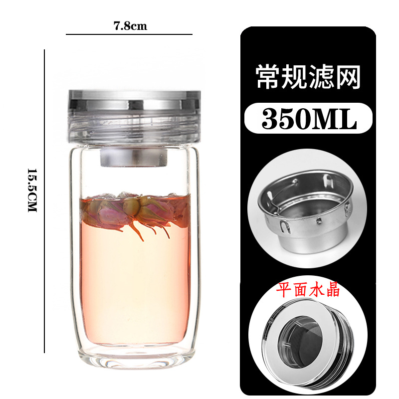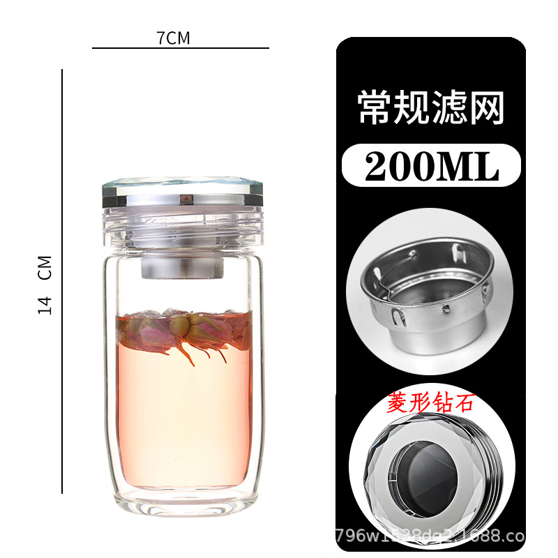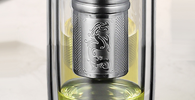 玻璃杯双层加厚隔热茶杯子男女士提绳便携口袋杯水杯水晶茶水分离
