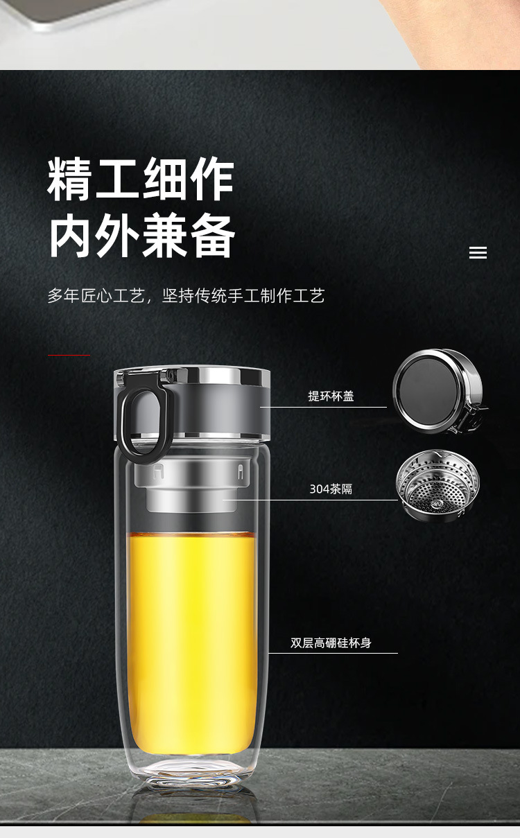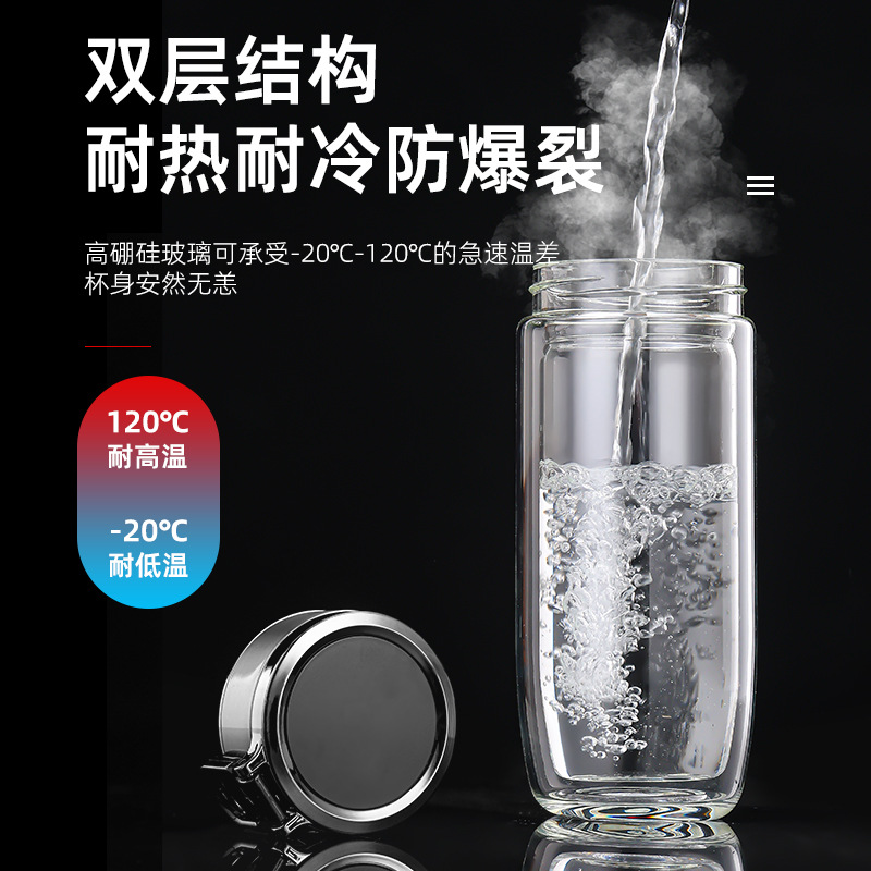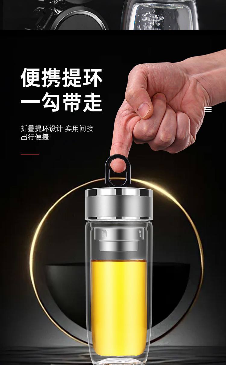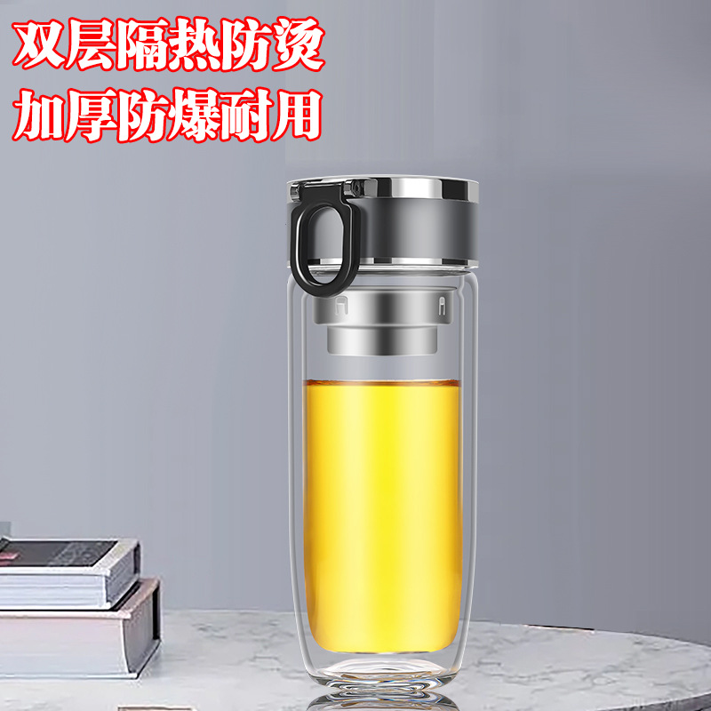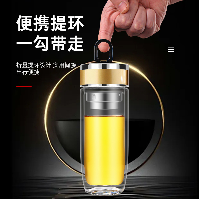 玻璃杯高档双层耐高温便携提环隔热高硼硅车载鹅蛋水杯子代发批发