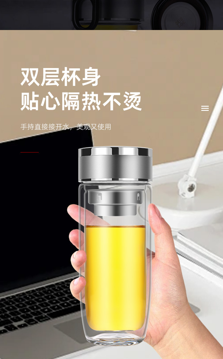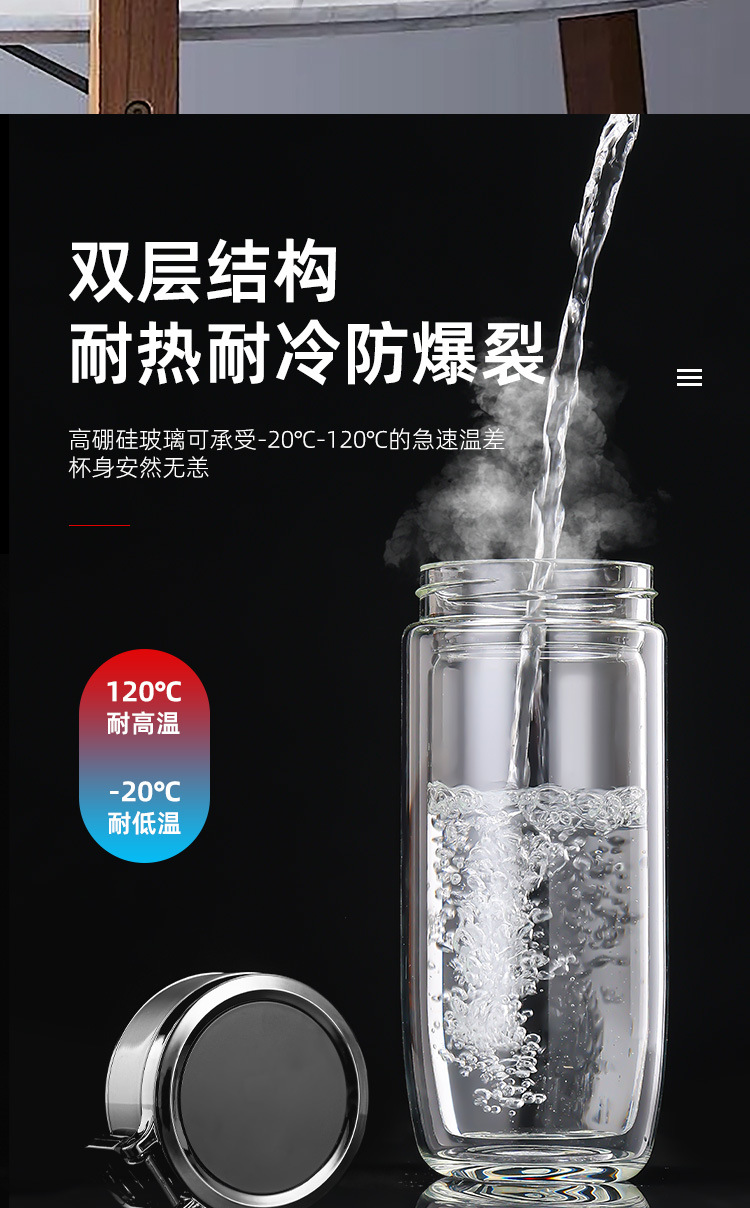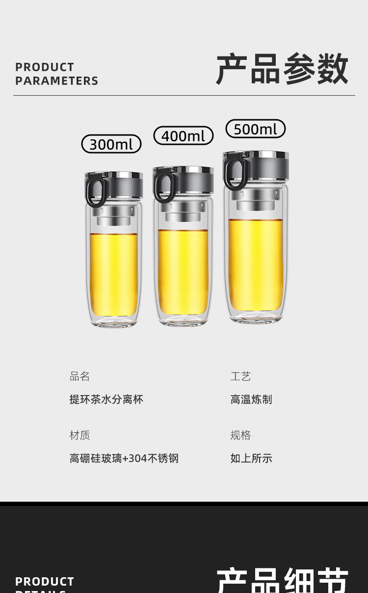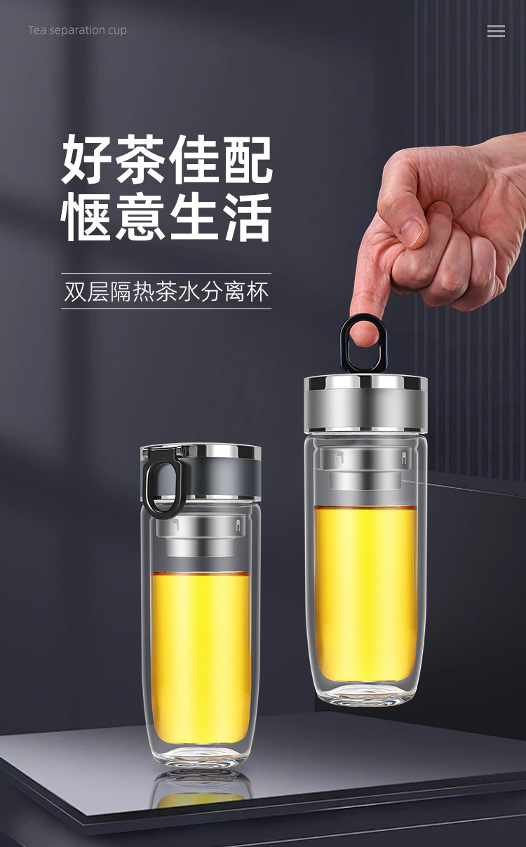 玻璃杯高档双层耐高温便携提环隔热高硼硅车载鹅蛋水杯子代发批发