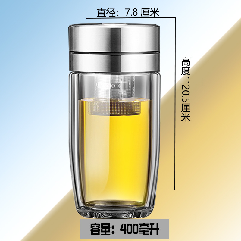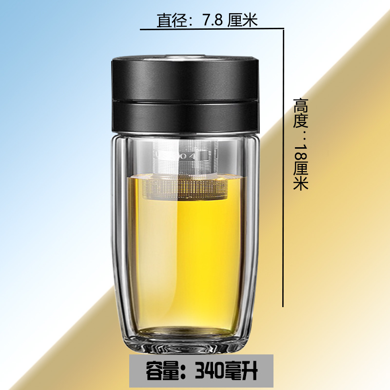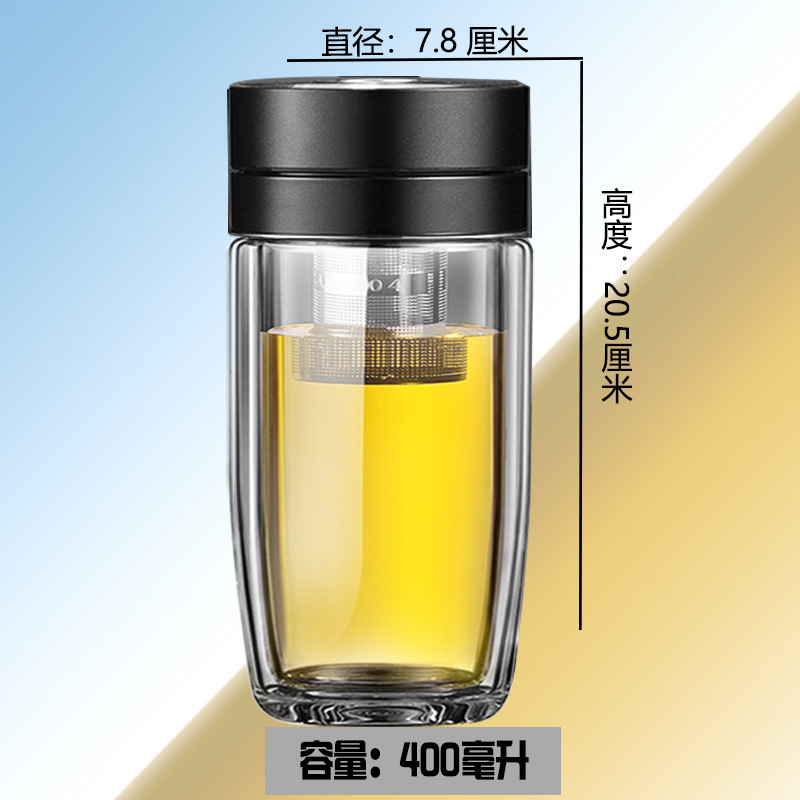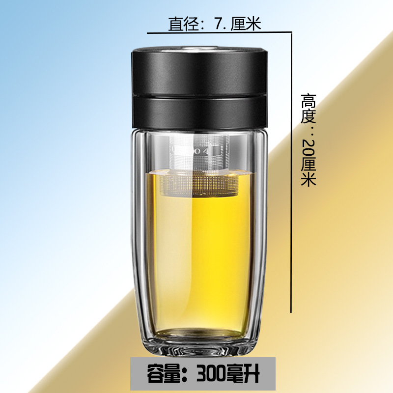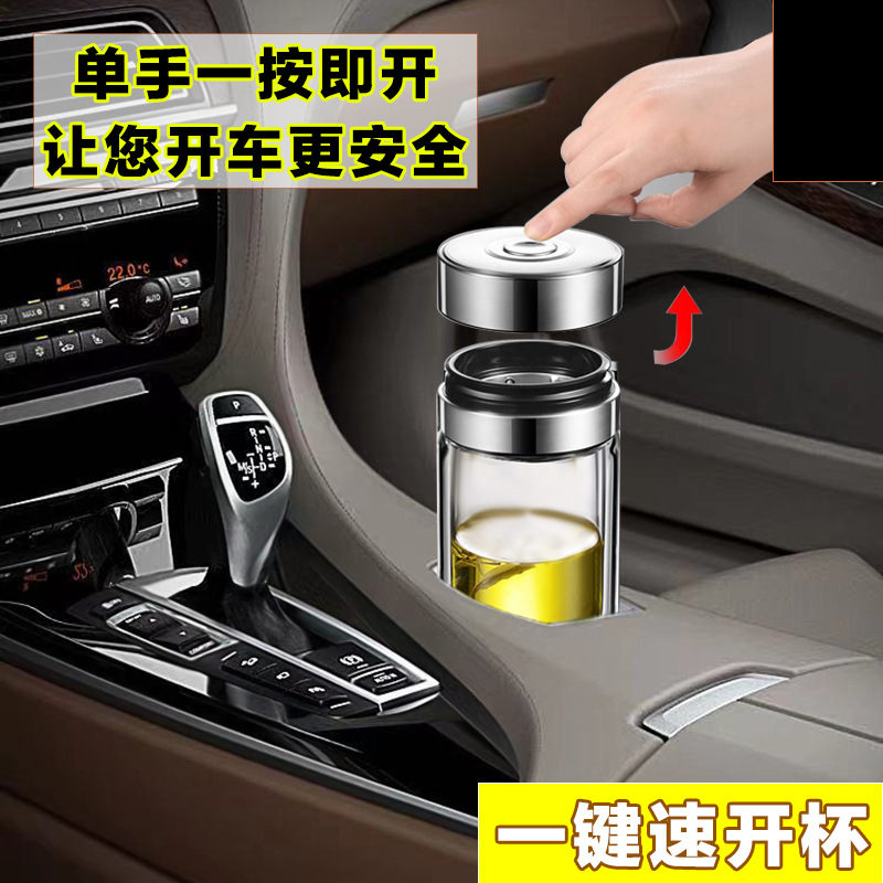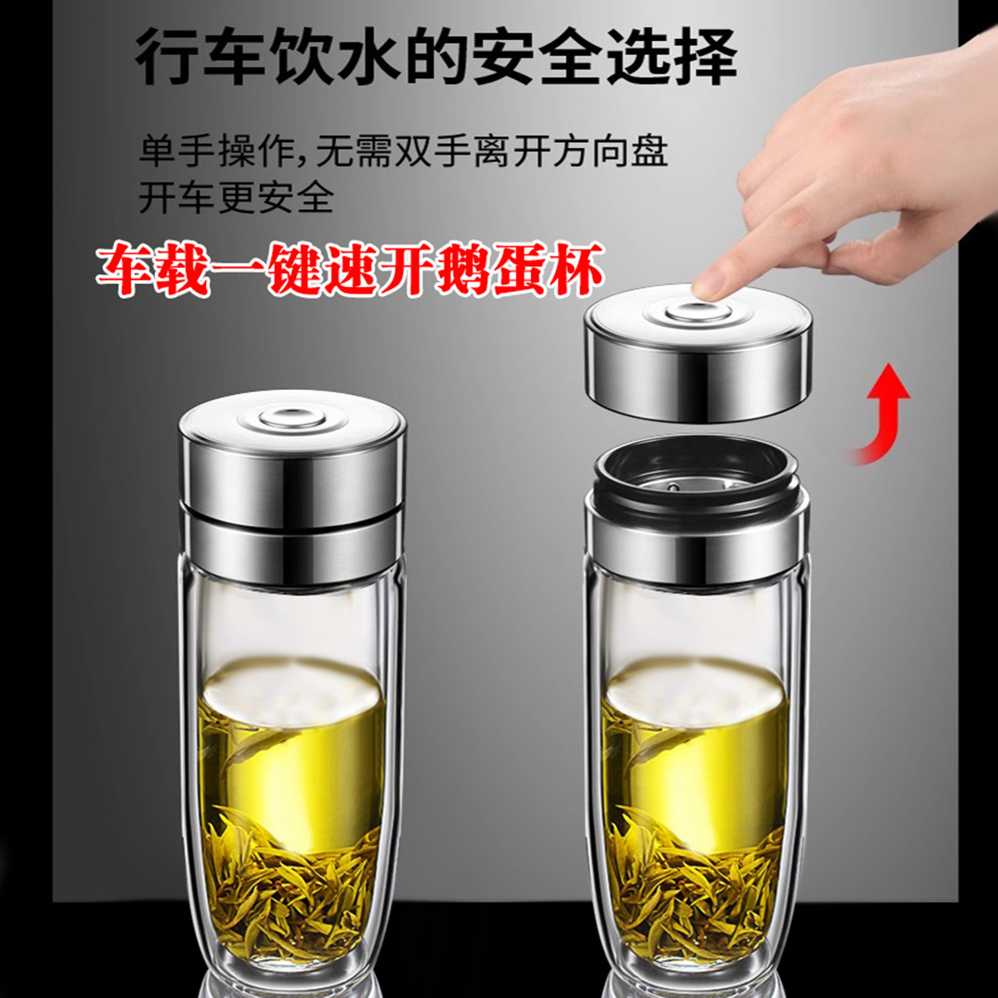 玻璃杯双层加厚耐热水杯茶水分离车载全钢一键按压速开鹅蛋杯