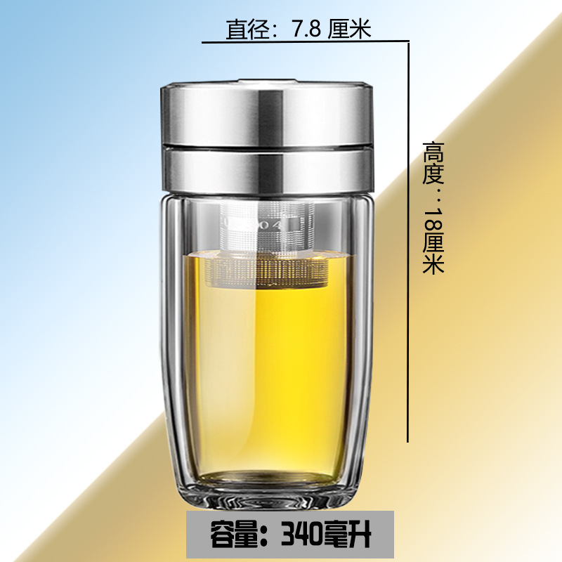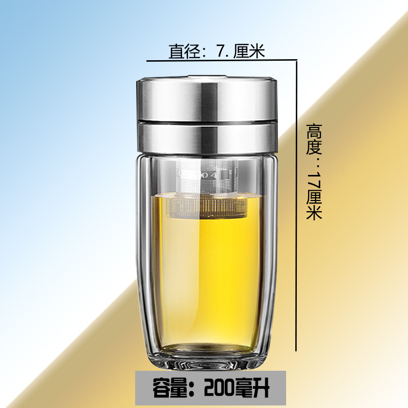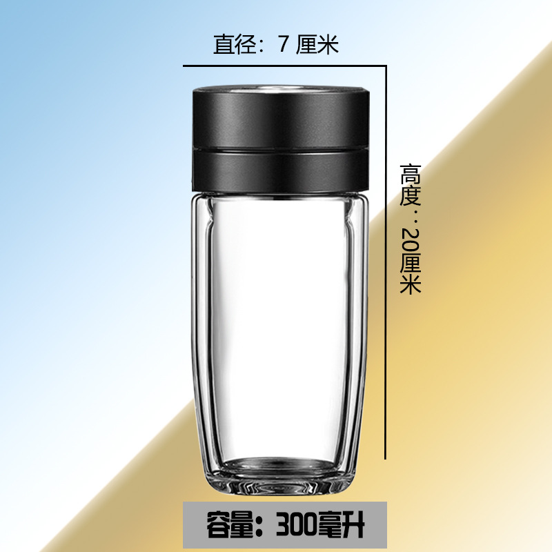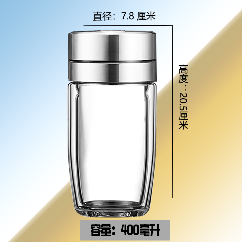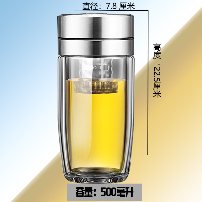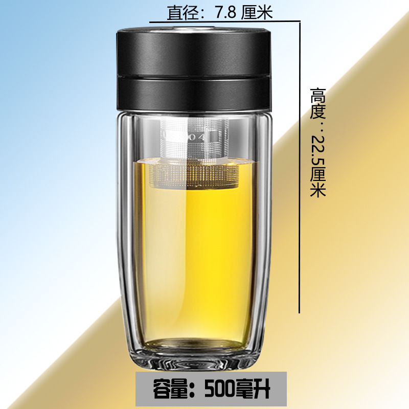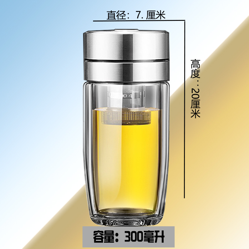 玻璃杯双层加厚耐热水杯茶水分离车载全钢一键按压速开鹅蛋杯