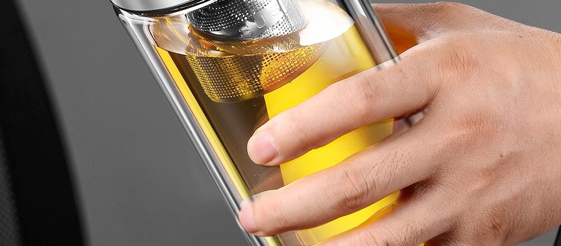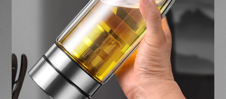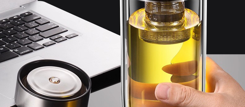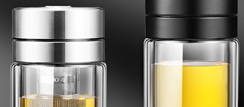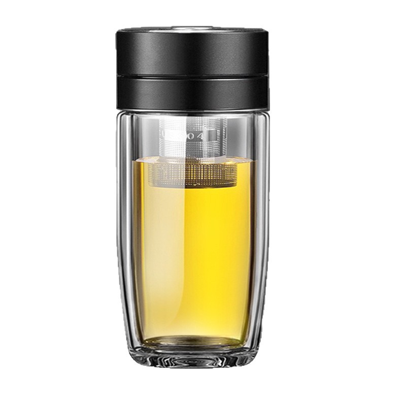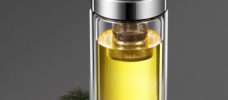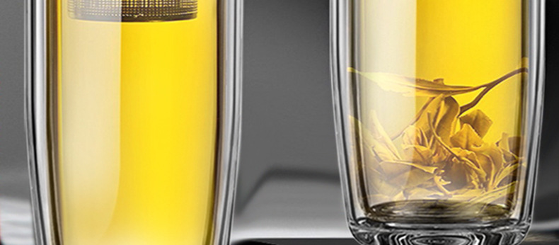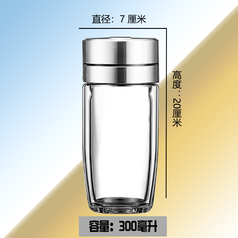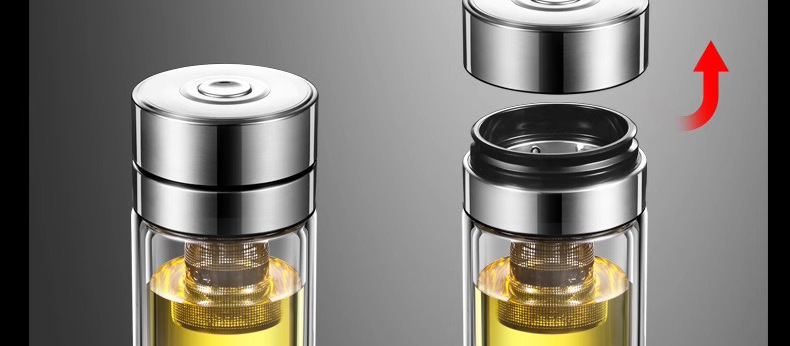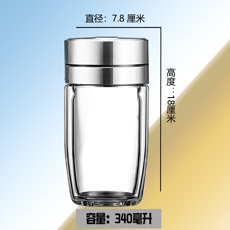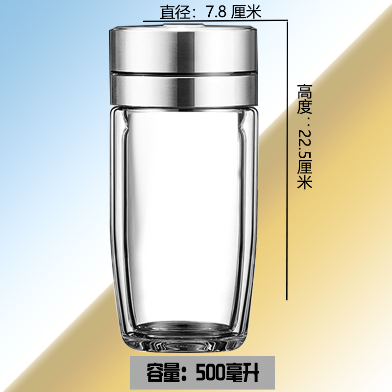 玻璃杯双层加厚耐热水杯茶水分离车载全钢一键按压速开鹅蛋杯