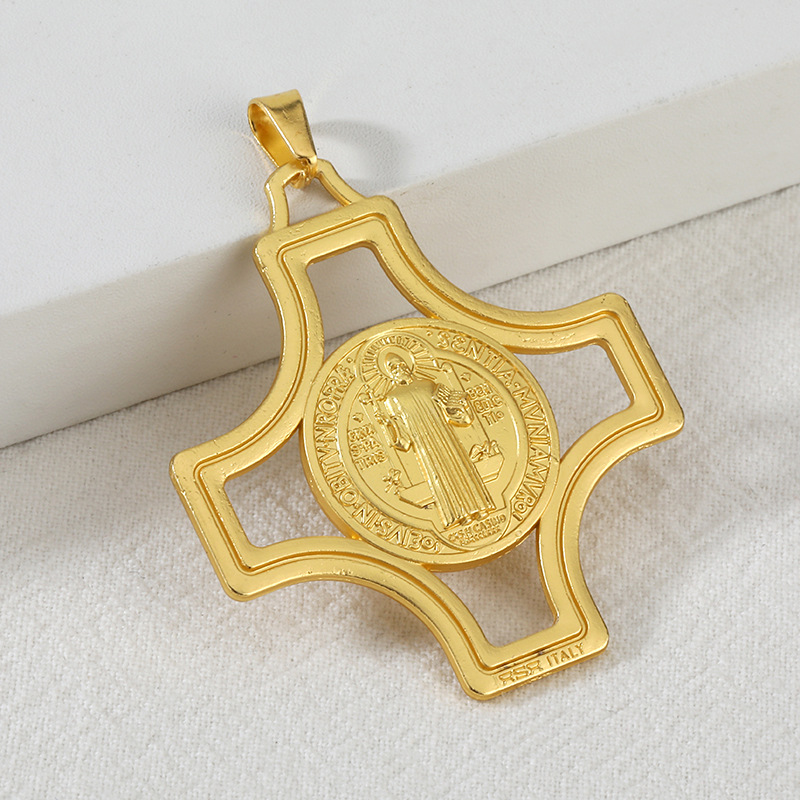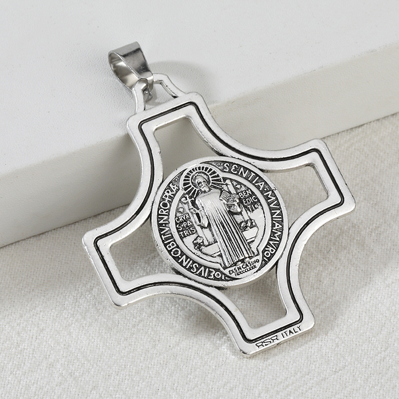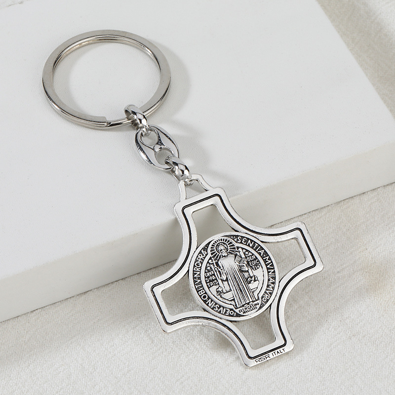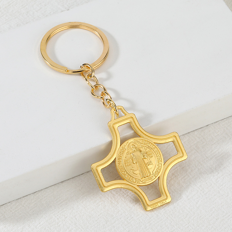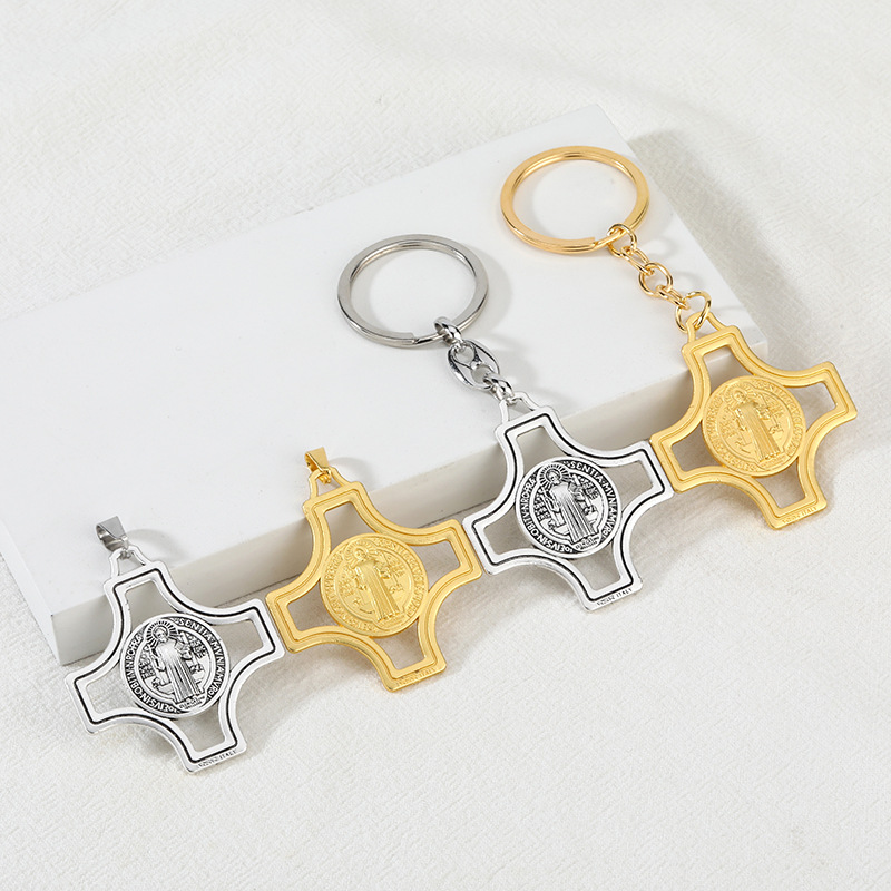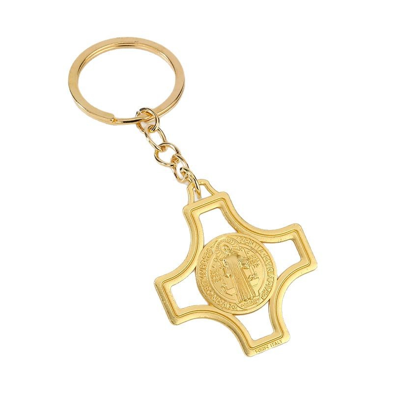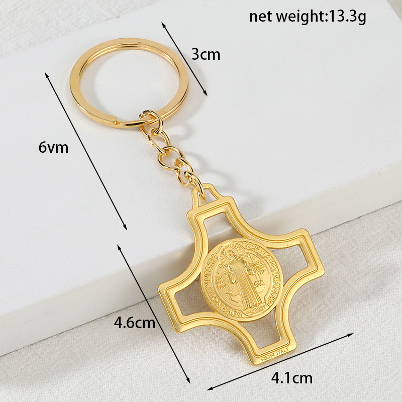 外面跨境热卖圣本笃镂空十字架钥匙扣挂件厂家直销批发