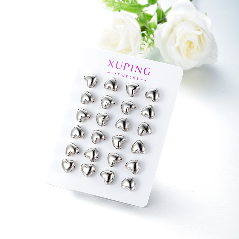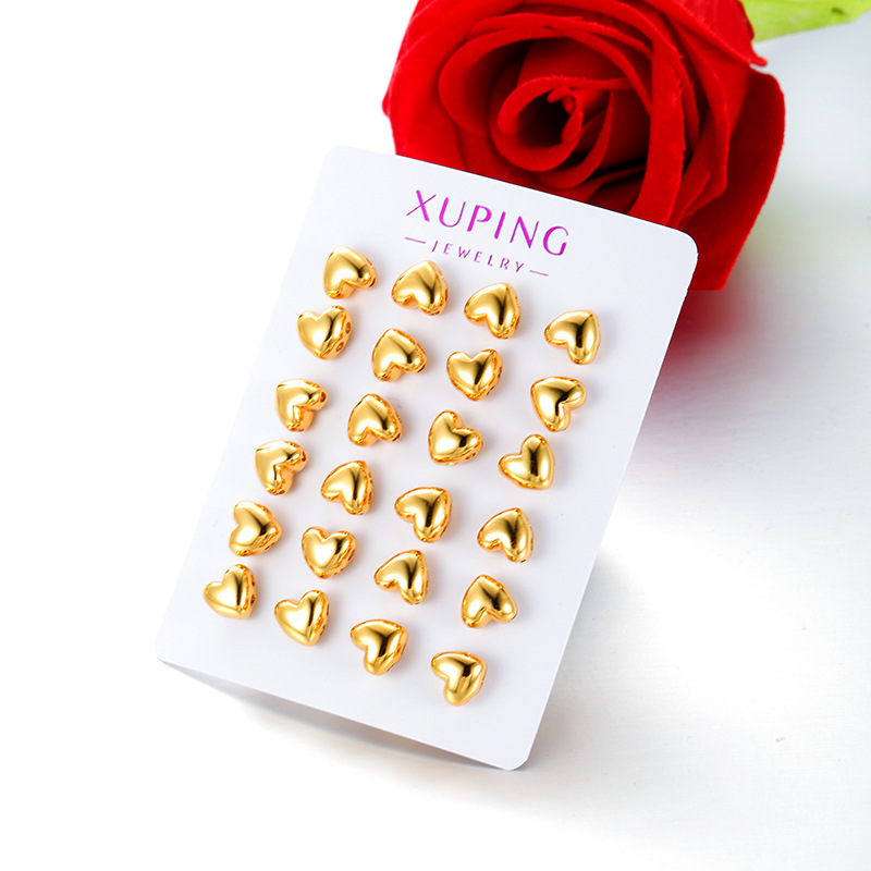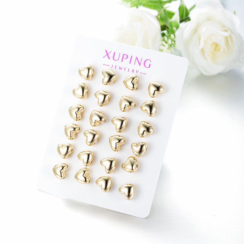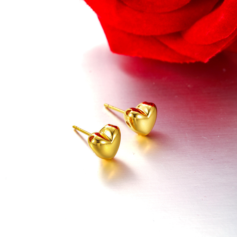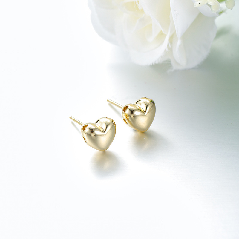 旭平新款简约小巧光面爱心耳钉女铜合金经典日常通勤易搭耳饰批发