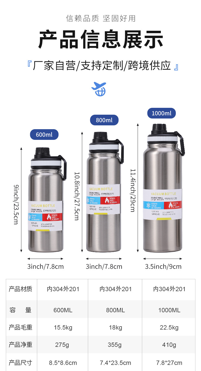跨境304不锈钢太空壶大容量保温杯车载太空壶户外骑行登山壶批发