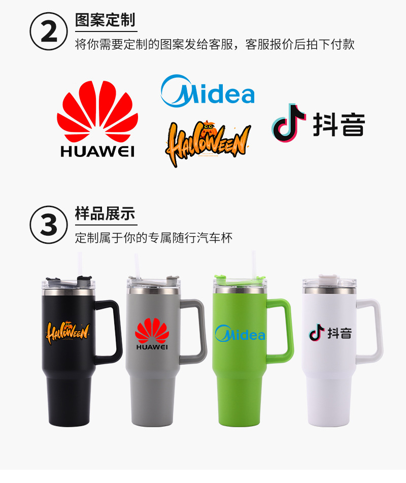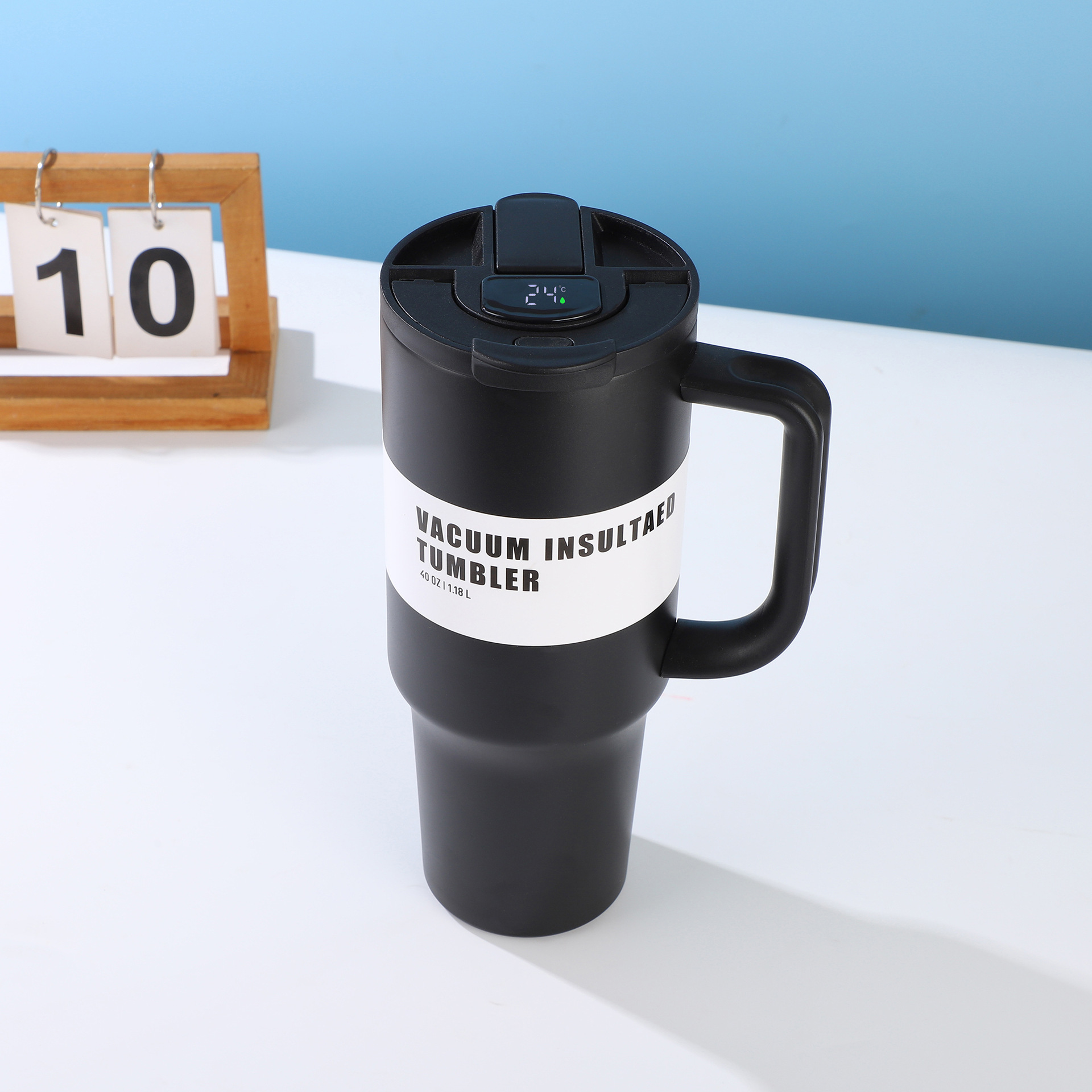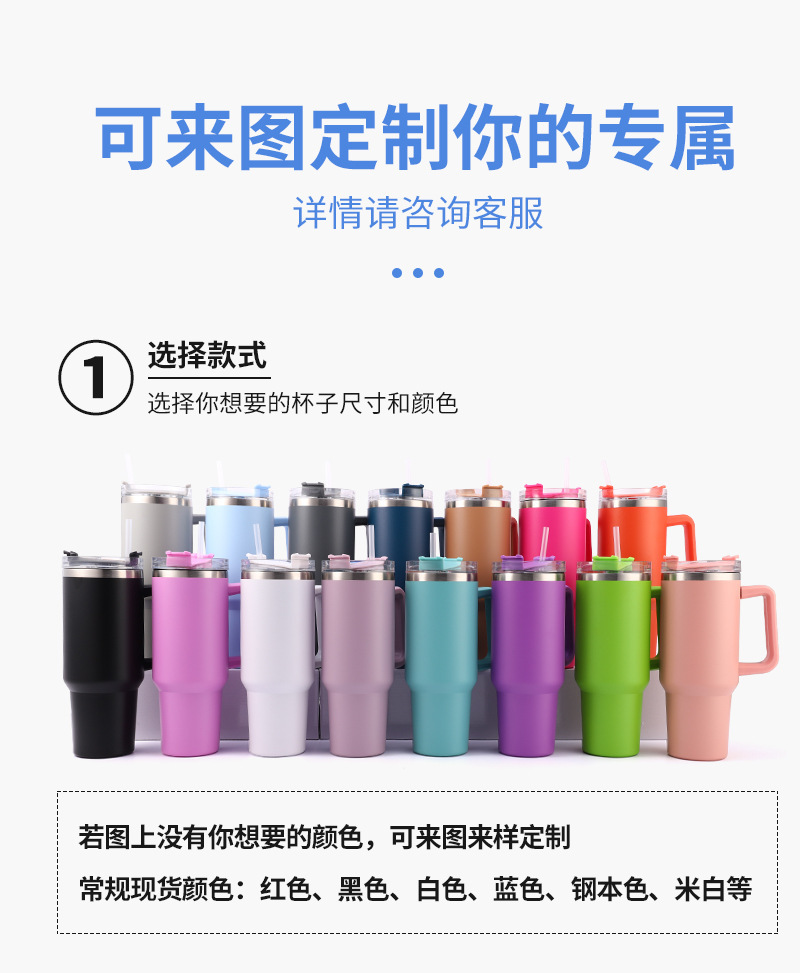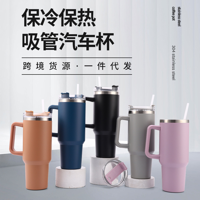 跨境40oz显温汽车杯双层带手柄杯便携冰霸杯吸管杯不锈钢保温杯