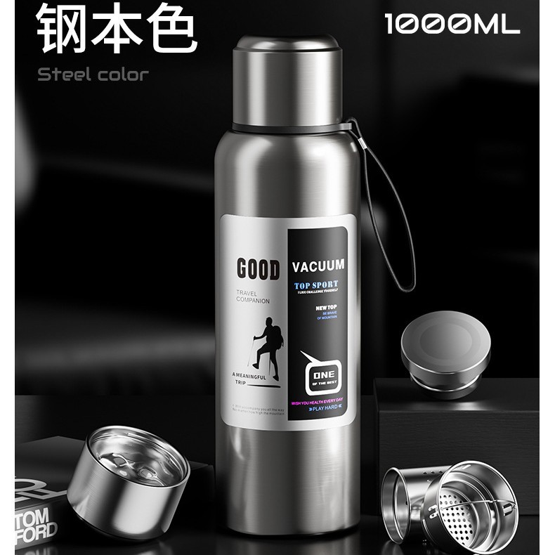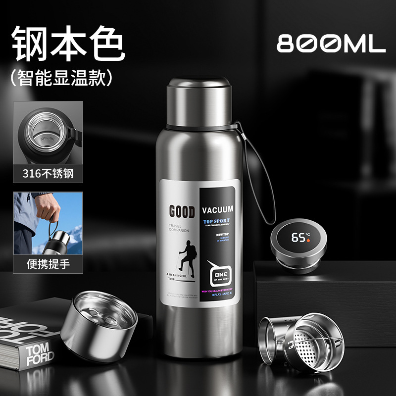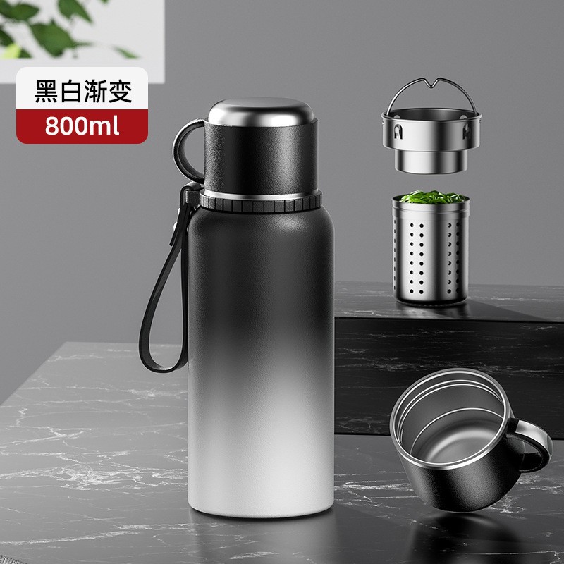 男款高颜值水杯大容量显温闷茶壶316全钢保温杯茶水分离礼品水壶
